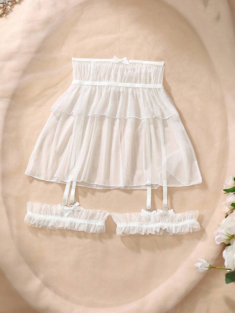 Delicateallure 3 piezas ligas de pierna de malla blanca con parches de encaje, accesorios de lenceria para mujeres, intimos, fiesta, cita, sexy, lindos, kawaii