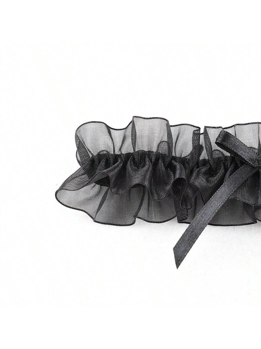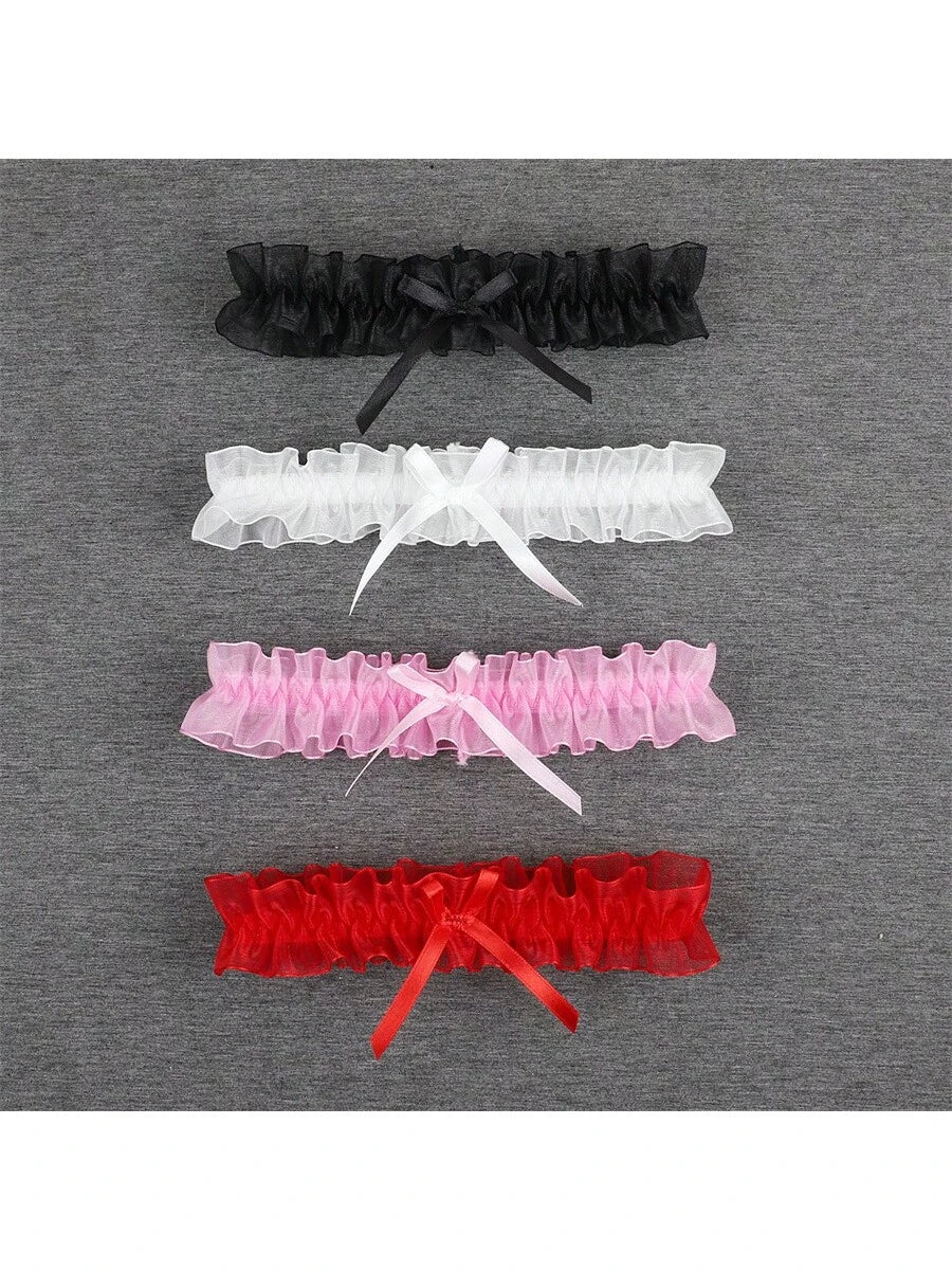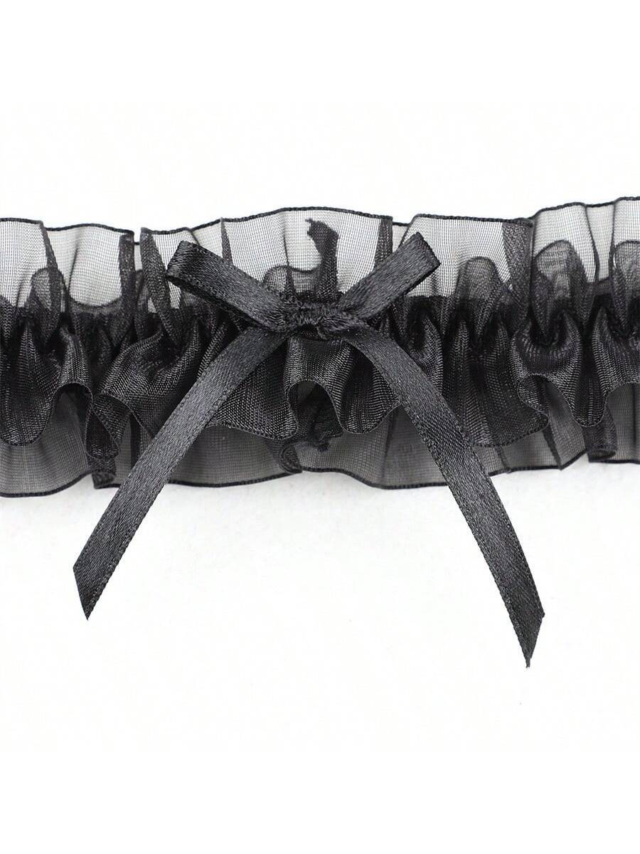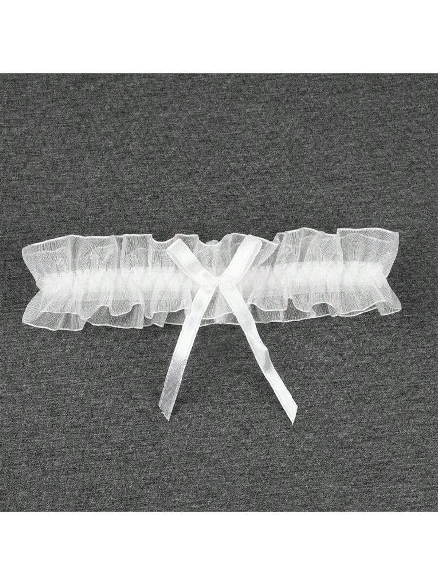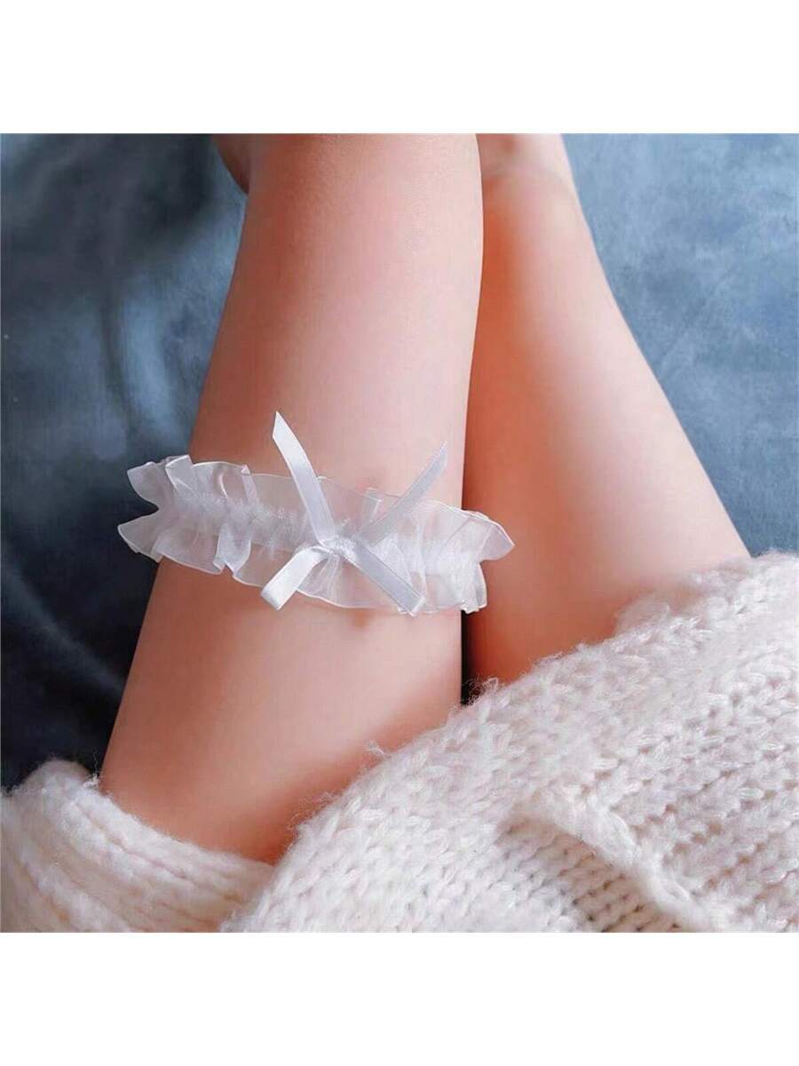 Cinturon de liga de encaje sexy con lazo y banda elastica, perfecto para el accesorio de bodas de novia, incluye collar de cuello y anillo de pierna