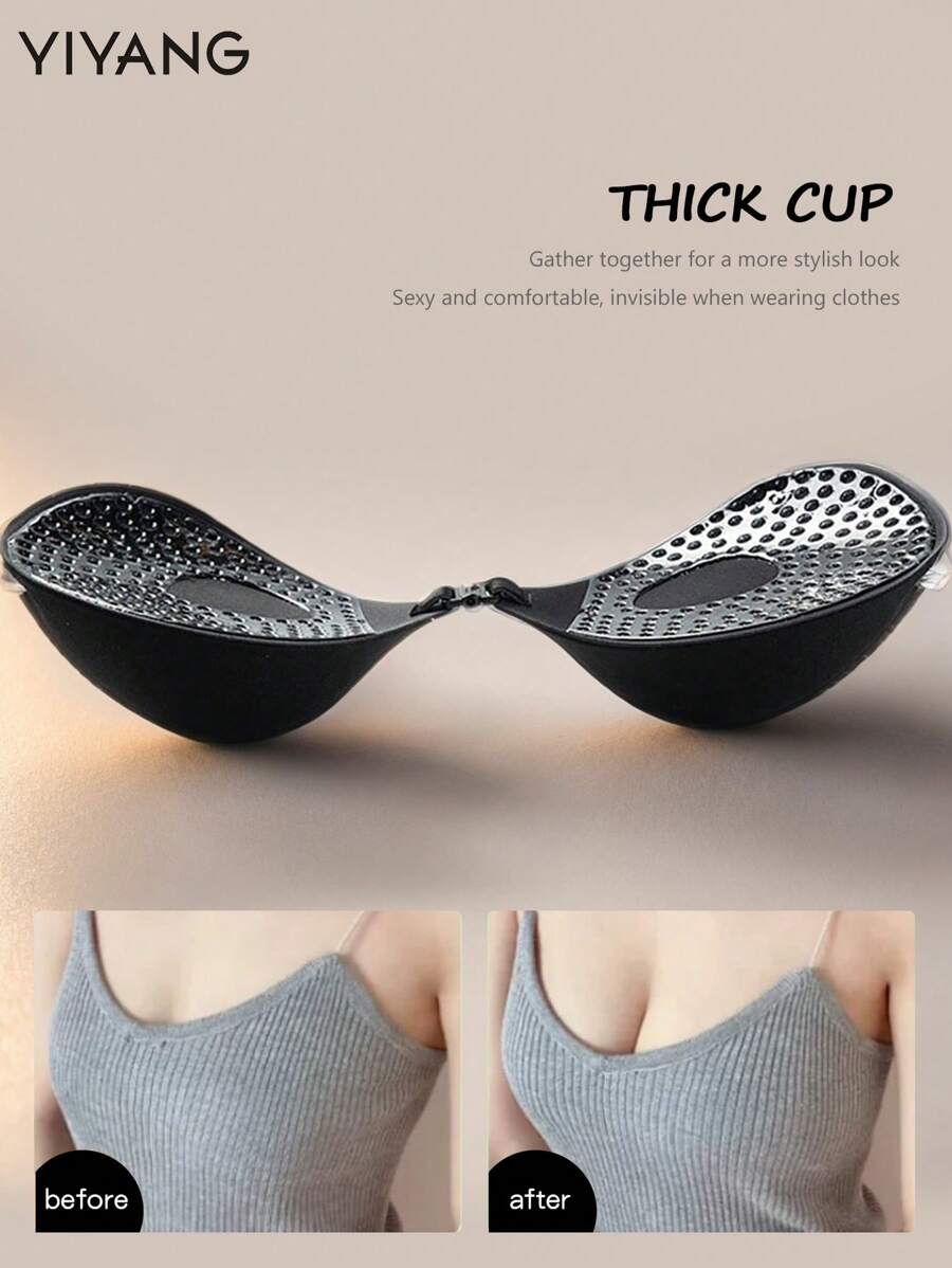 Yiyang 1 pieza almohadillas de brasier de silicona push-up negras, brasier invisible con elevacion de viscosa gruesa, brasier sin espalda y sin tirantes - excelente para pechos pequenos