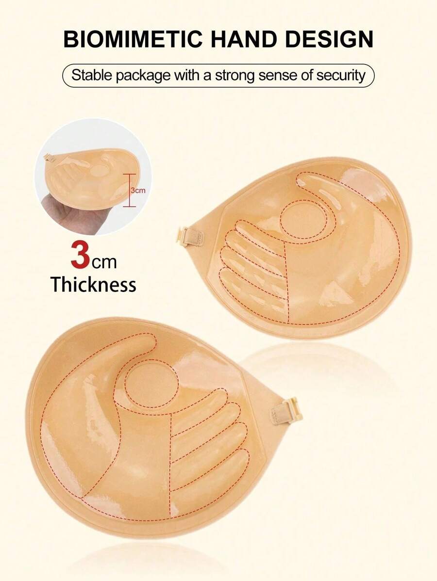 Brasier adhesivo de 3 cm de grosor, brasier invisible sin espalda y sin tirantes para vestidos, brasier reutilizable para aumentar el busto