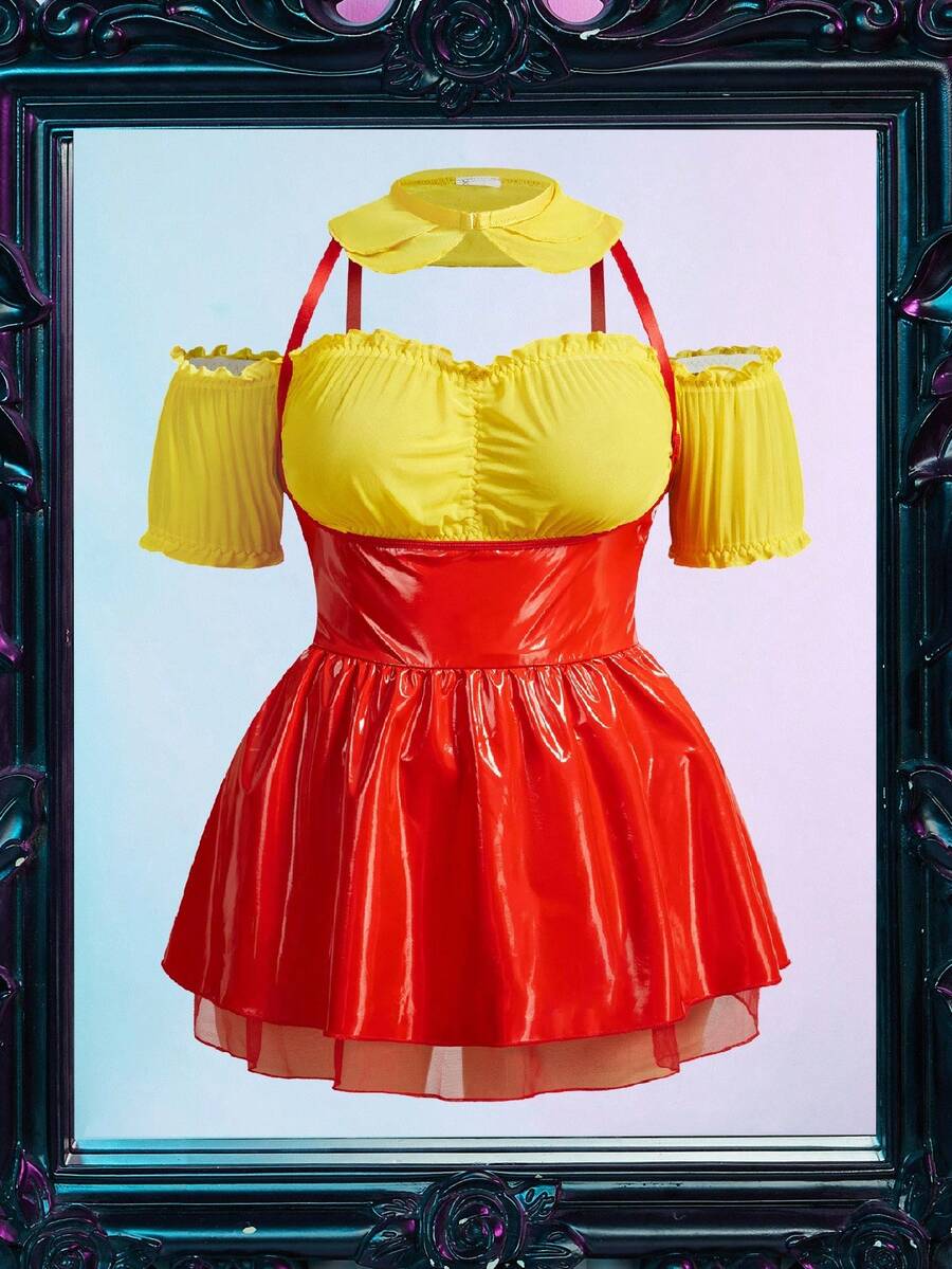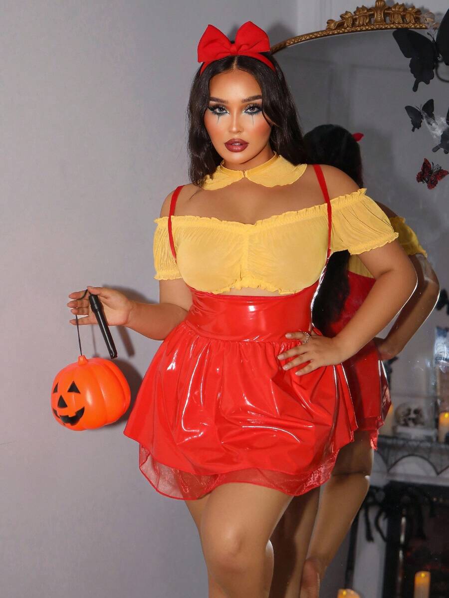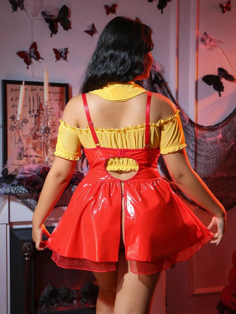 Fantasy costume conjunto de lenceria de halloween de 4 piezas, sin aros, talla grande