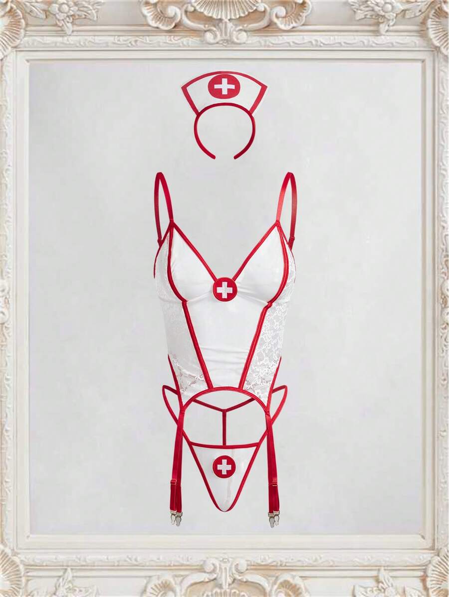 Fantasy costume conjunto de ropa interior sexy talla grande (incluye ropa interior talla grande, tanga, gorro de enfermera, 3 piezas)