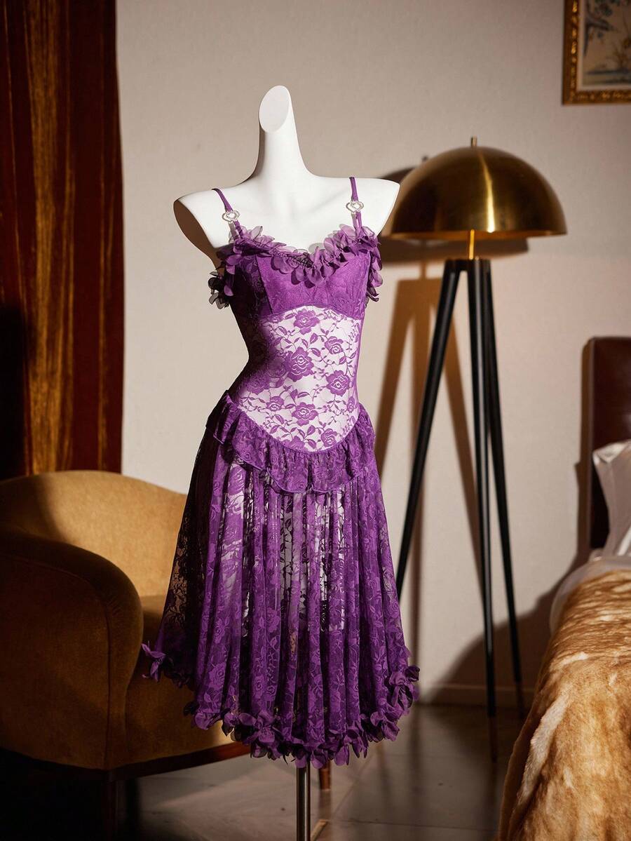 Camison transparente con decoracion floral 3d y encaje de rosa, sexy para mujeres