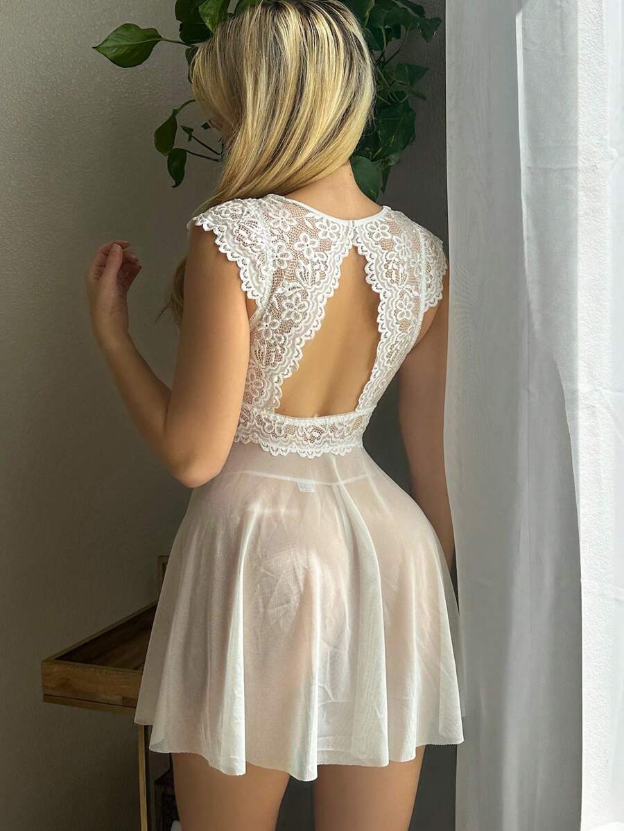 Detalles: Espalda al aire, Encaje en contraste, Gasa