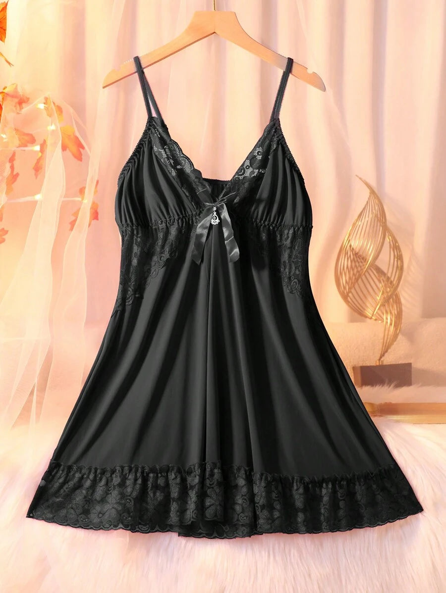 Detalles: Lazo, Encaje en contraste, Bajo con volante