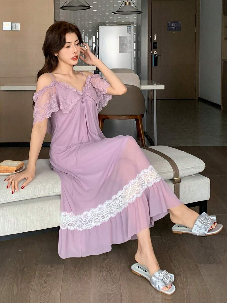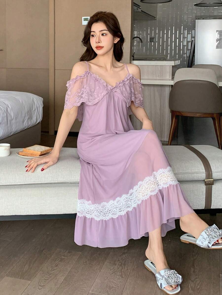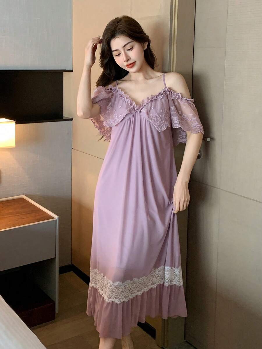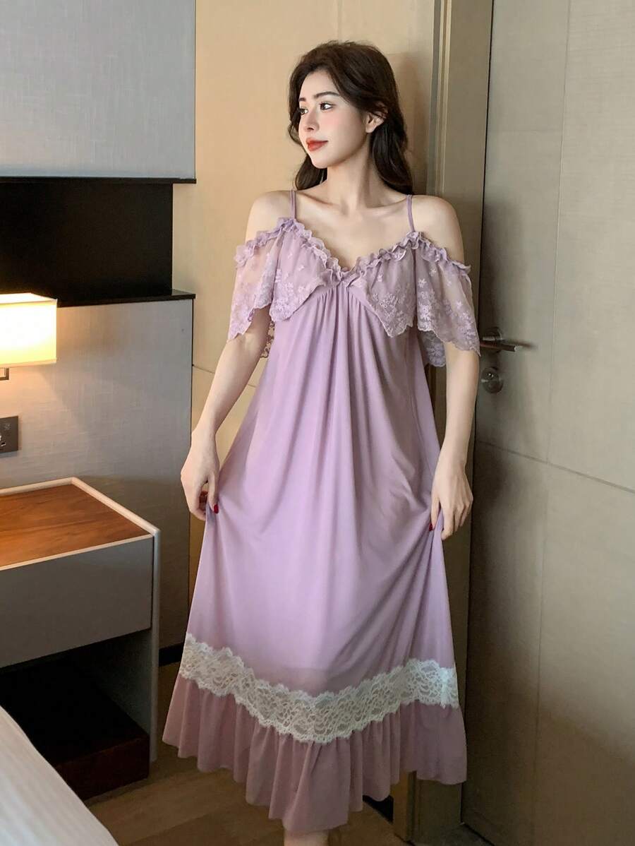 Camison de mujer con hombros descubiertos y cintura de patchwork romantico
