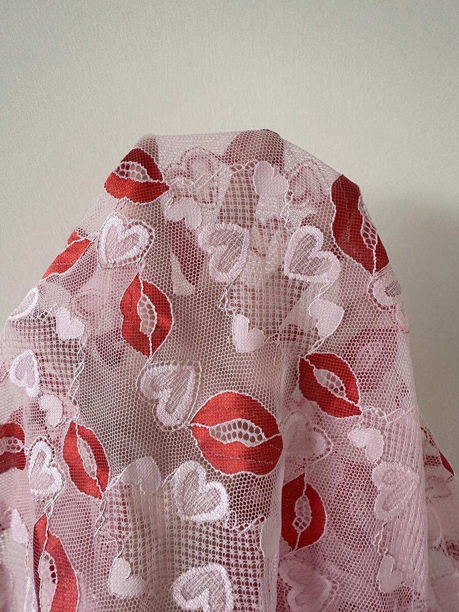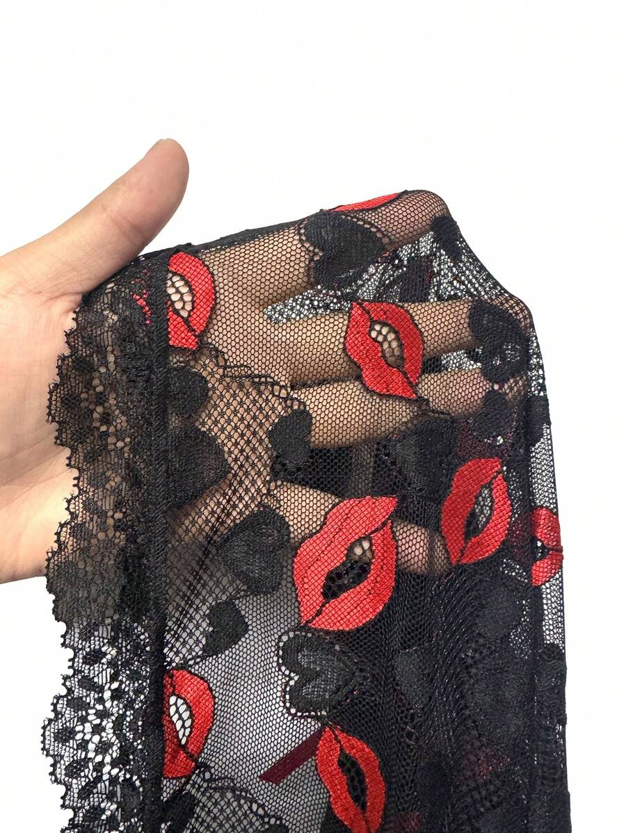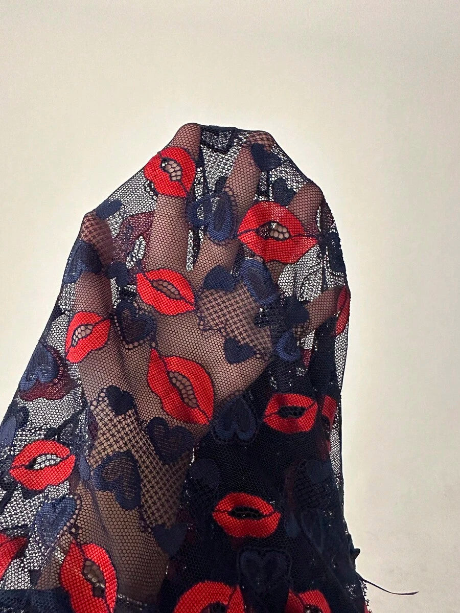 Camison corto mini ajustado semitransparente de encaje con labios rojo – Muy Bonita