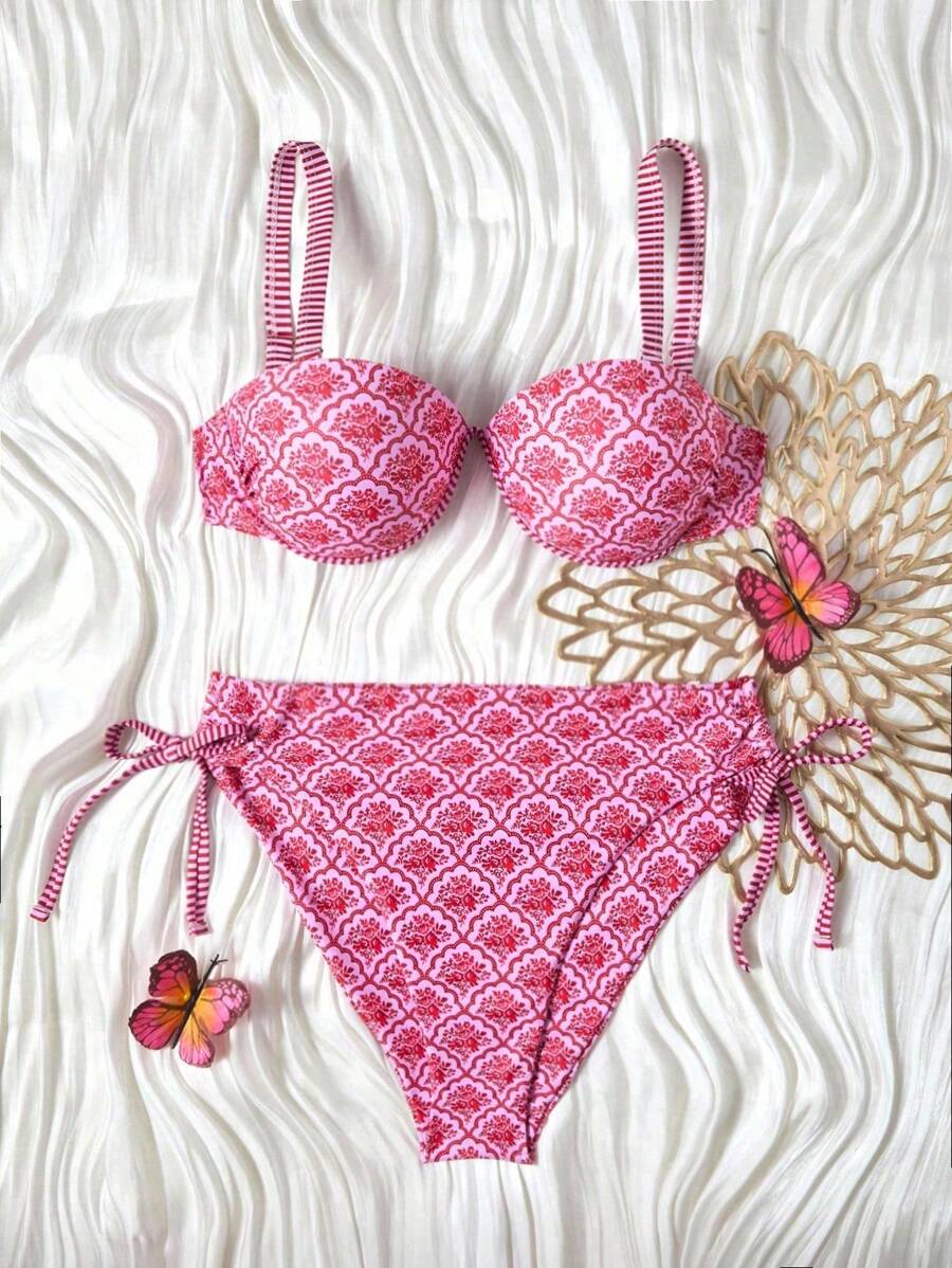 Curve bikini de 2 piezas con tela estampada y aros push-up, talla gran – Muy Bonita