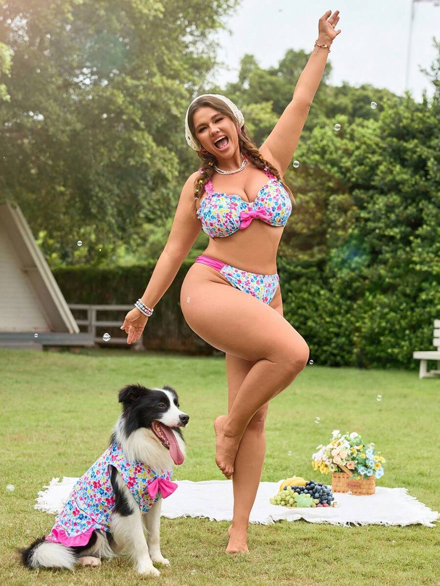 Conjunto de traje de bano de una pieza de talla grande con estampado f – Muy Bonita