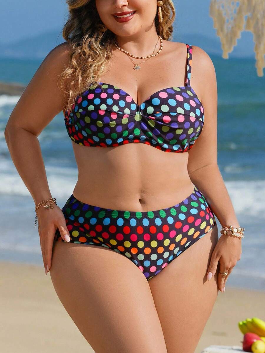 Lushoire nuevo conjunto de bikini sexy con espalda descubierta, estampado de lunares y parches, para mujeres, comercio electronico transfronterizo
