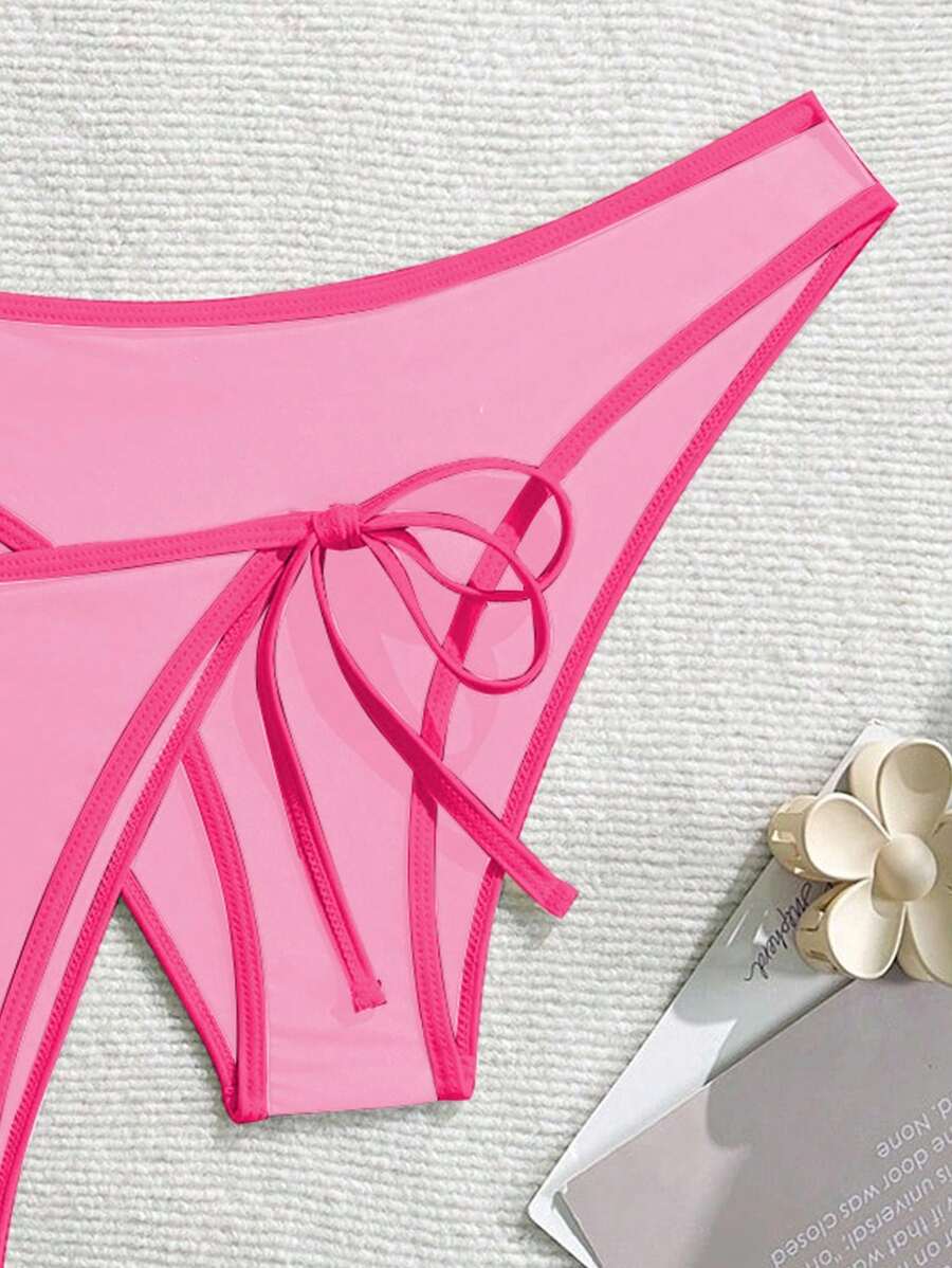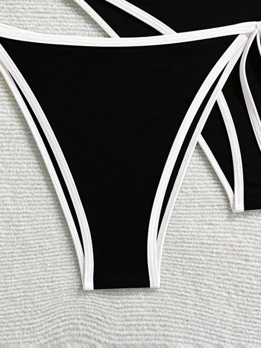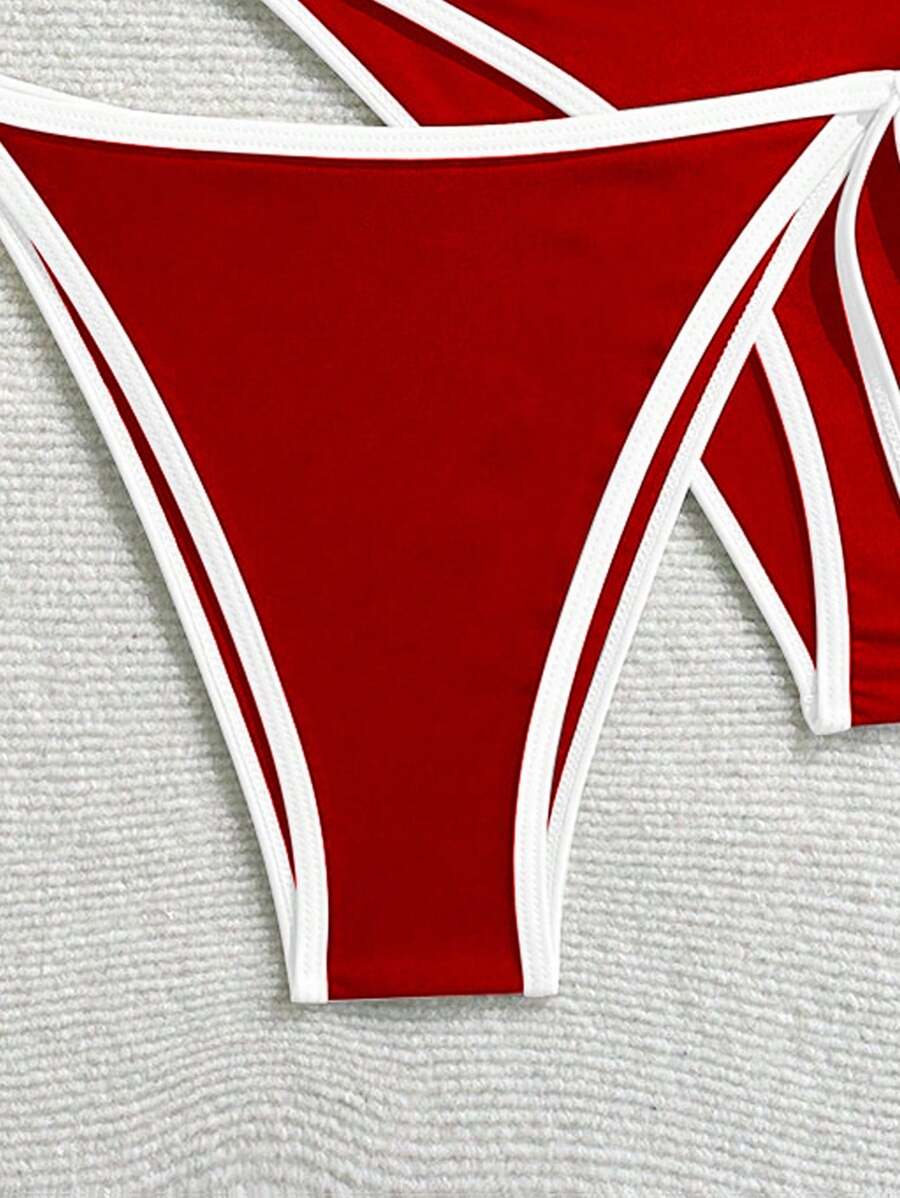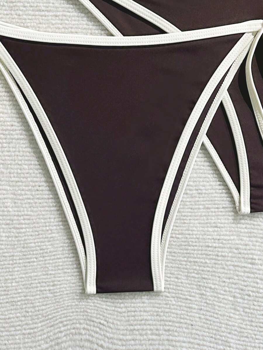 Conjunto de bikini 2025 nuevo de 3 piezas para mujer con parte superior de halter sin aros y unicolor, con bottom dividida