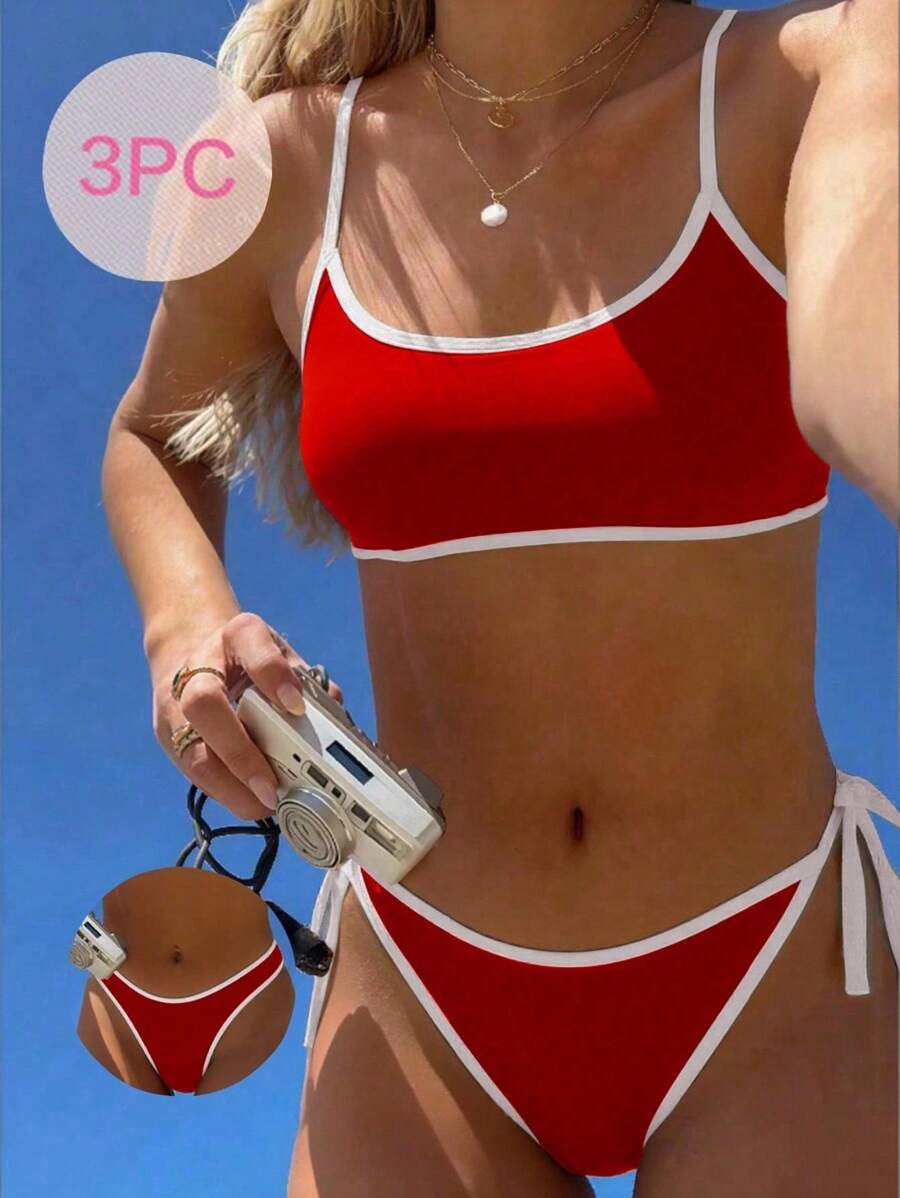 Conjunto de bikini 2025 nuevo de 3 piezas para mujer con parte superio – Muy Bonita