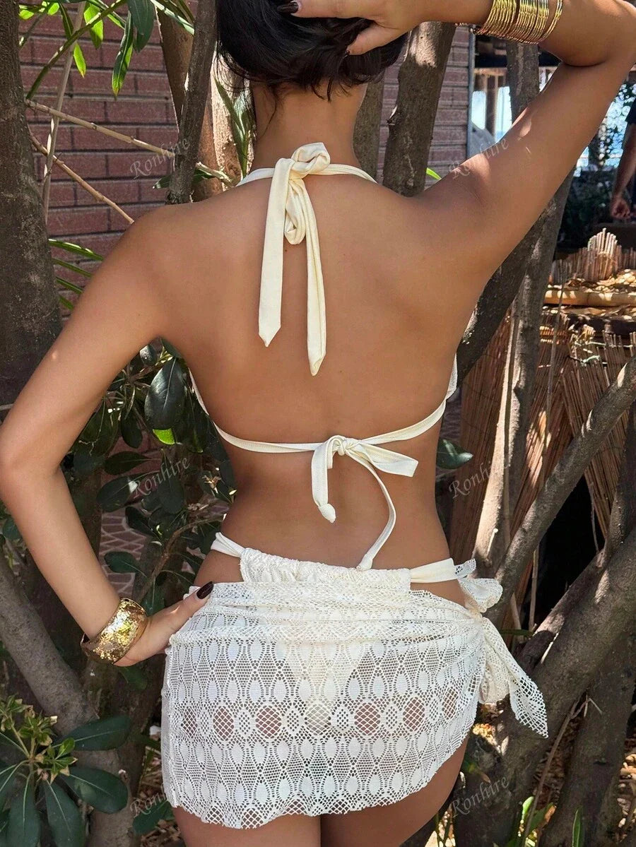 Ronhire conjunto de 3 piezas de bikini elegante y retro con decoracion – Muy Bonita