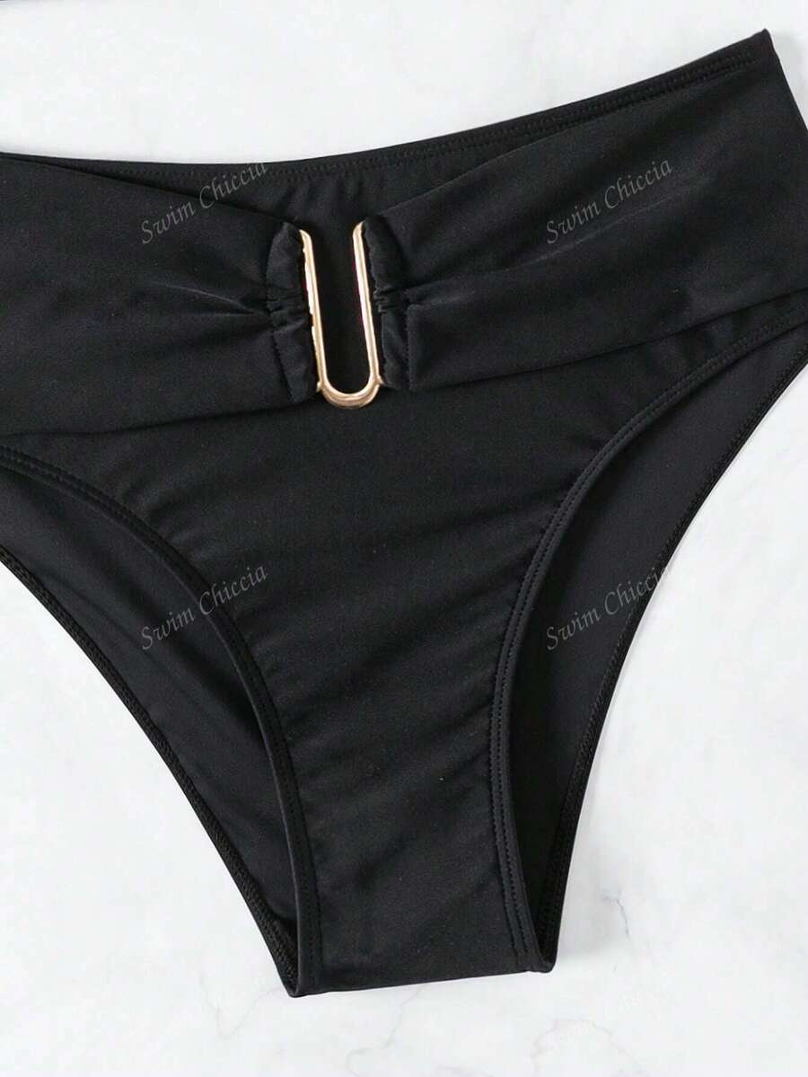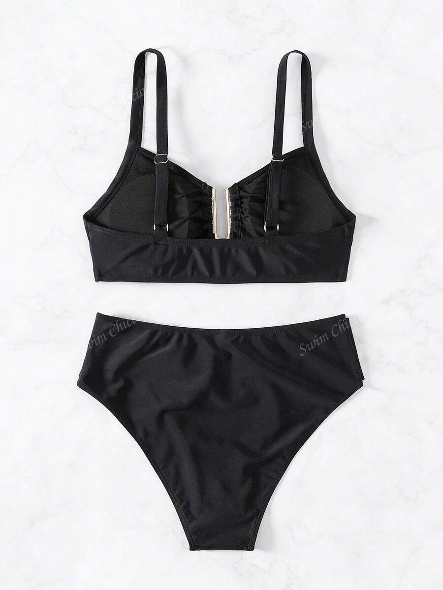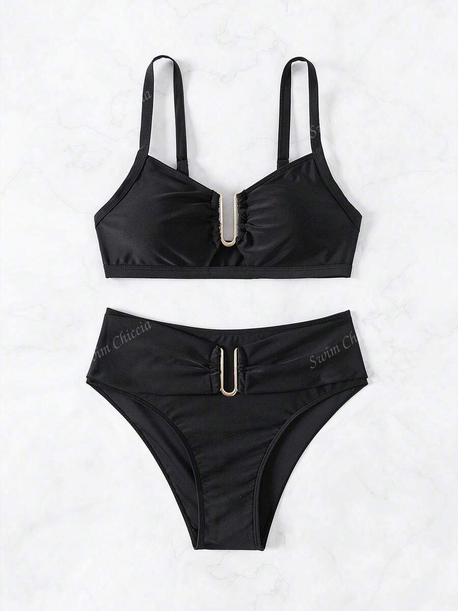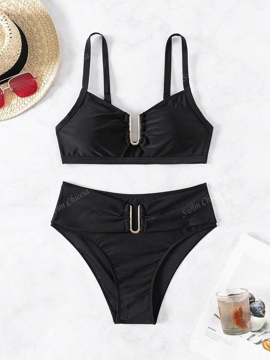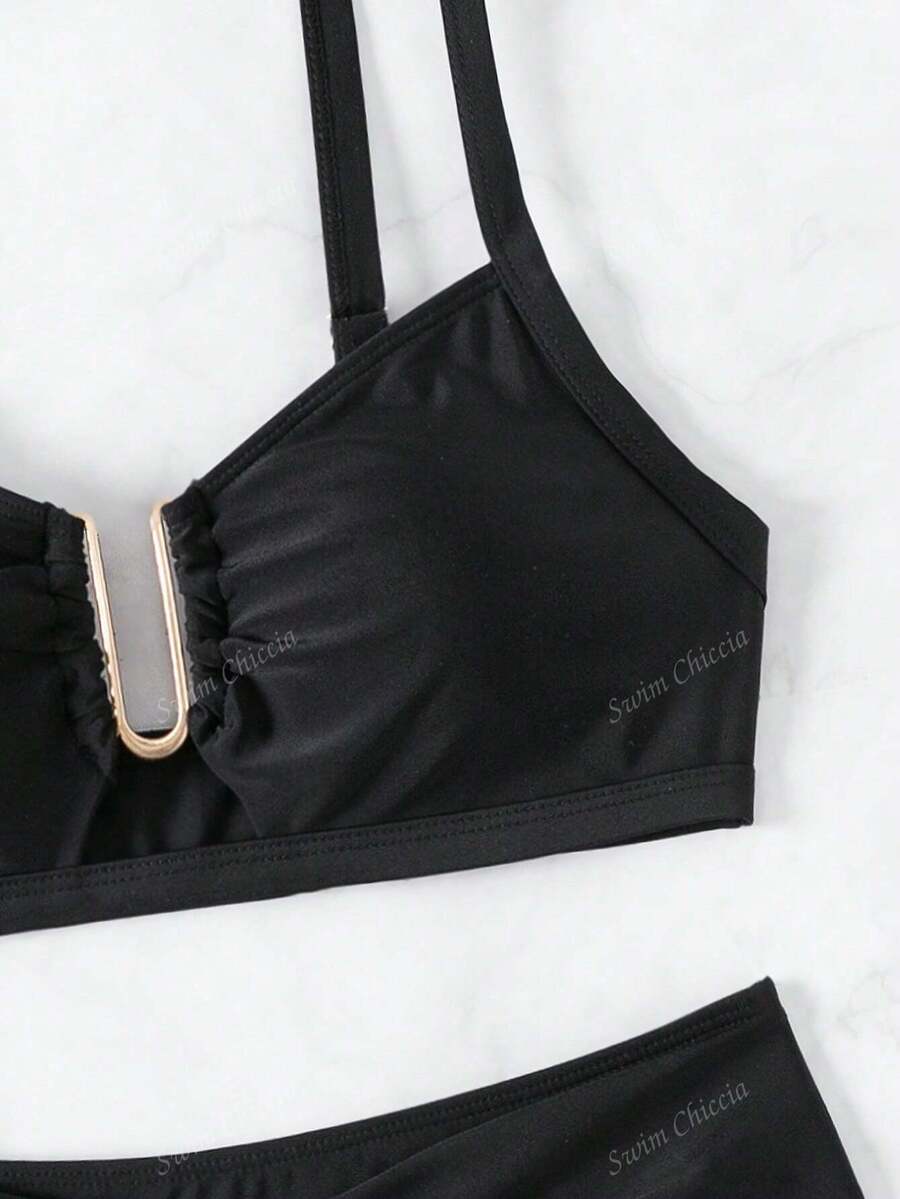 Conjunto de bikini de dos piezas de unicolor para playa de verano – Muy Bonita