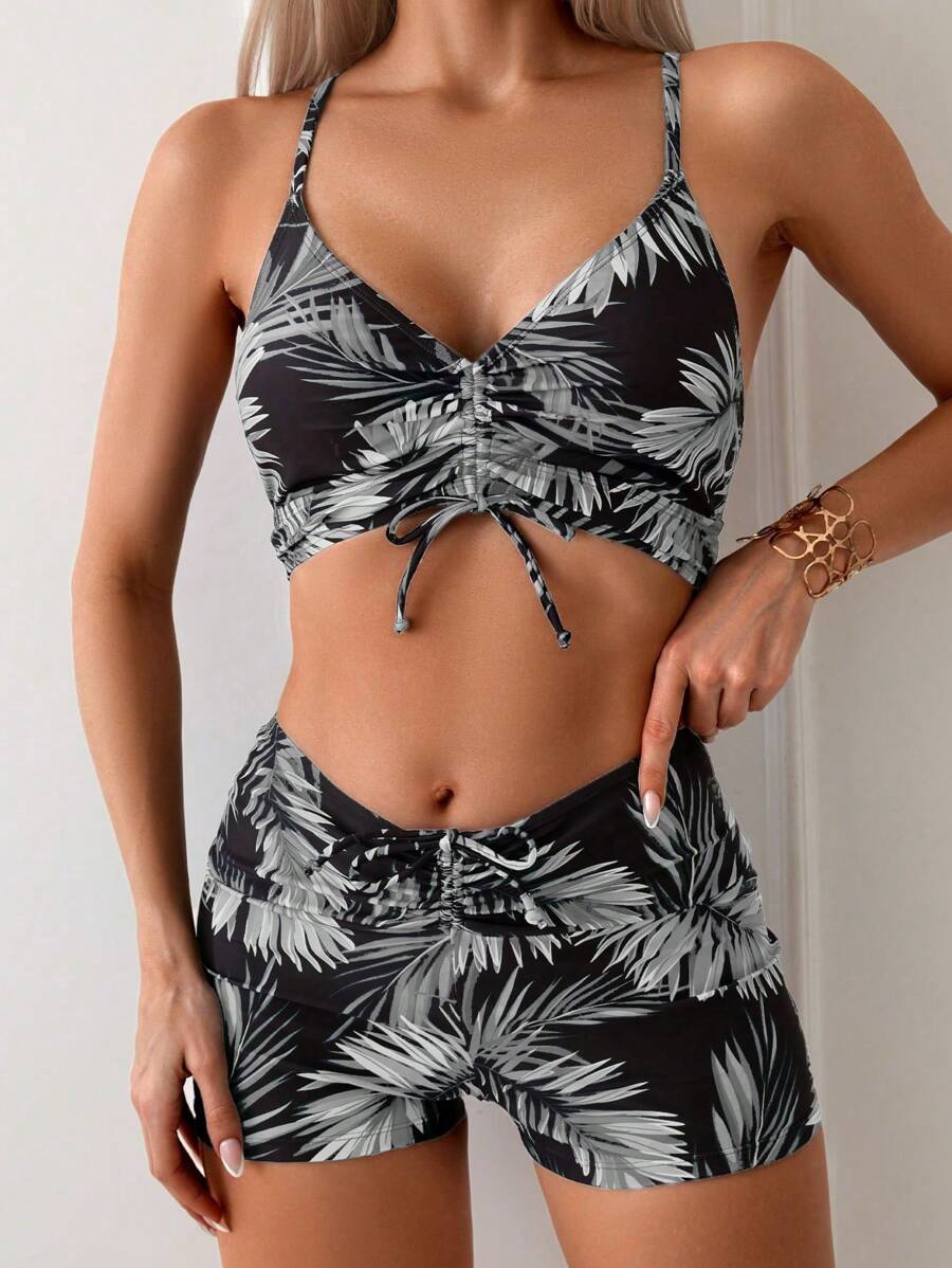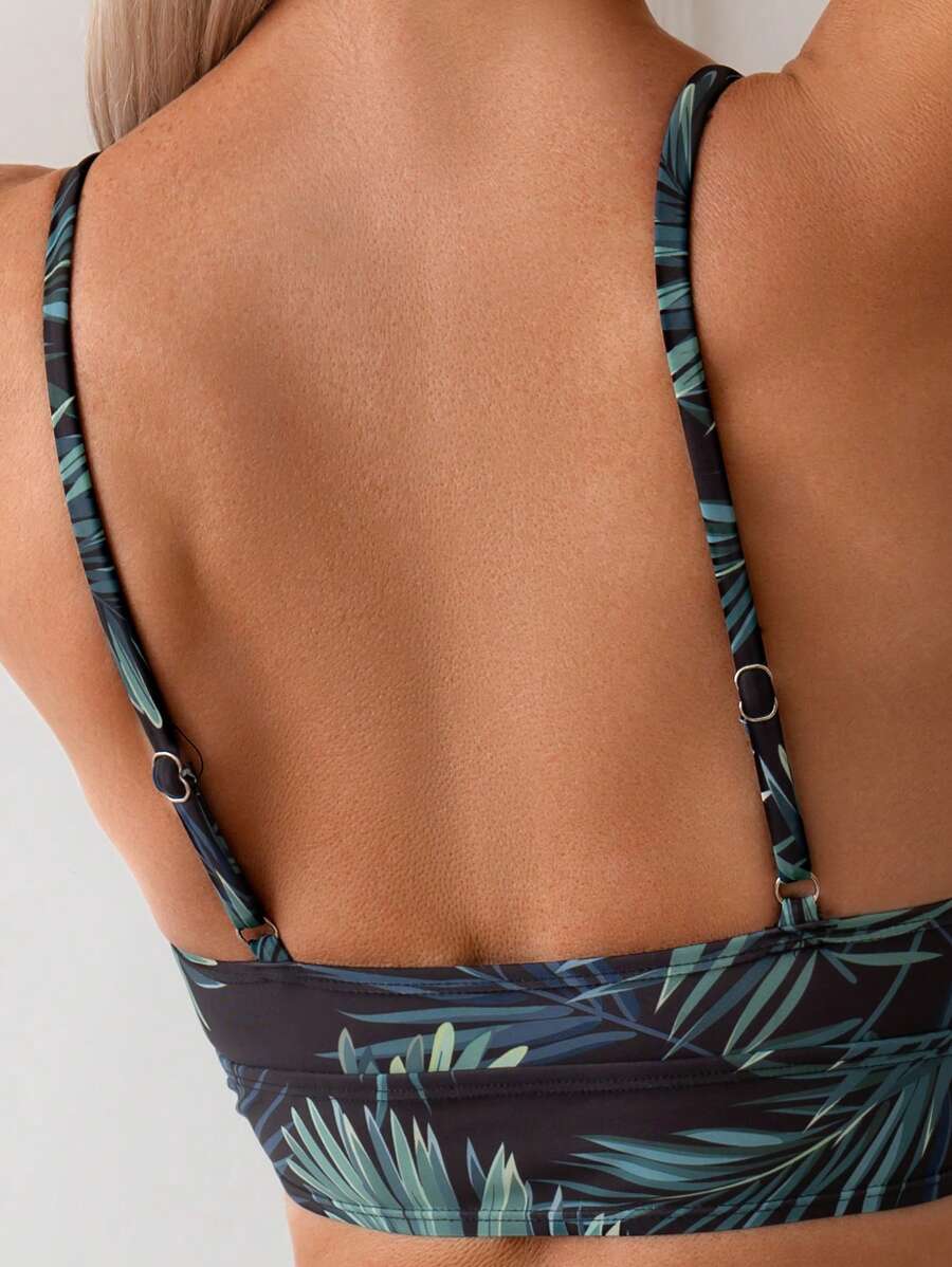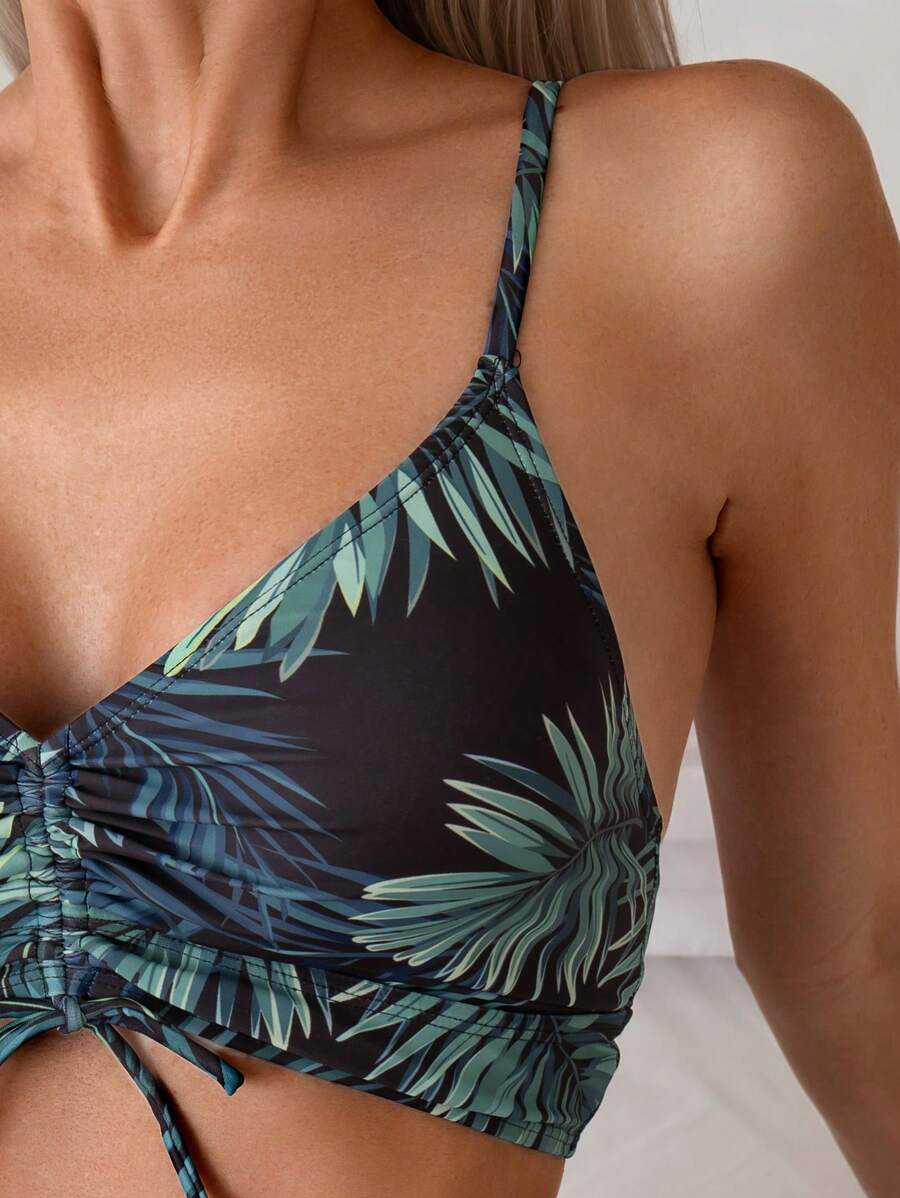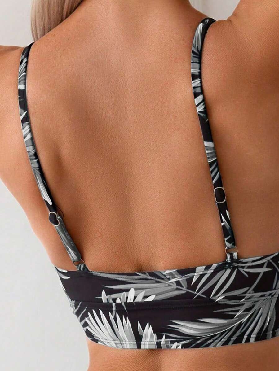 Bikini de traje de bano con estampado tropical de plantas y nudo al fr – Muy Bonita
