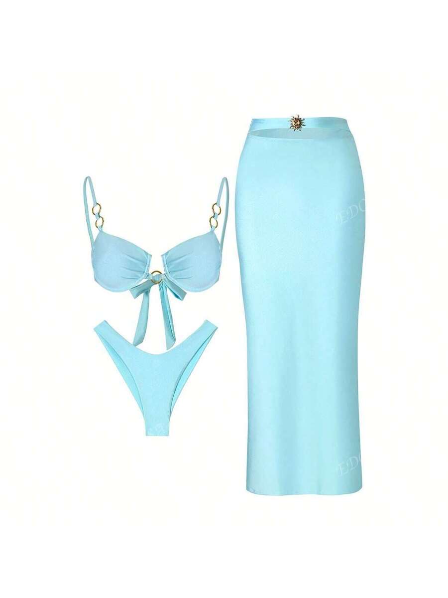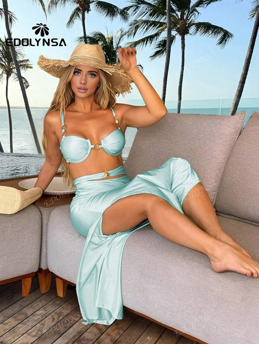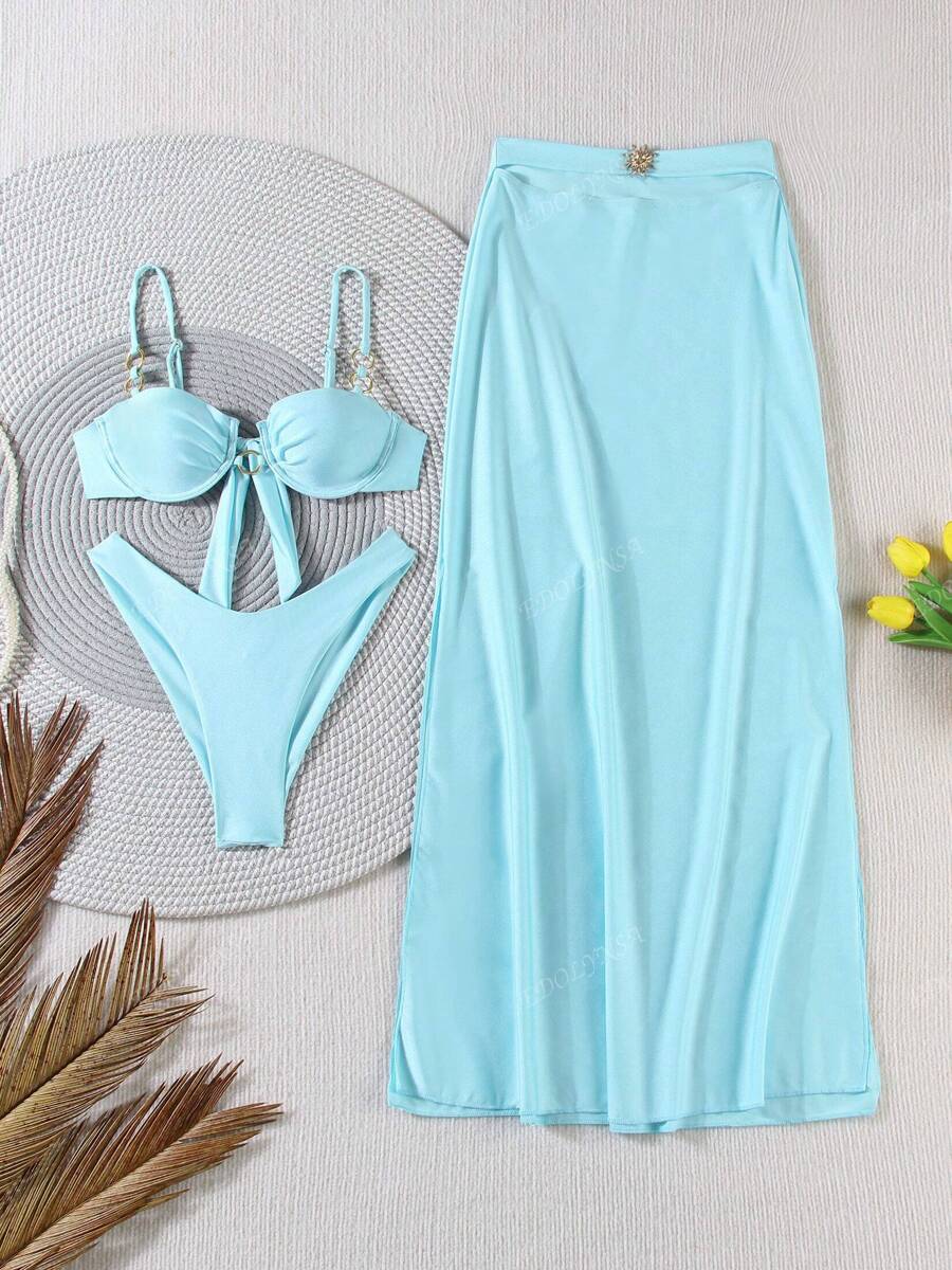 Conjunto de bikini con 3 piezas para mujer 2025, traje de bano sexy con falda larga para cubrir, con sujecion push up, vestido de bano femenino tipo biquini para playa
