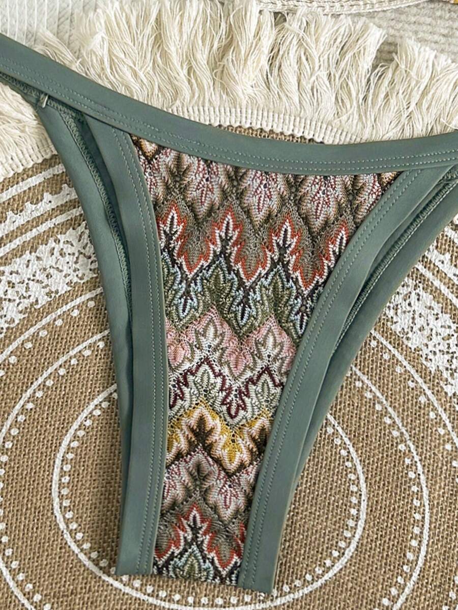 Conjunto de bikini de 2 piezas de punto texturizado para mujer, top corto con recorte y nudo delantero multicolor y bottom, traje de bano para la playa