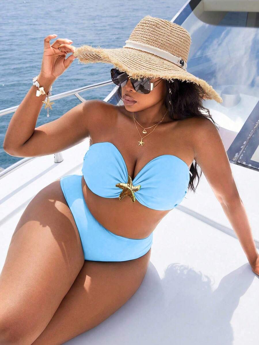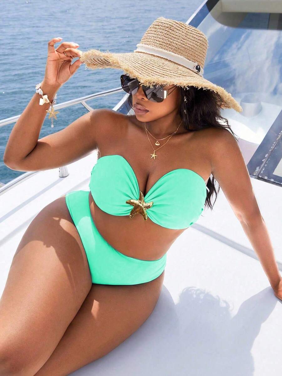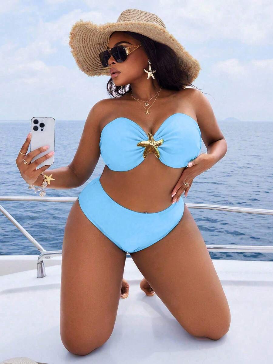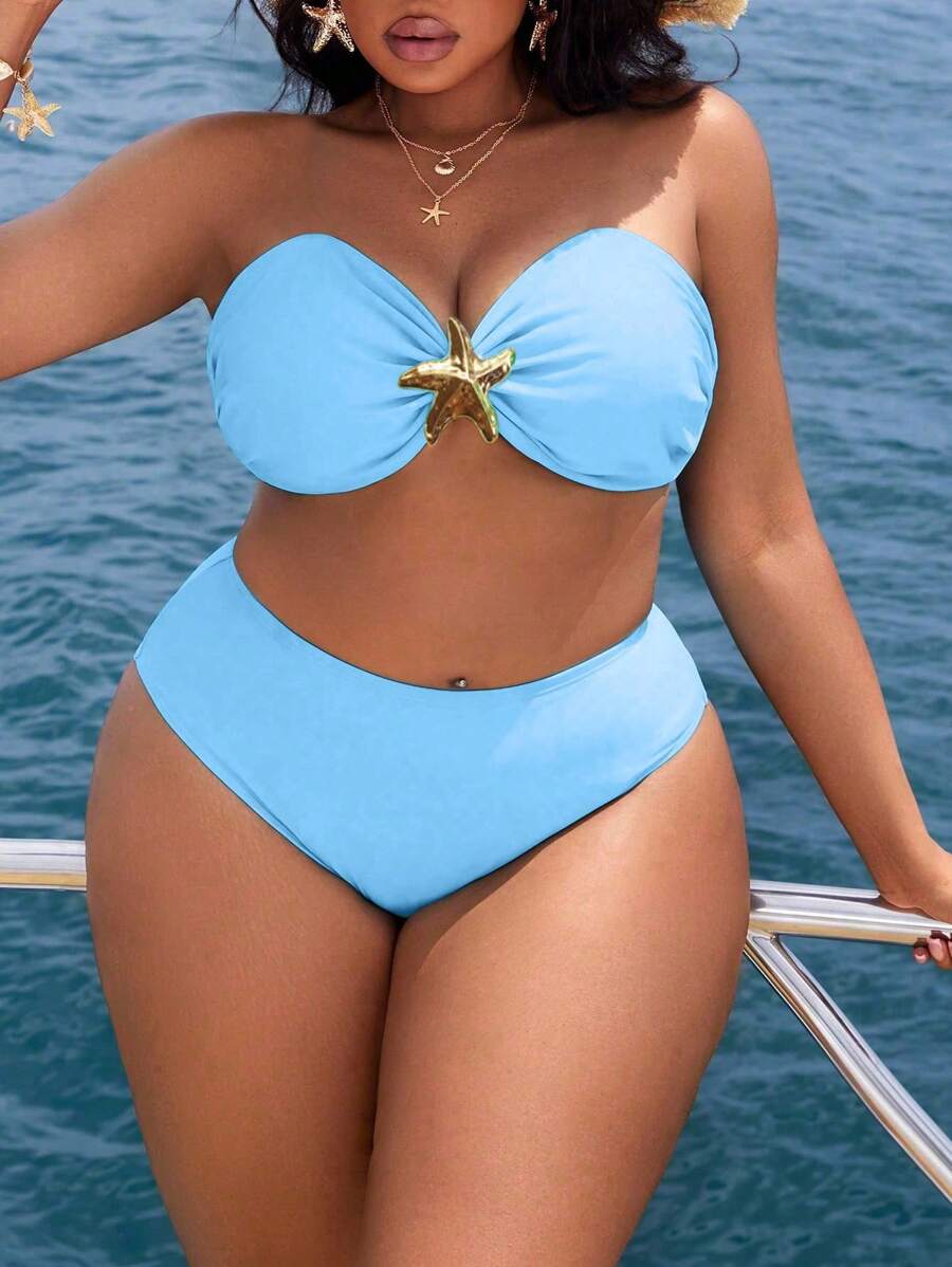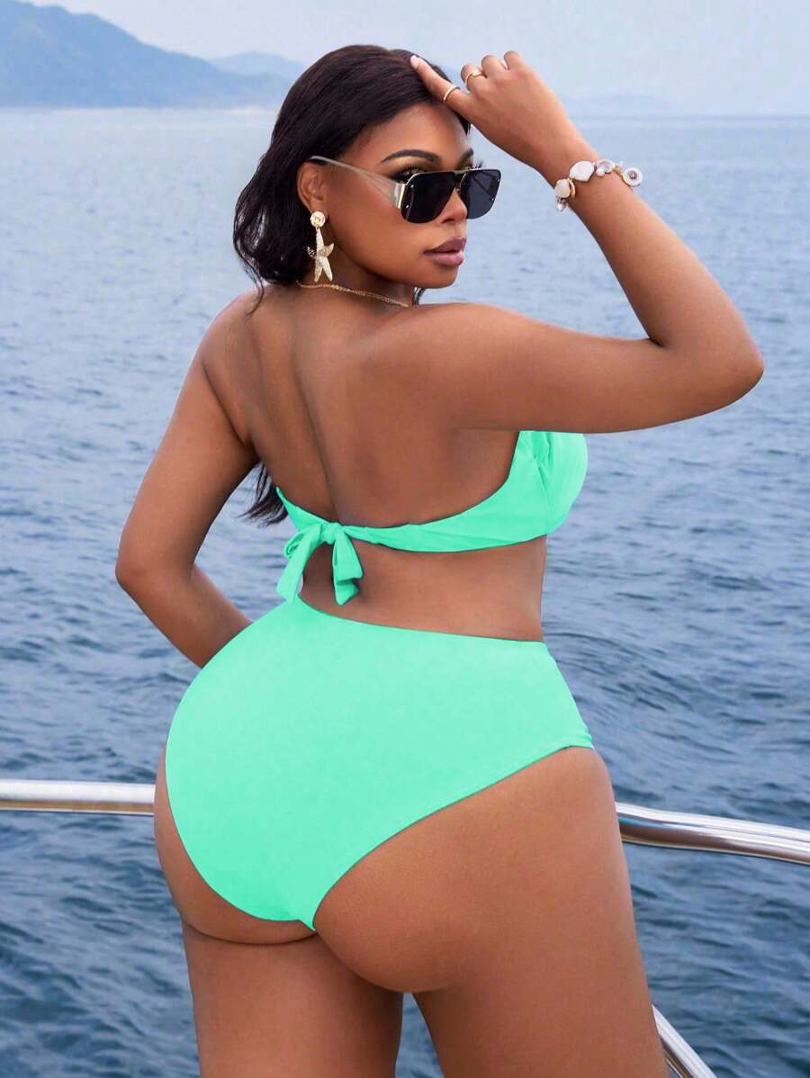 Conjunto de 2 piezas de traje de bano tankini con top dividida de unicolor para mujer de talla grande