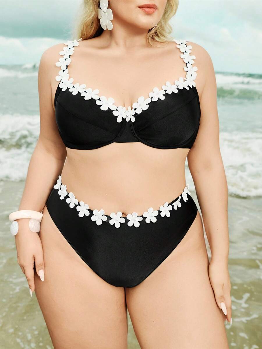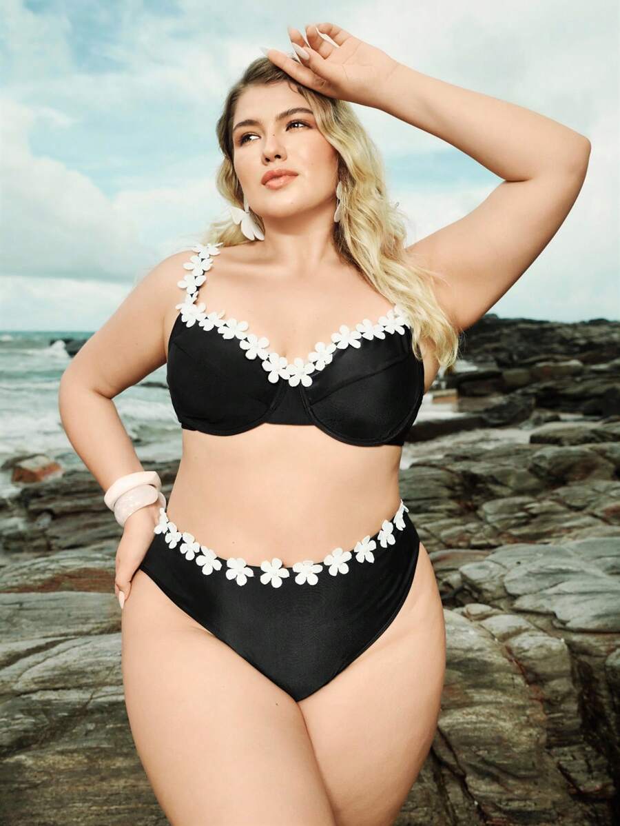 Conjunto de 2 piezas traje de bano de talla grande para mujer con tira – Muy Bonita