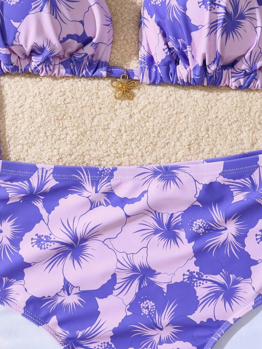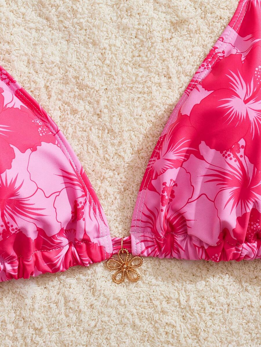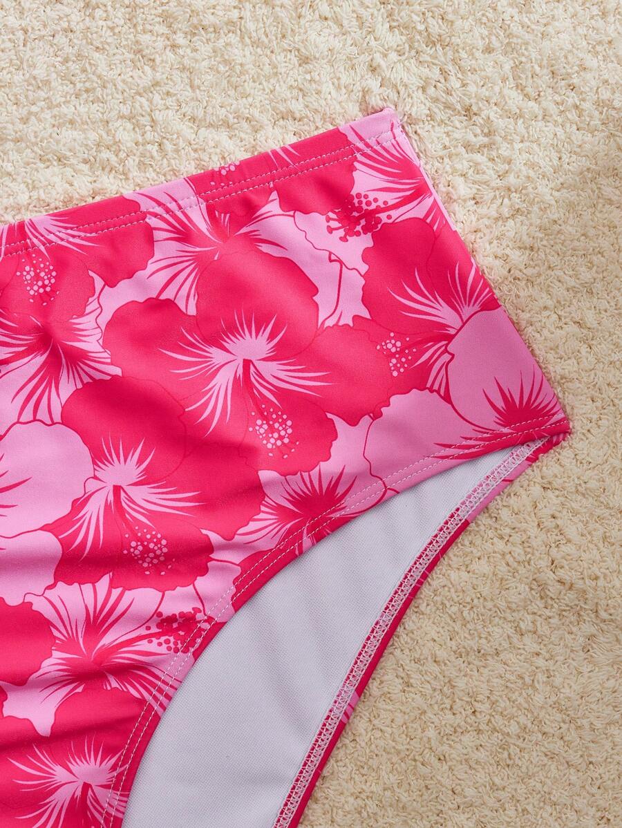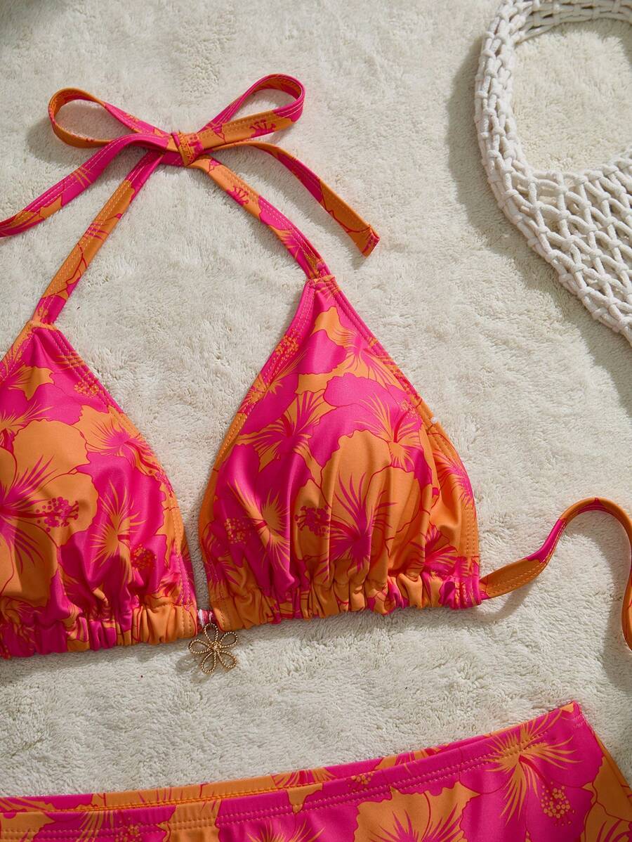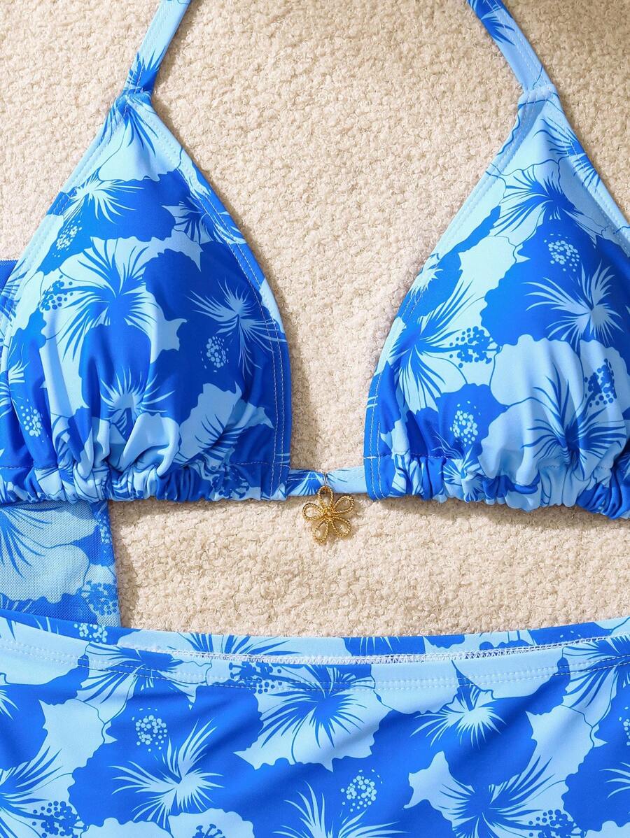 Conjunto de 3 piezas para mujer talla grande: top de bikini halter con estampado floral y bottom a juego, talla grande minifalda a juego para la playa y la natacion