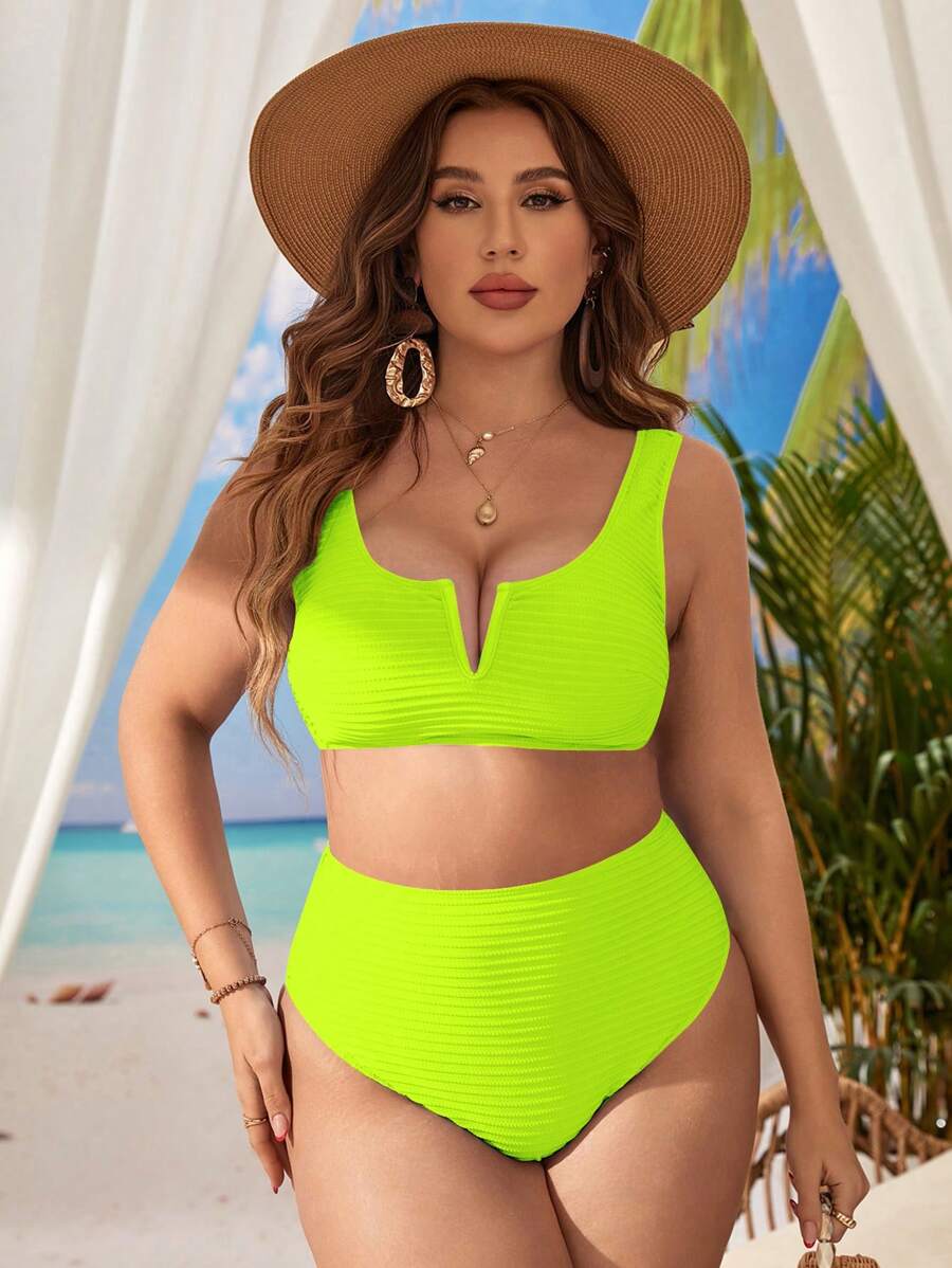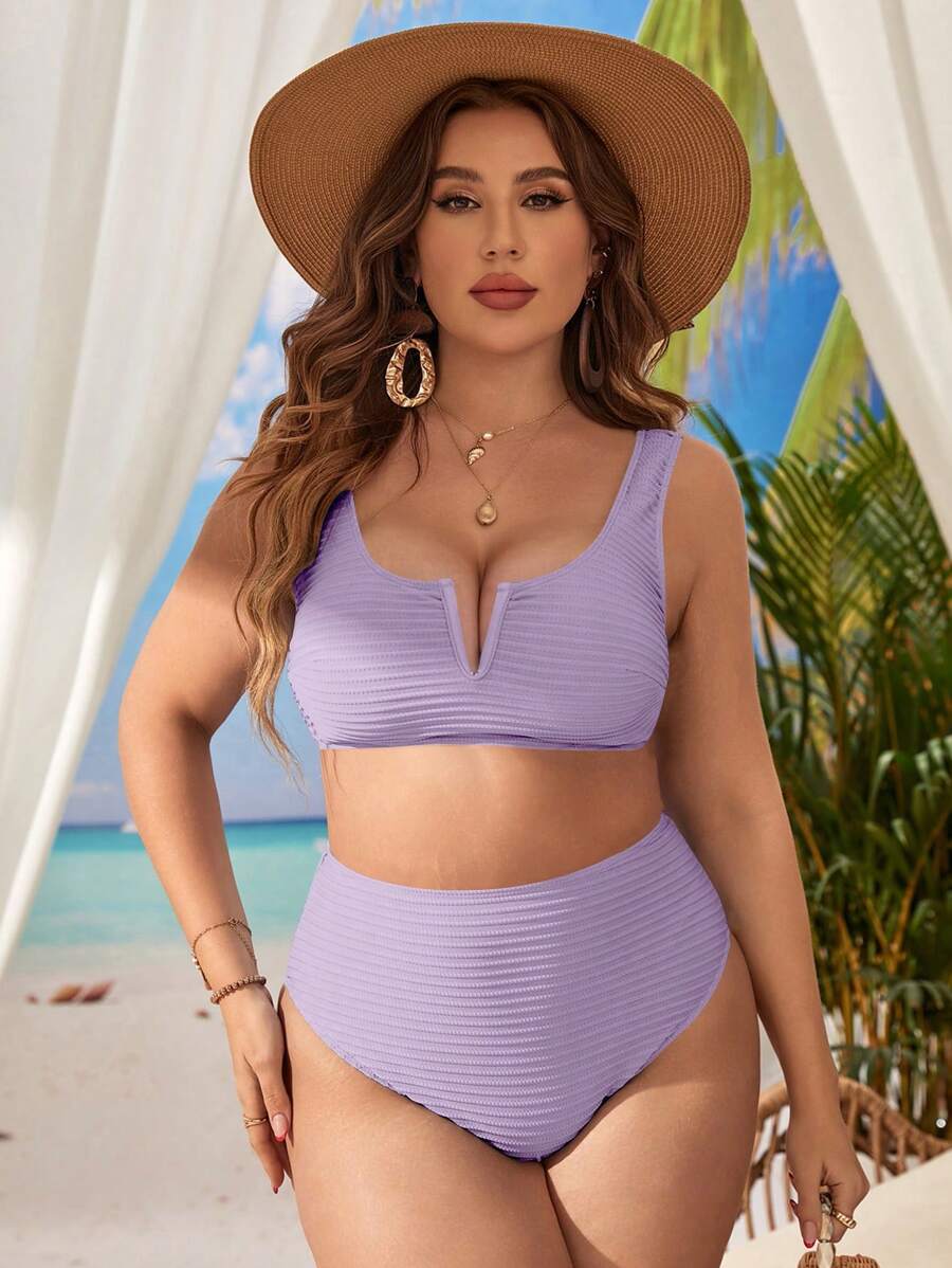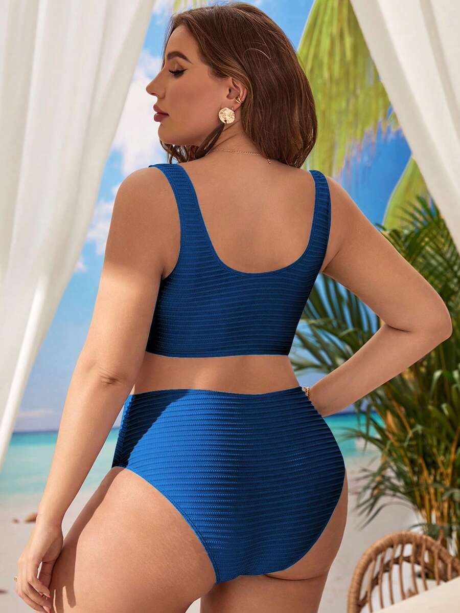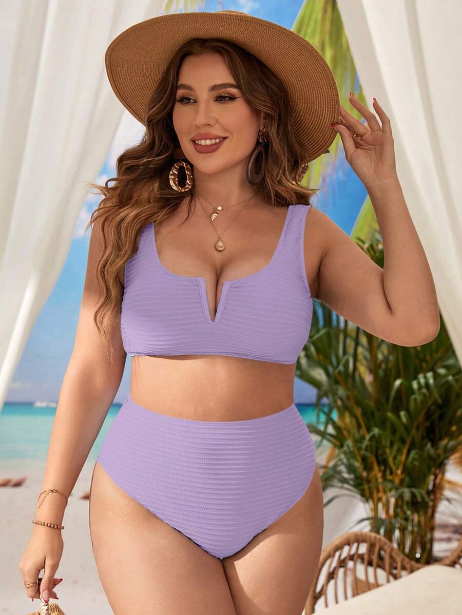 Traje de bano de dos piezas de bikini de unicolor sexy para mujer de talla grande para la playa de verano