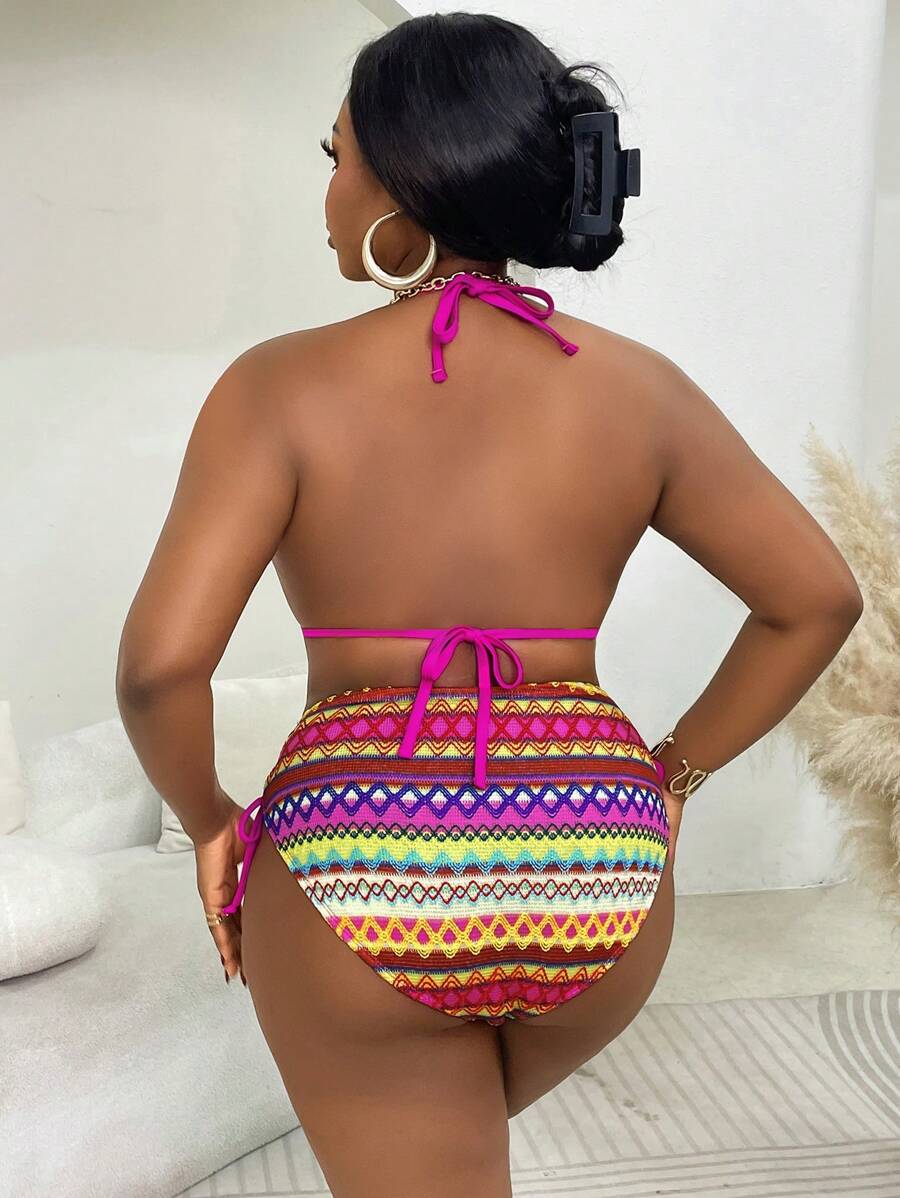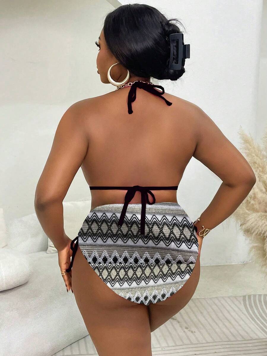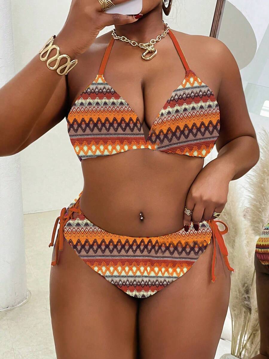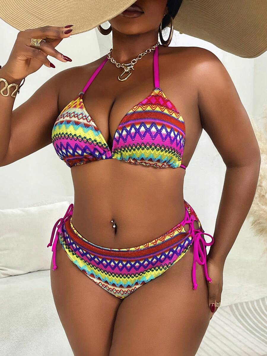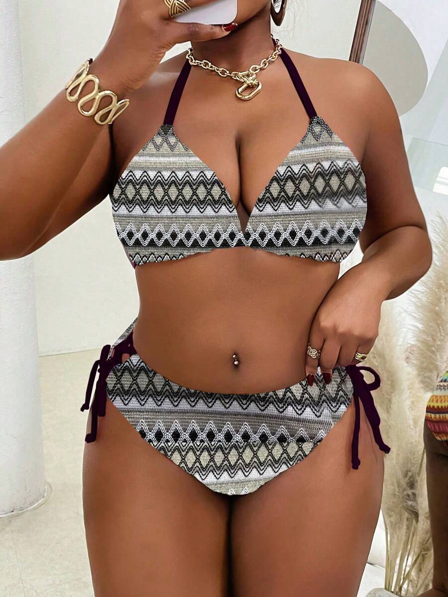 Conjunto de bikini sexy de 2 piezas con top de triangulo anudada y textura de tela para mujeres de talla grande, ideal para la playa y vacaciones