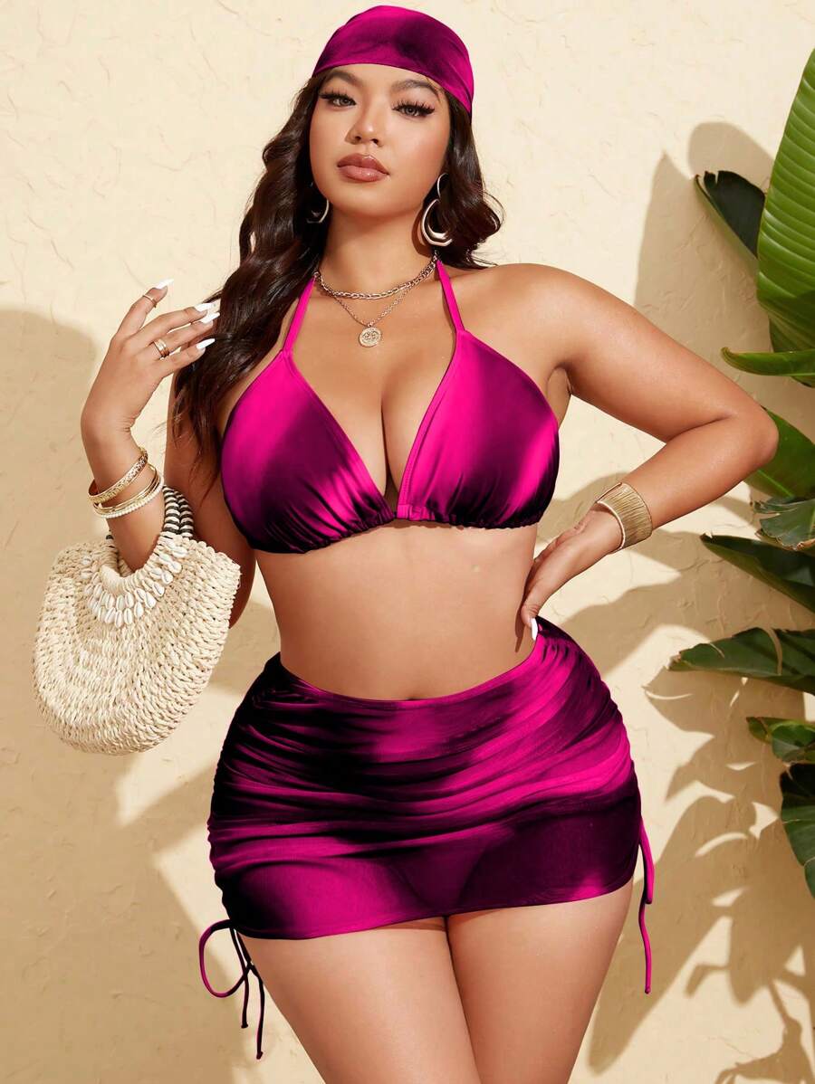 Conjunto de bikini de 4 piezas para mujer talla grande con estampado d – Muy Bonita