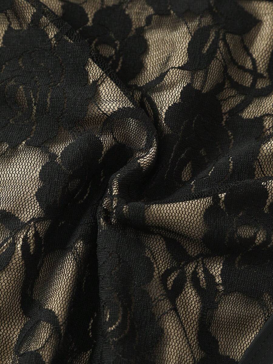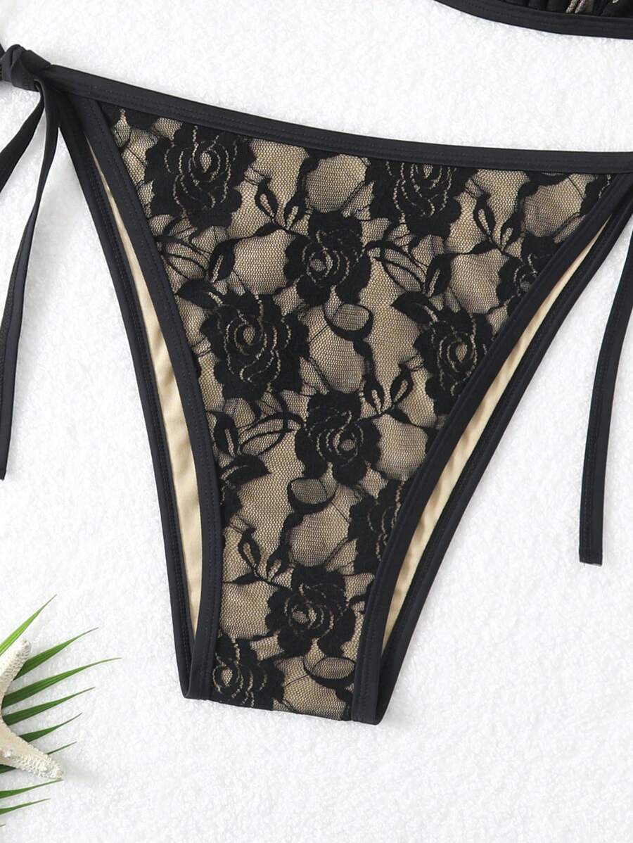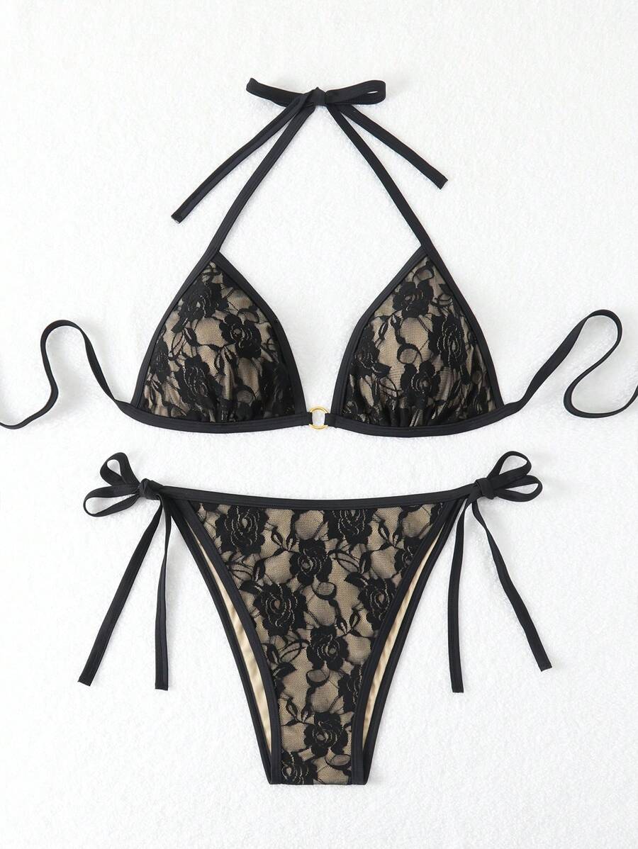 Lushoire conjunto de vestido de bano de talla grande en un solo color con cuello de halter y abertura, de verano
