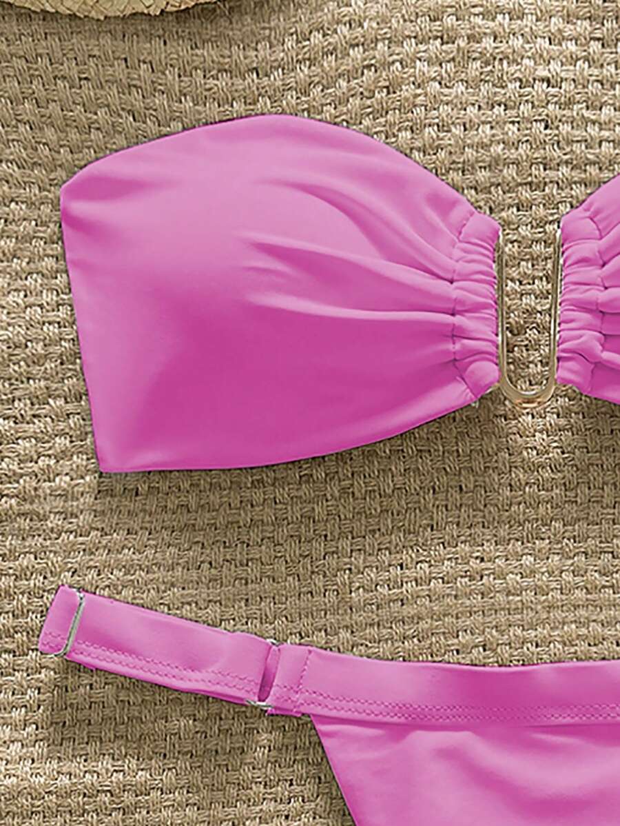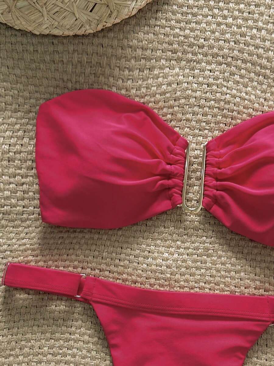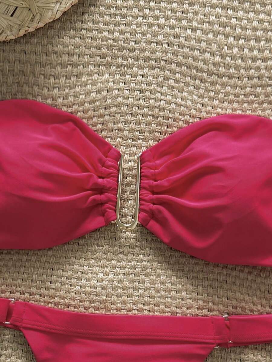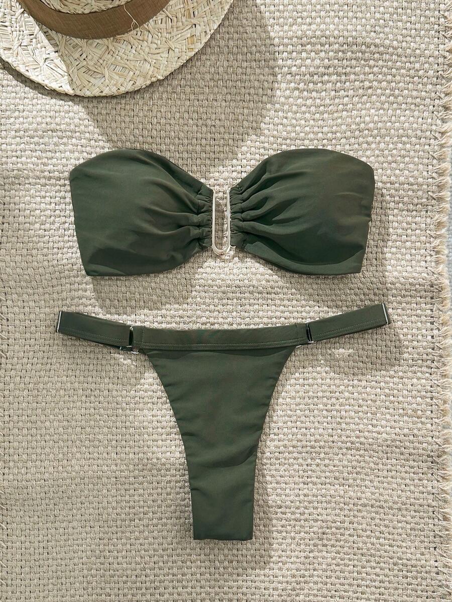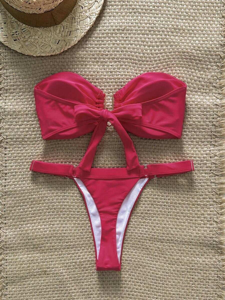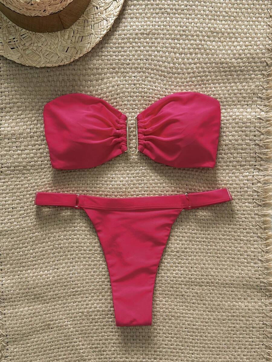 Conjunto de bikini sexy con estampado aleatorio y decoracion metalica para mujeres: conjunto de bikini de verano para la playa