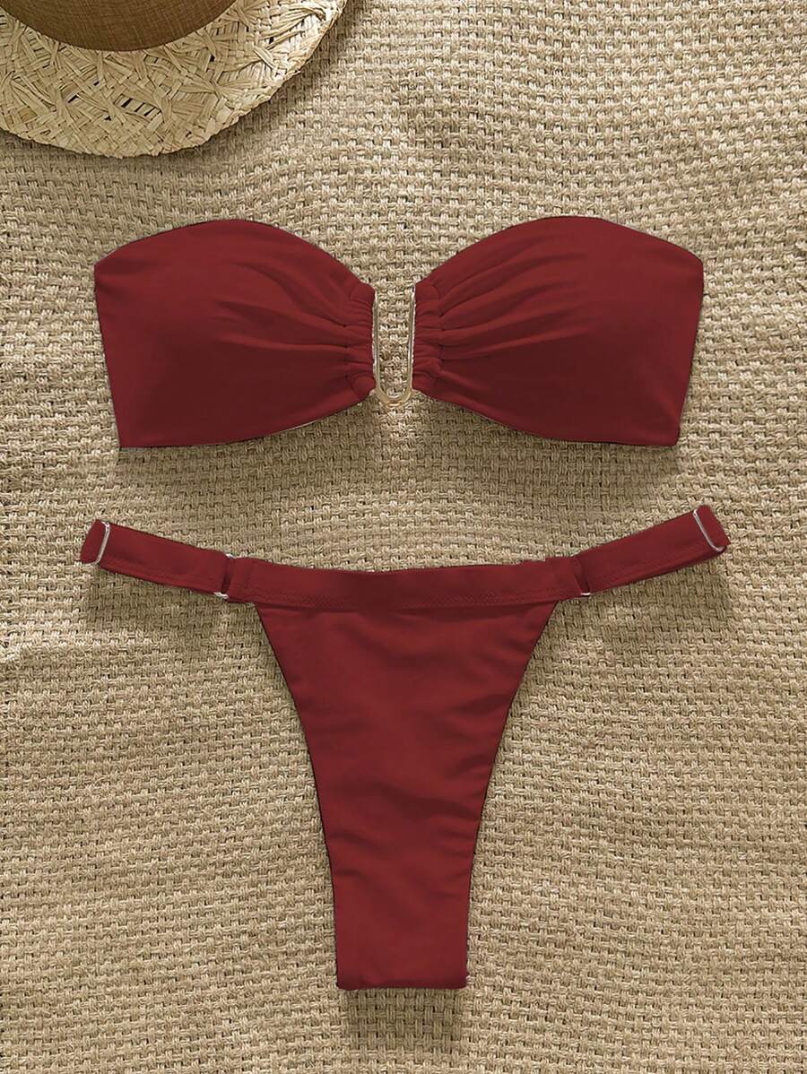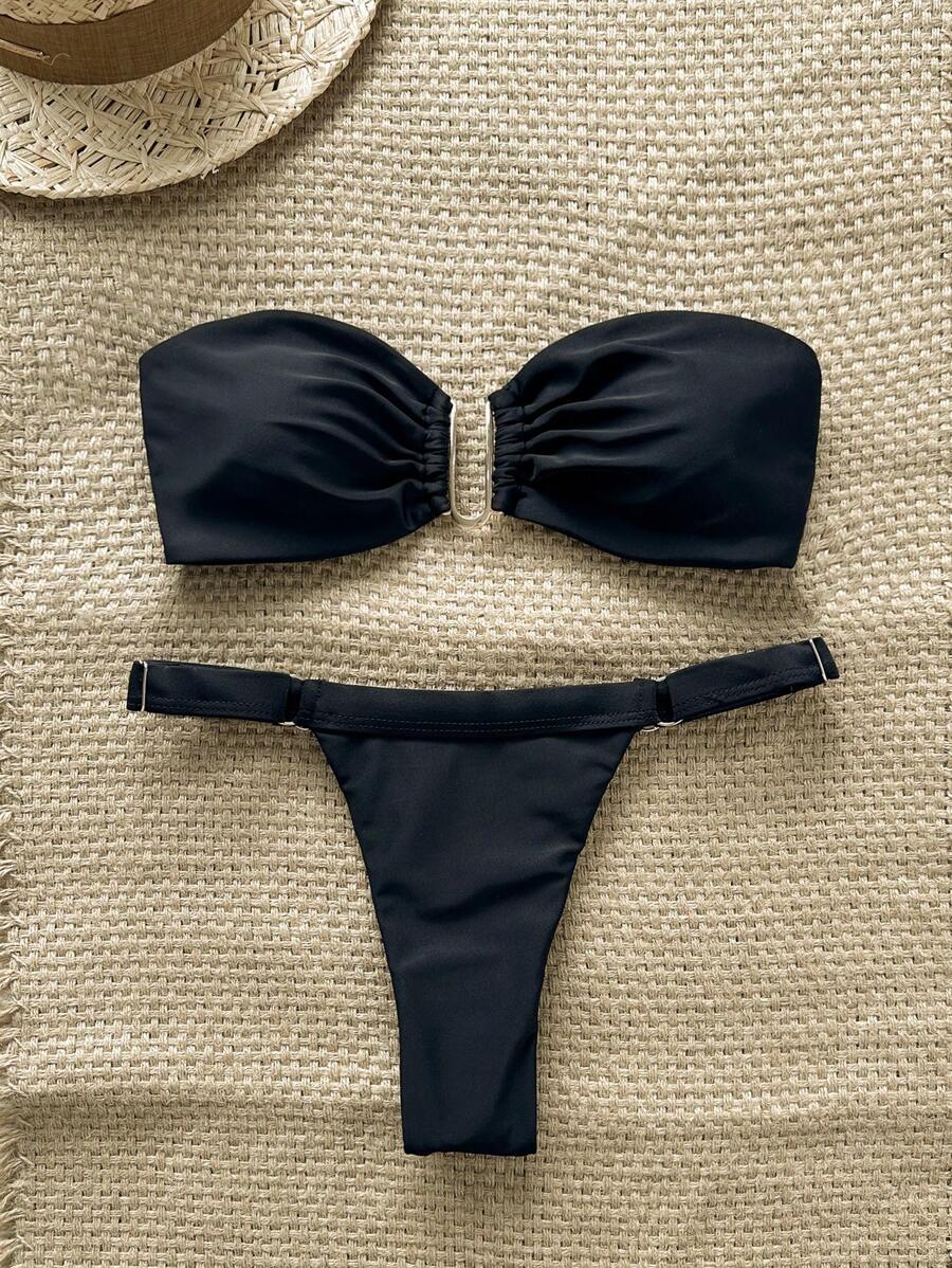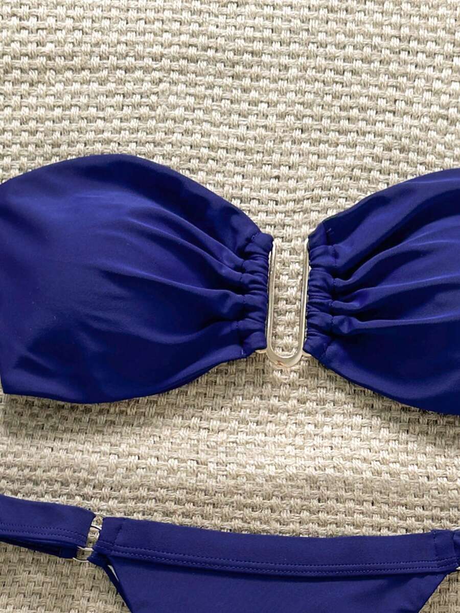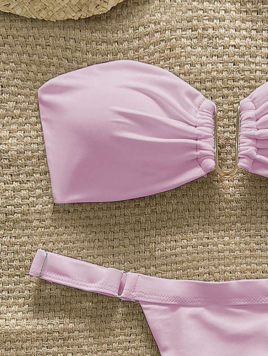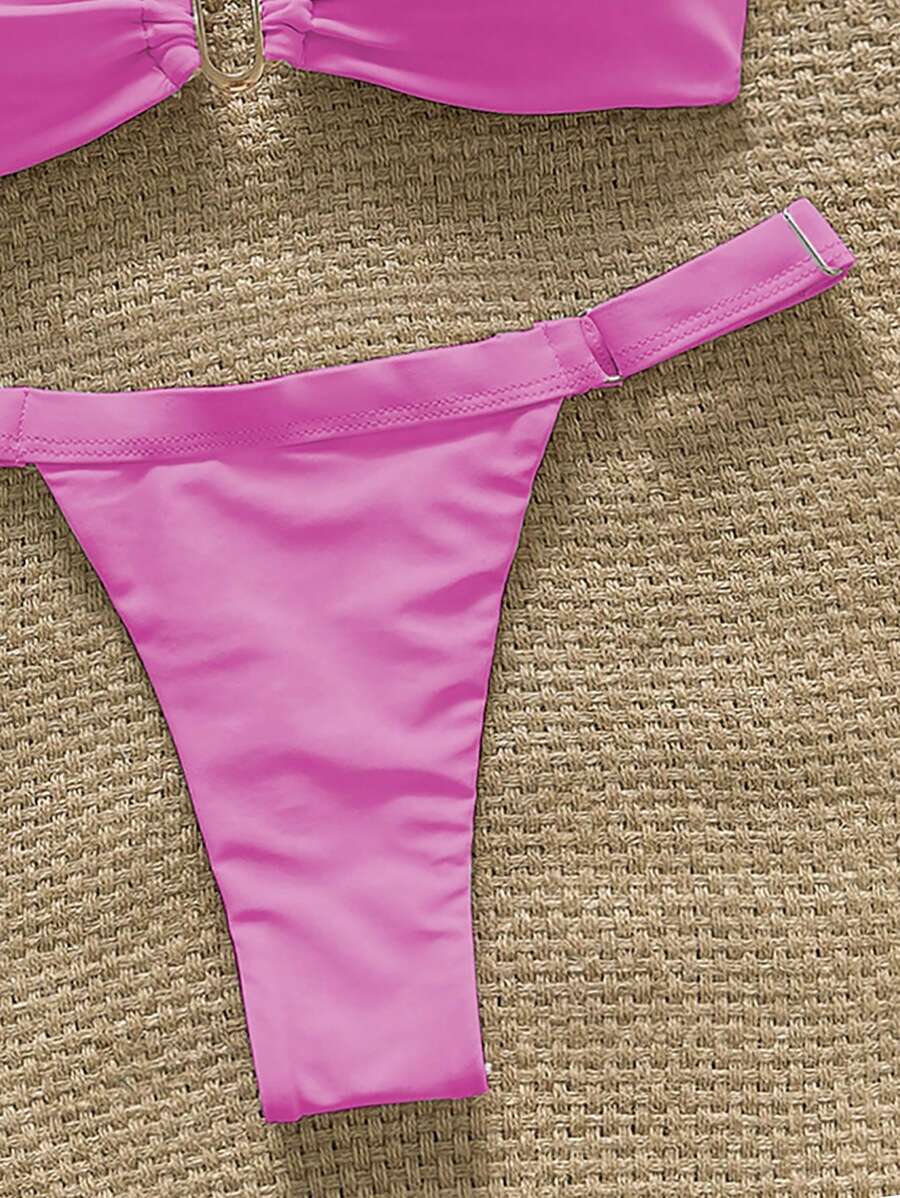Conjunto de bikini sexy con estampado aleatorio y decoracion metalica para mujeres: conjunto de bikini de verano para la playa