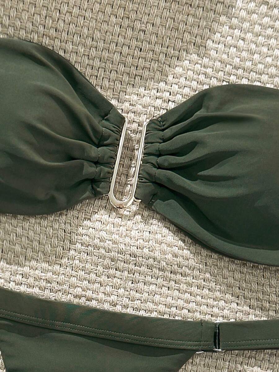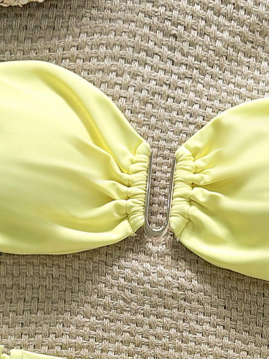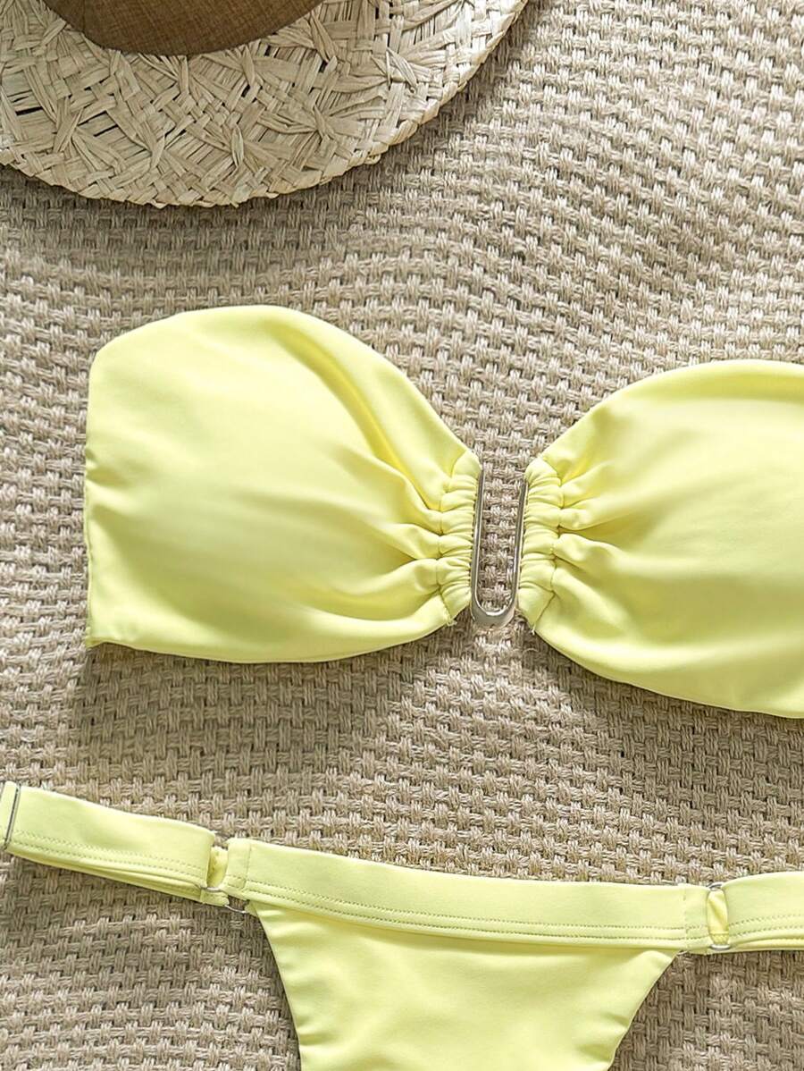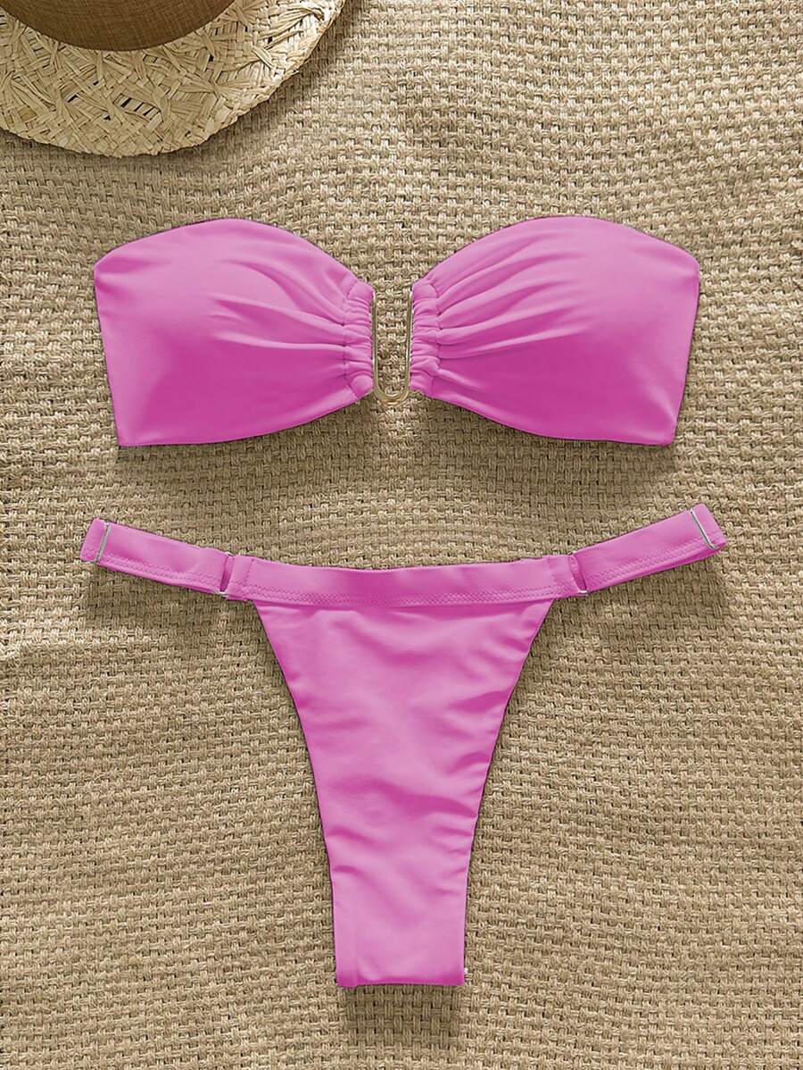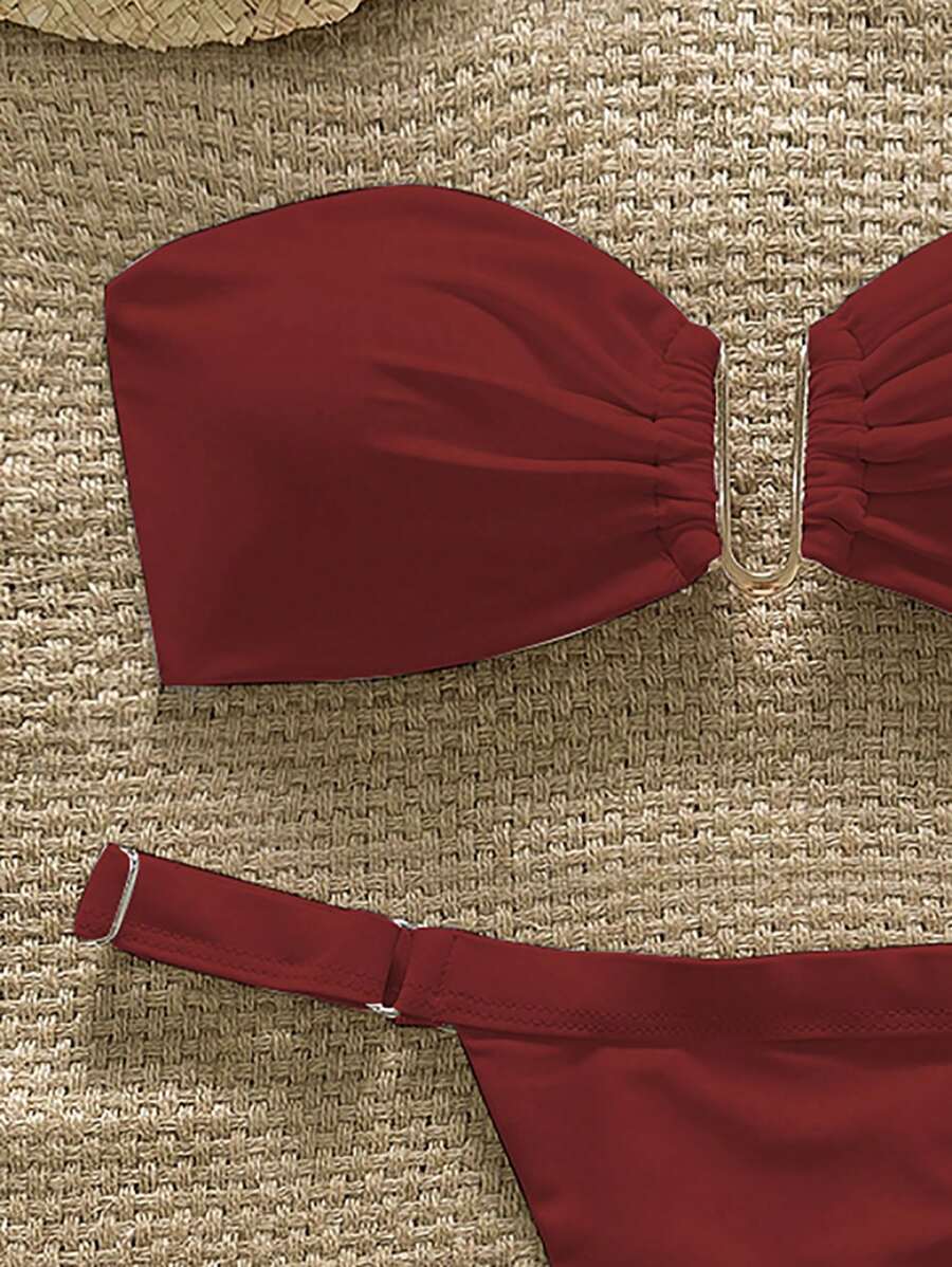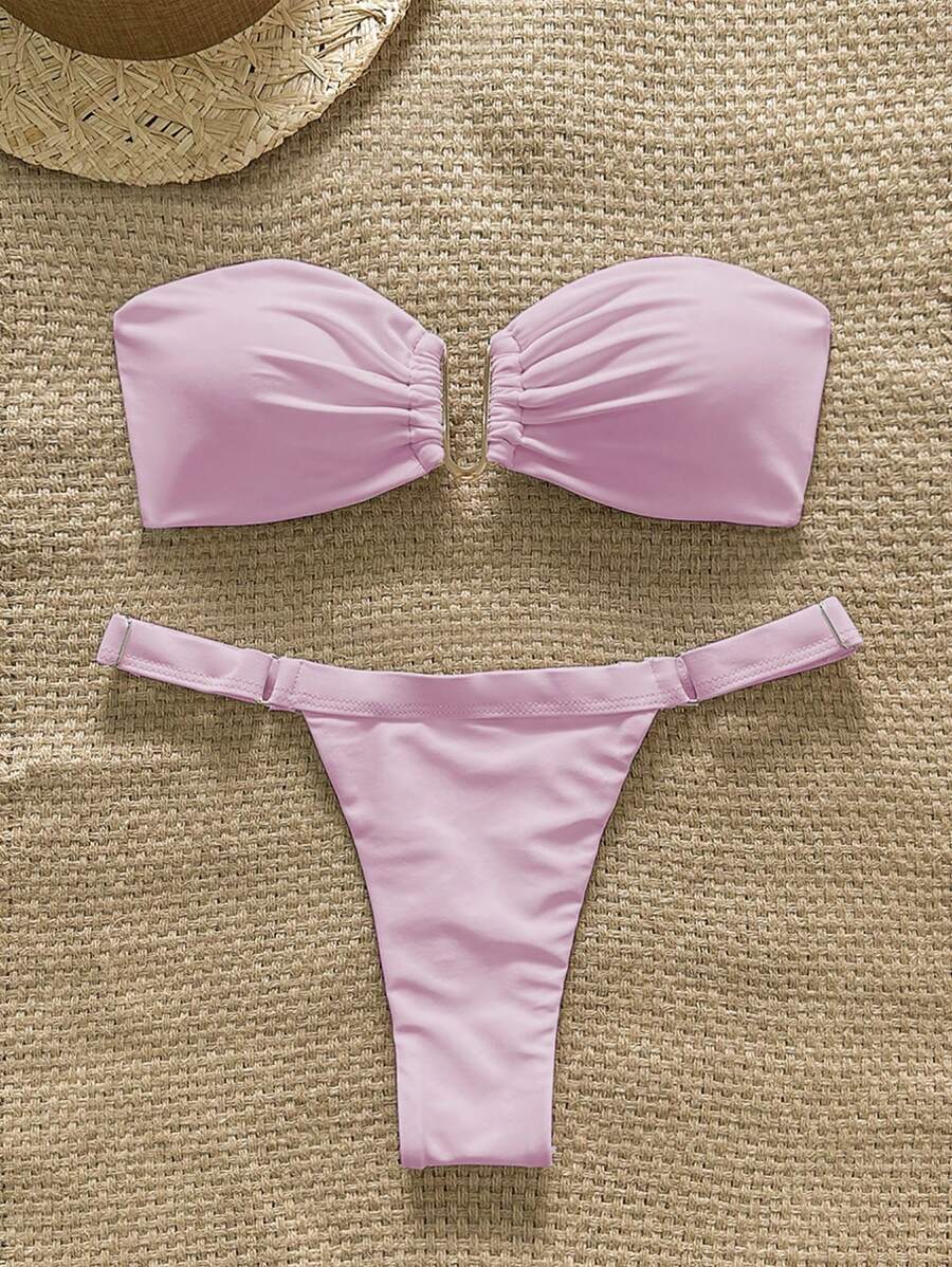 Conjunto de bikini sexy con estampado aleatorio y decoracion metalica para mujeres: conjunto de bikini de verano para la playa