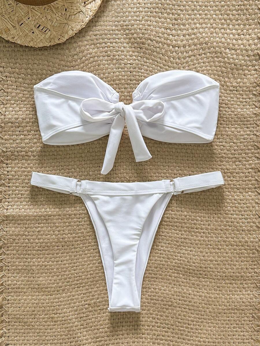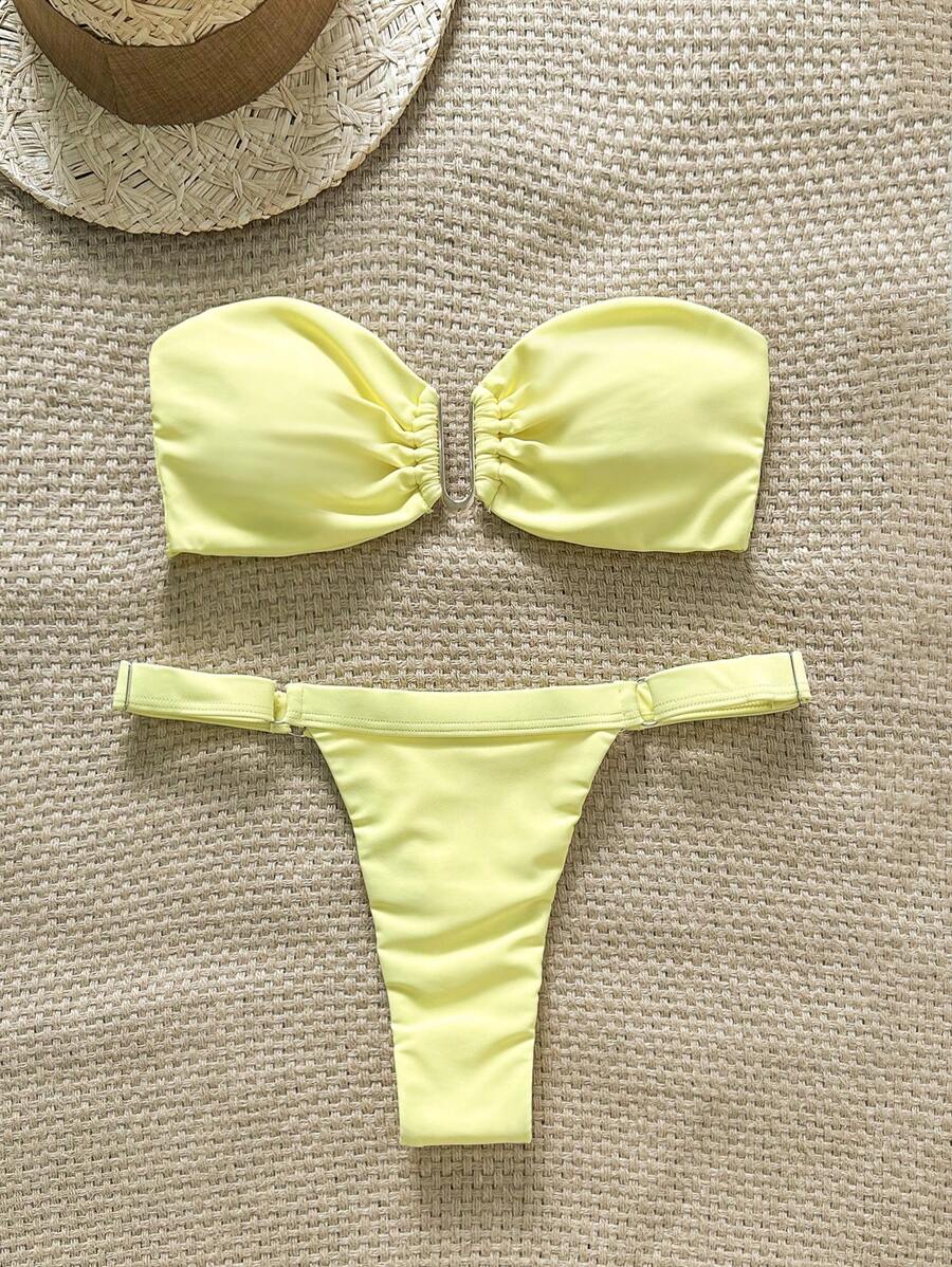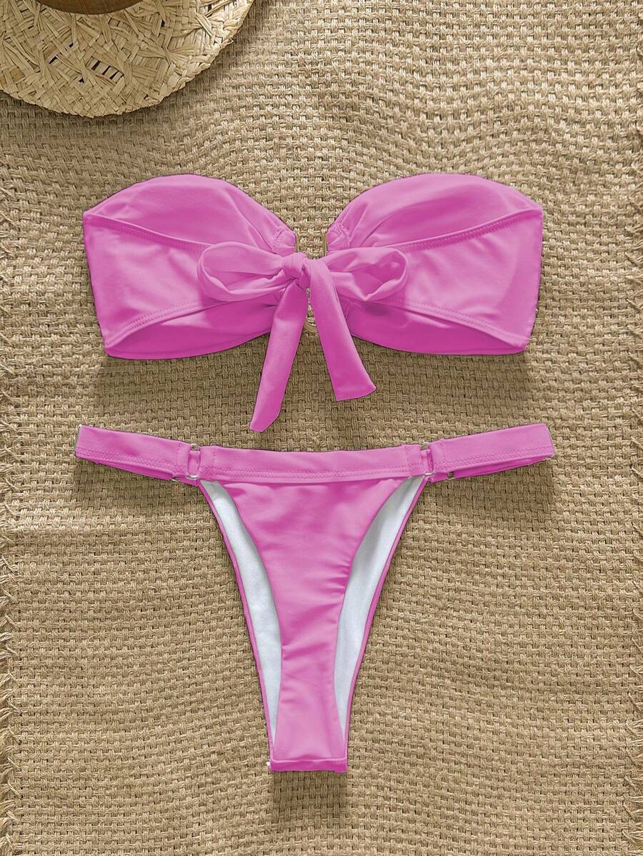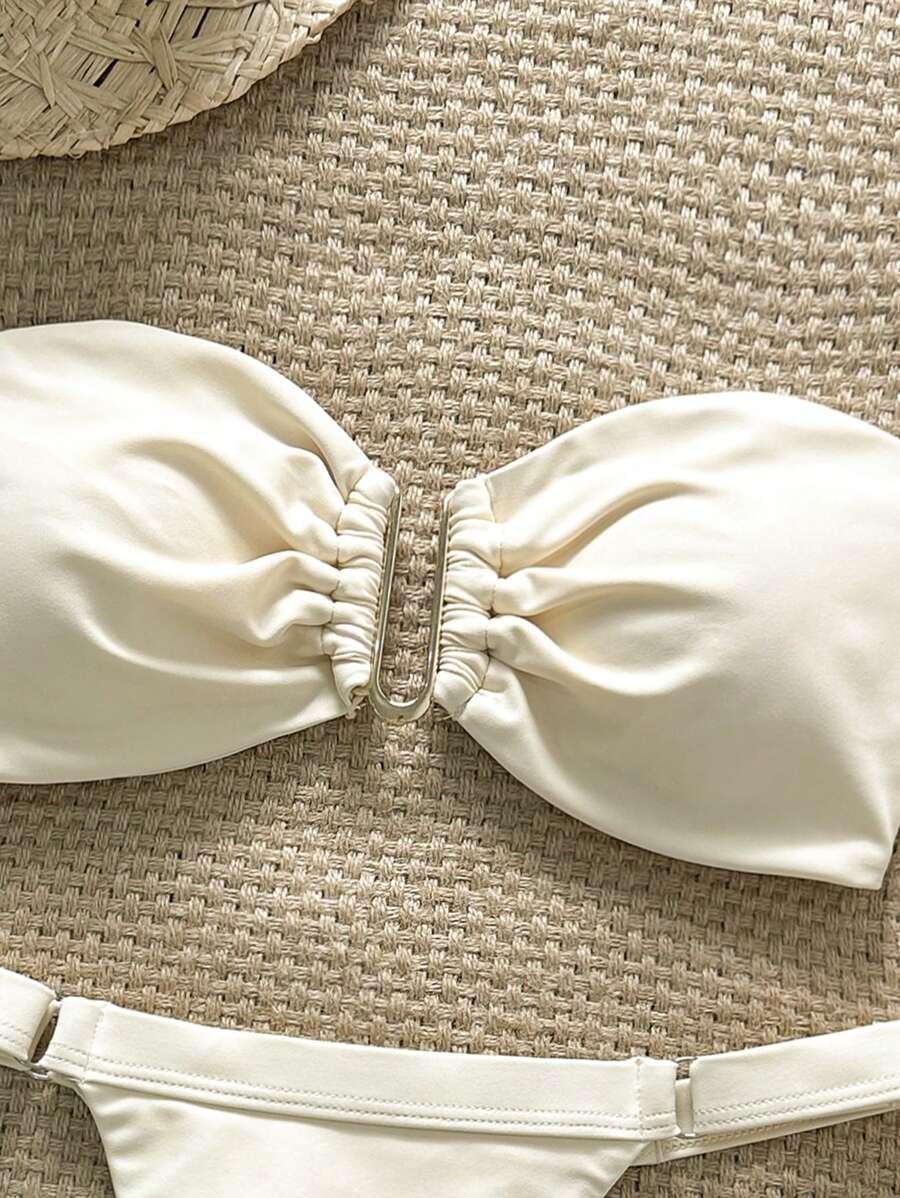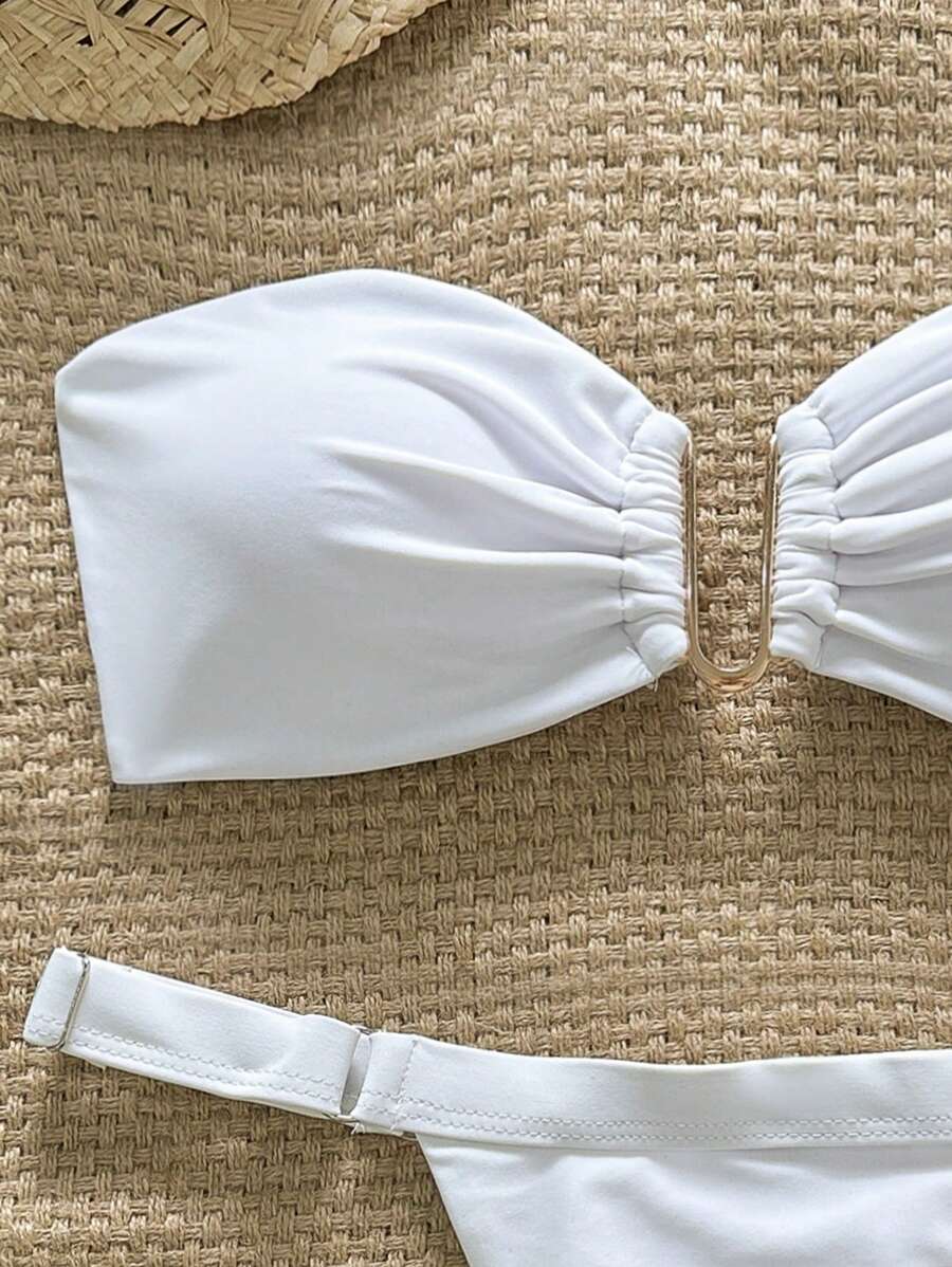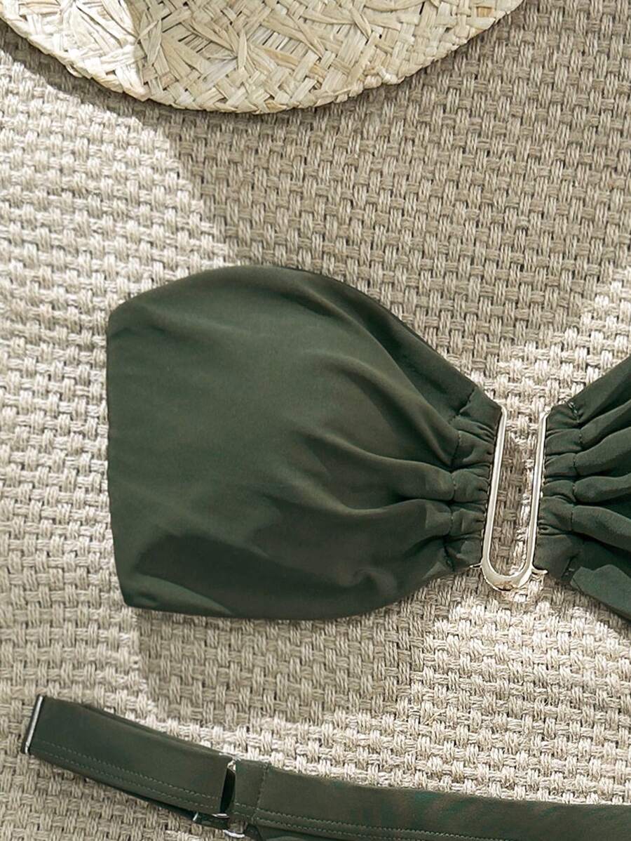 Conjunto de bikini sexy con estampado aleatorio y decoracion metalica para mujeres: conjunto de bikini de verano para la playa
