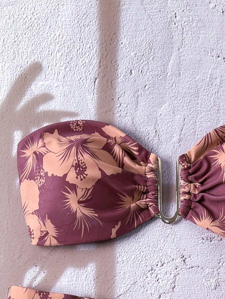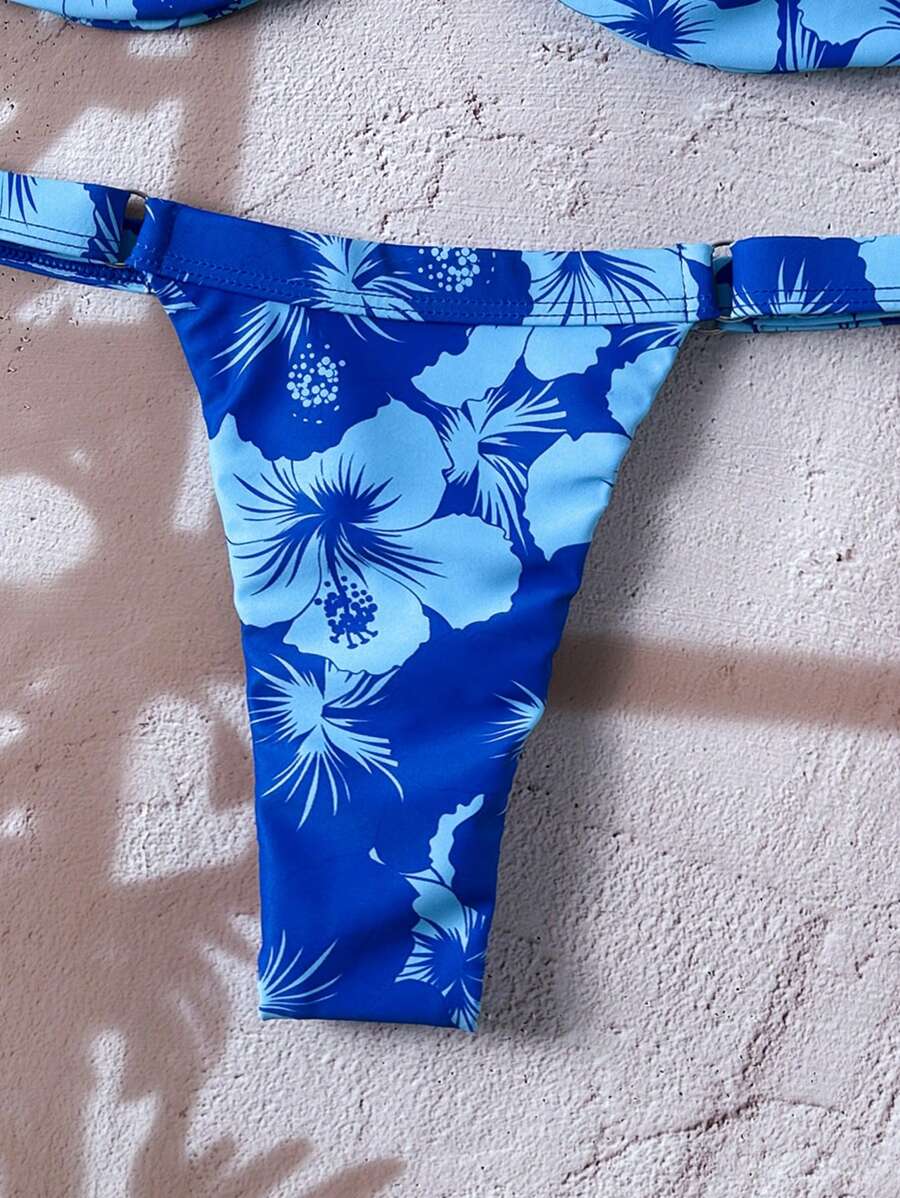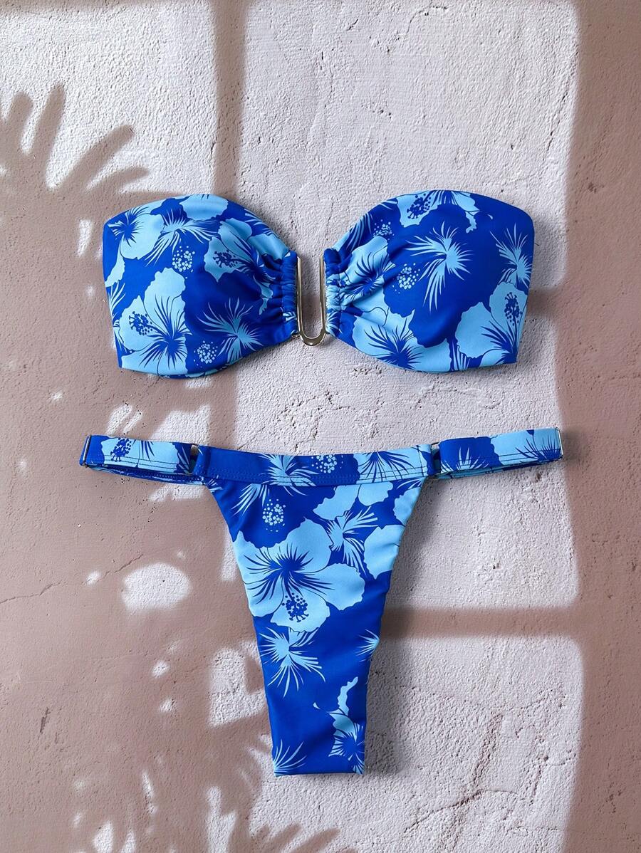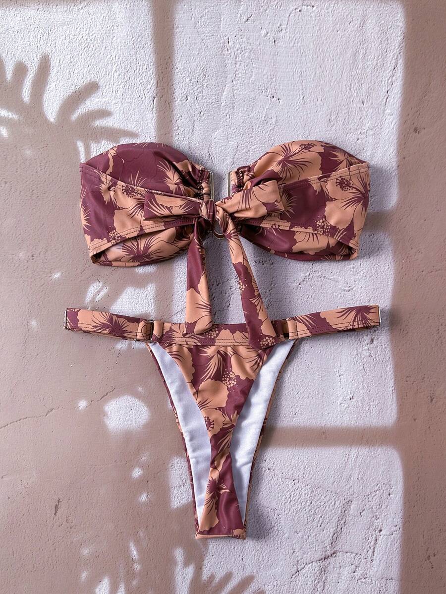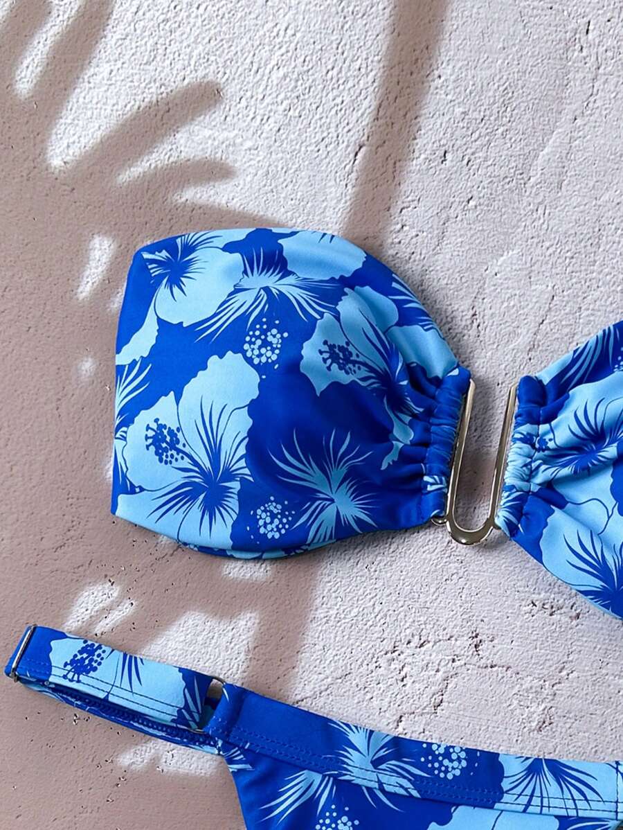 Conjunto de bikini sexy con estampado aleatorio y decoracion metalica – Muy Bonita