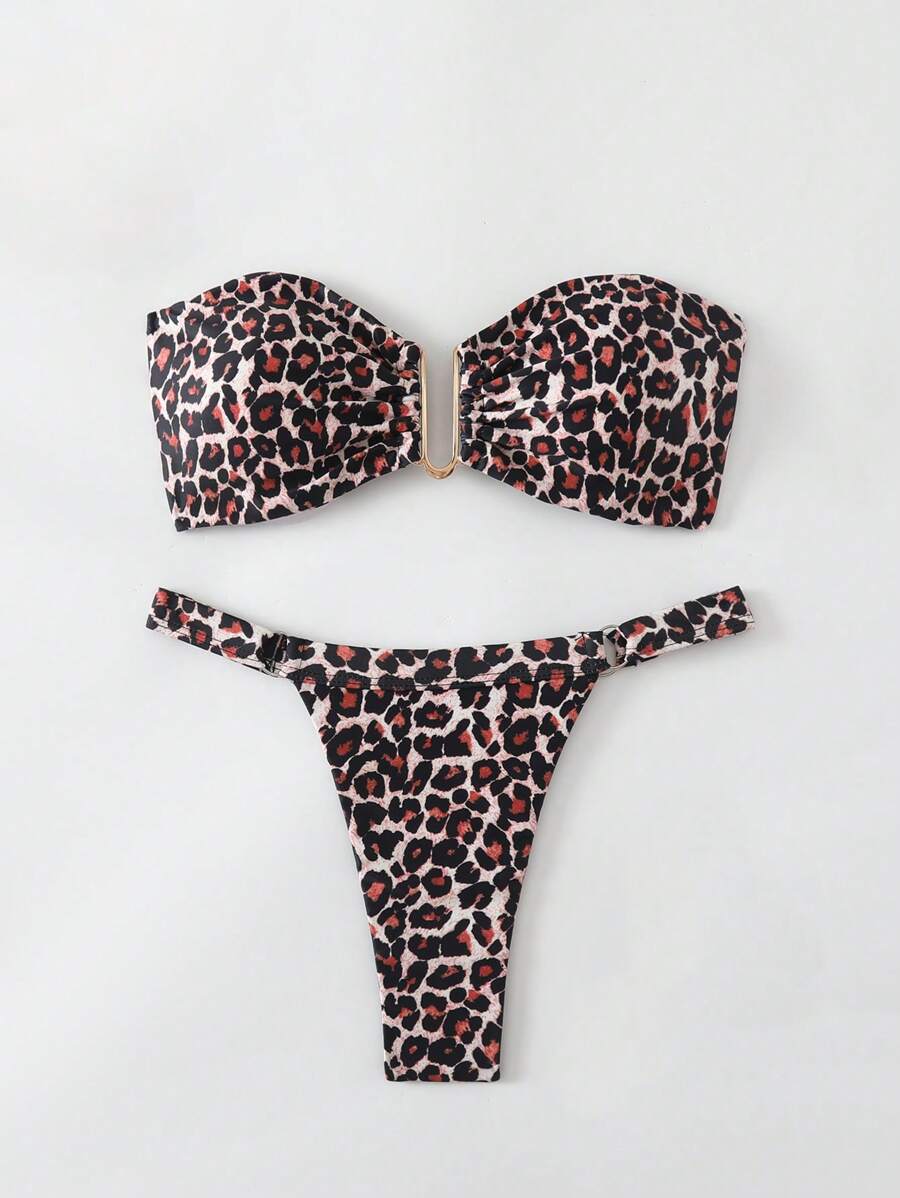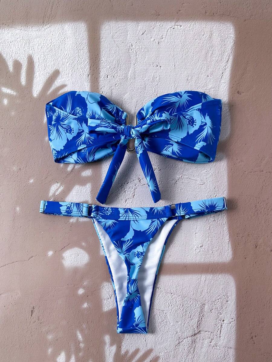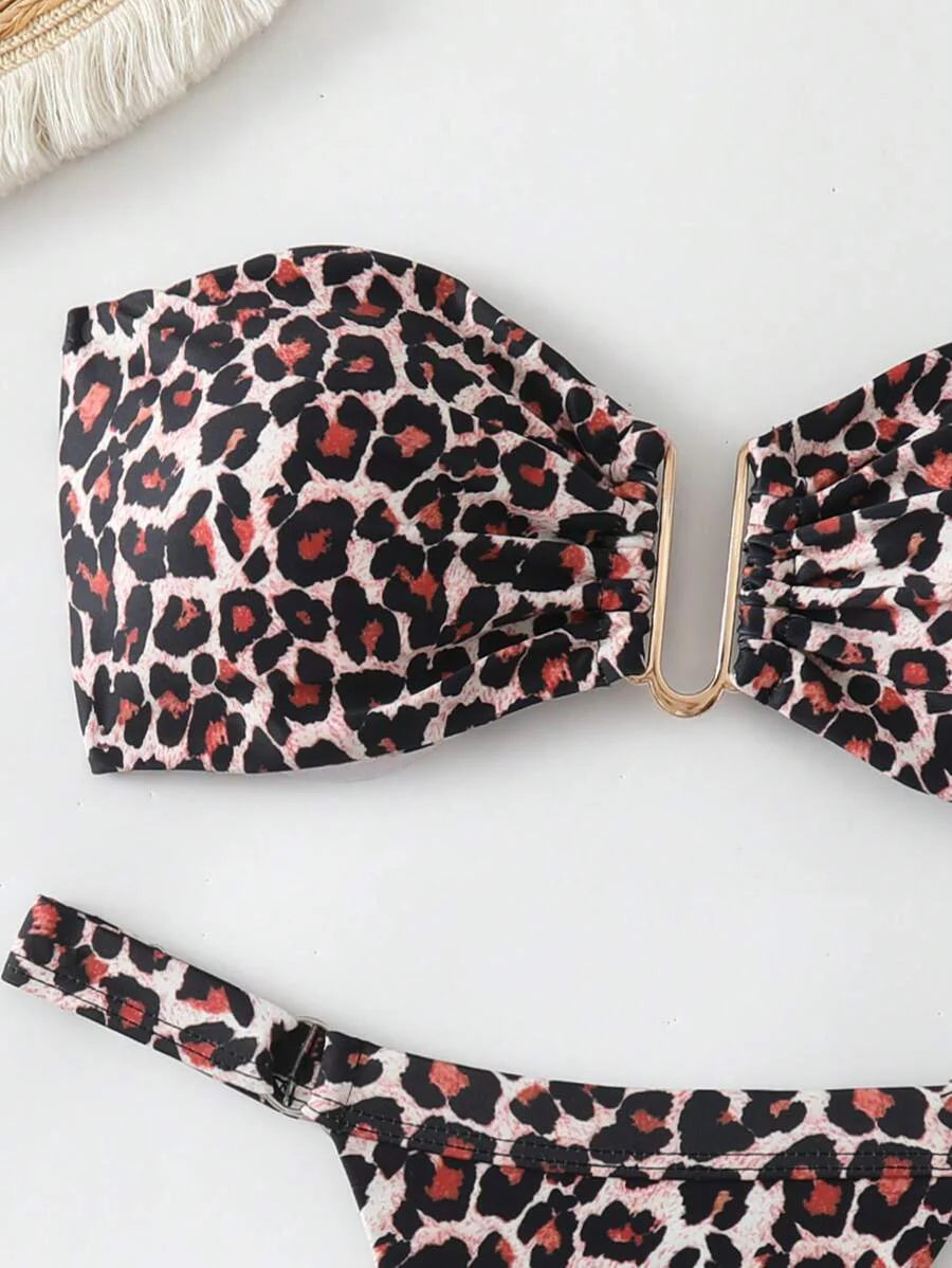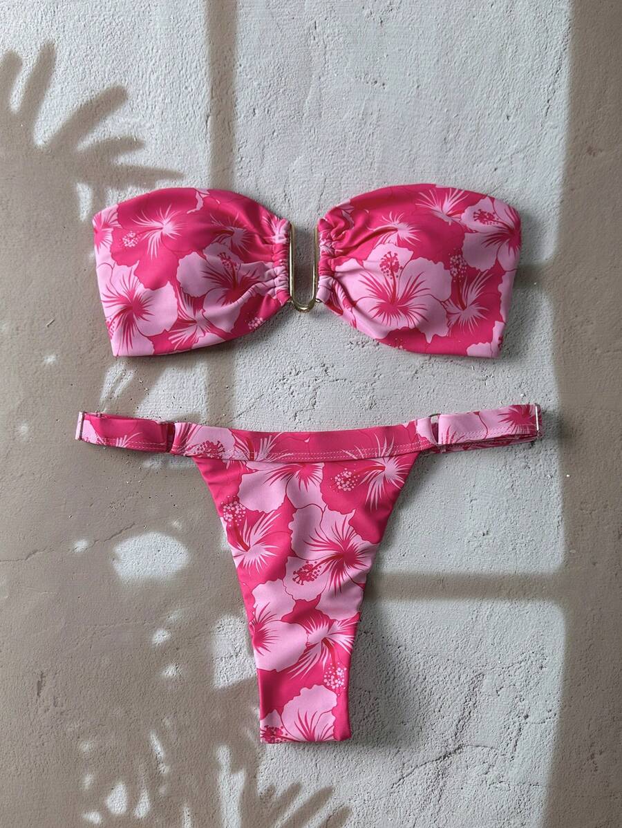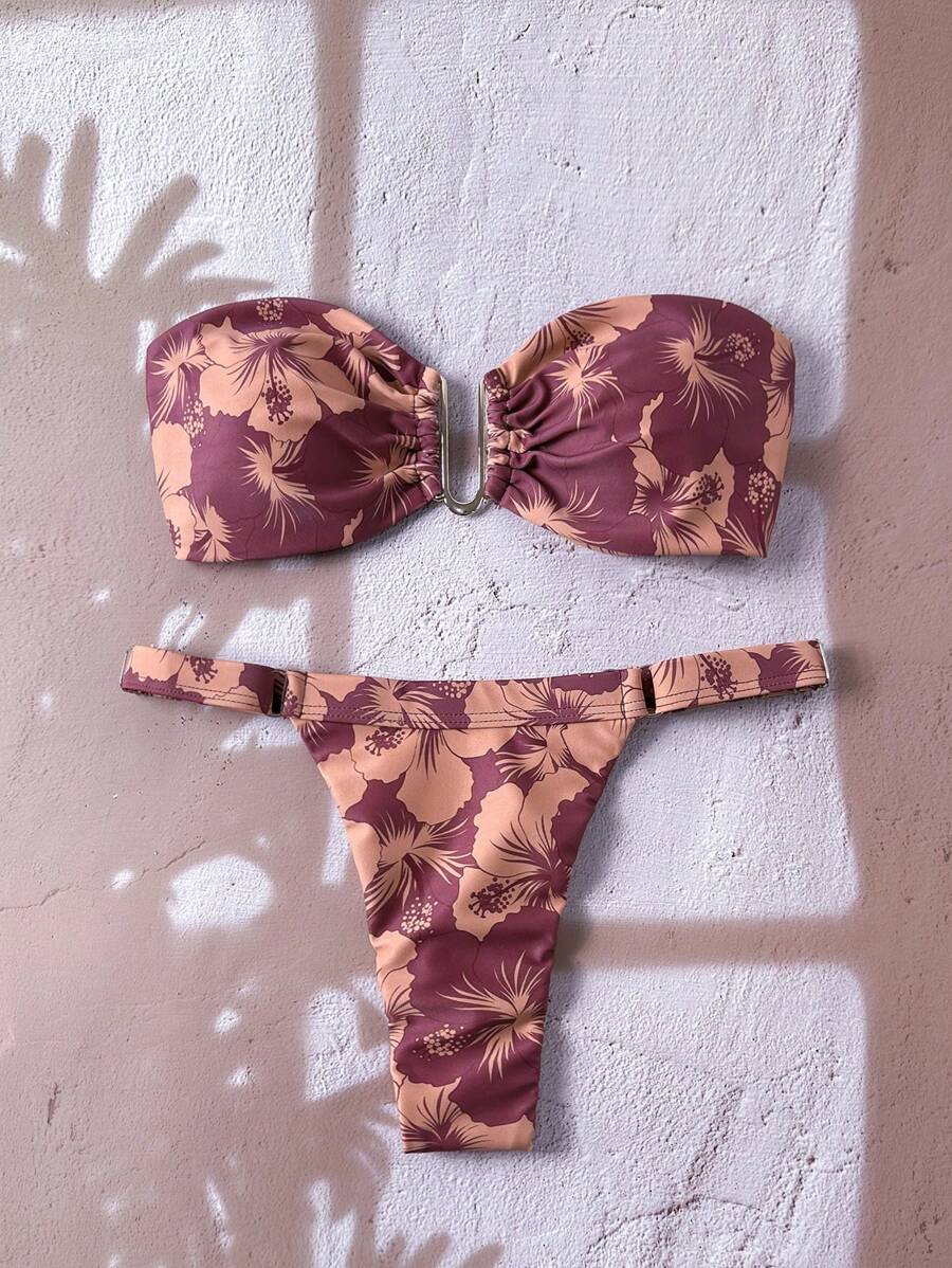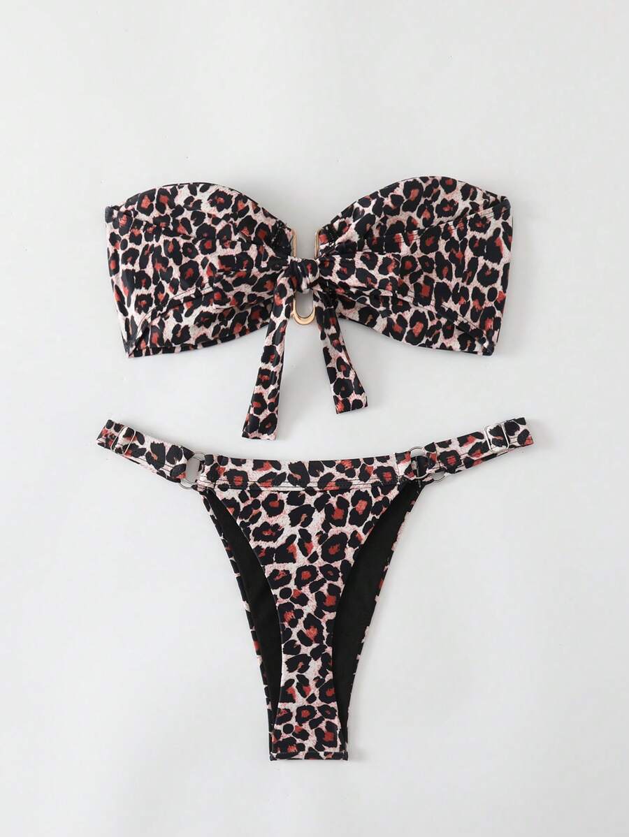 Conjunto de bikini sexy con estampado aleatorio y decoracion metalica – Muy Bonita