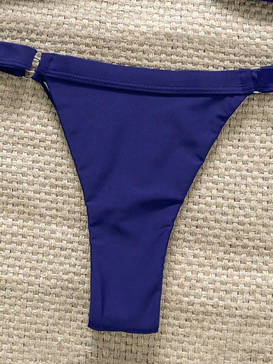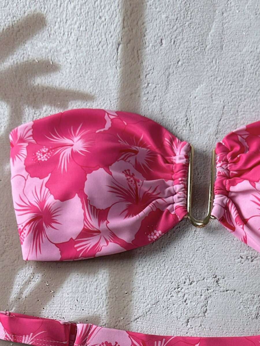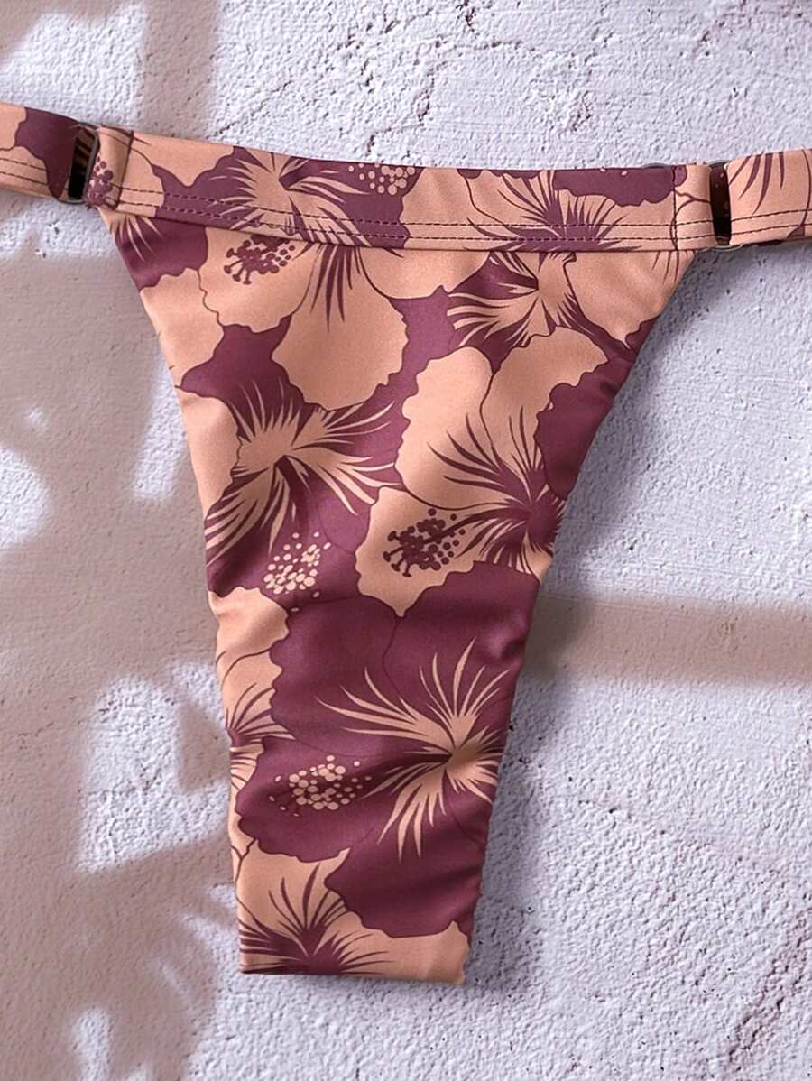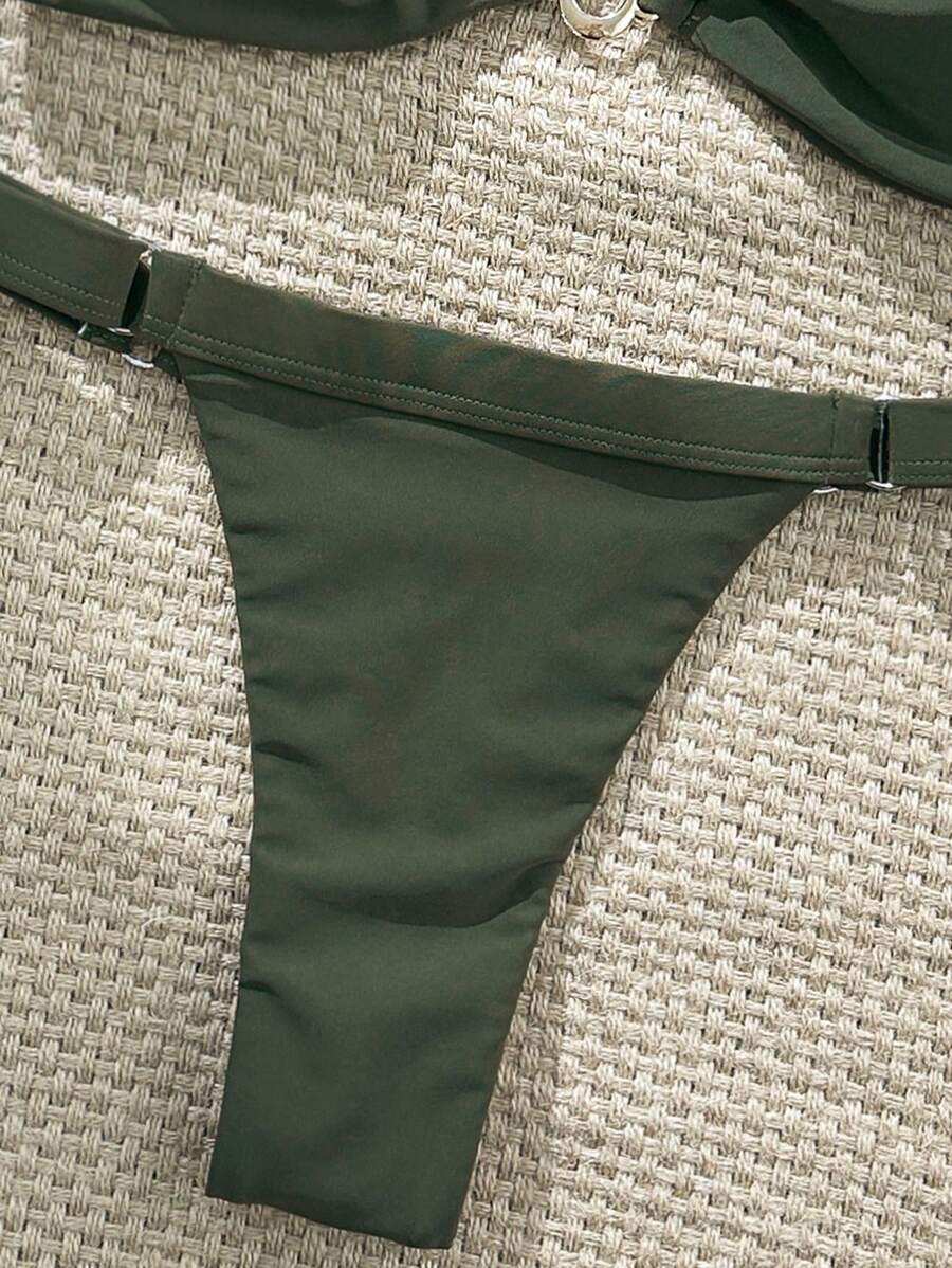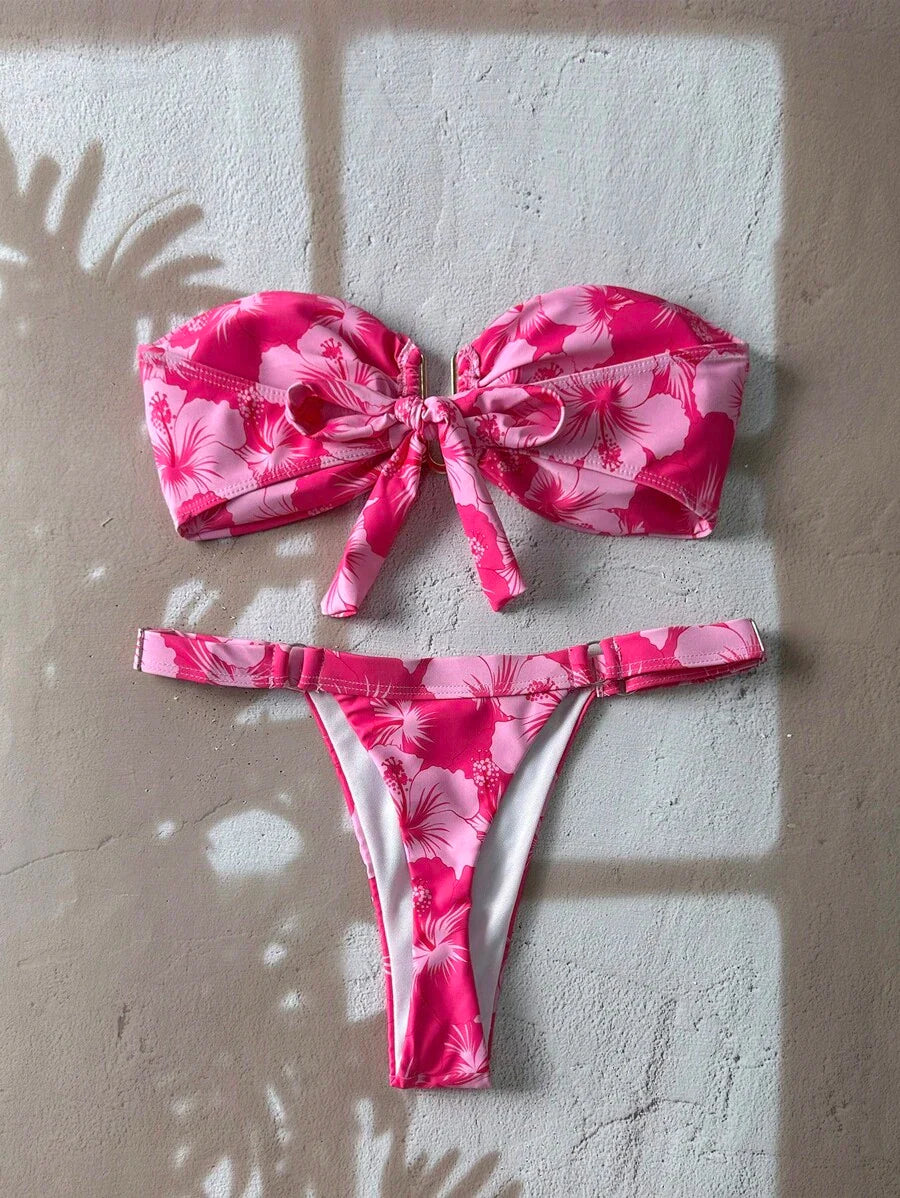 Conjunto de bikini sexy con estampado aleatorio y decoracion metalica – Muy Bonita