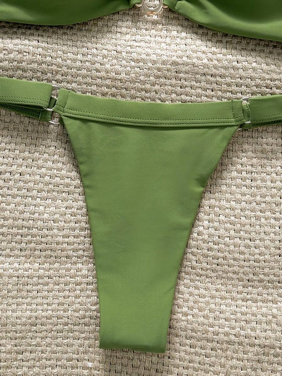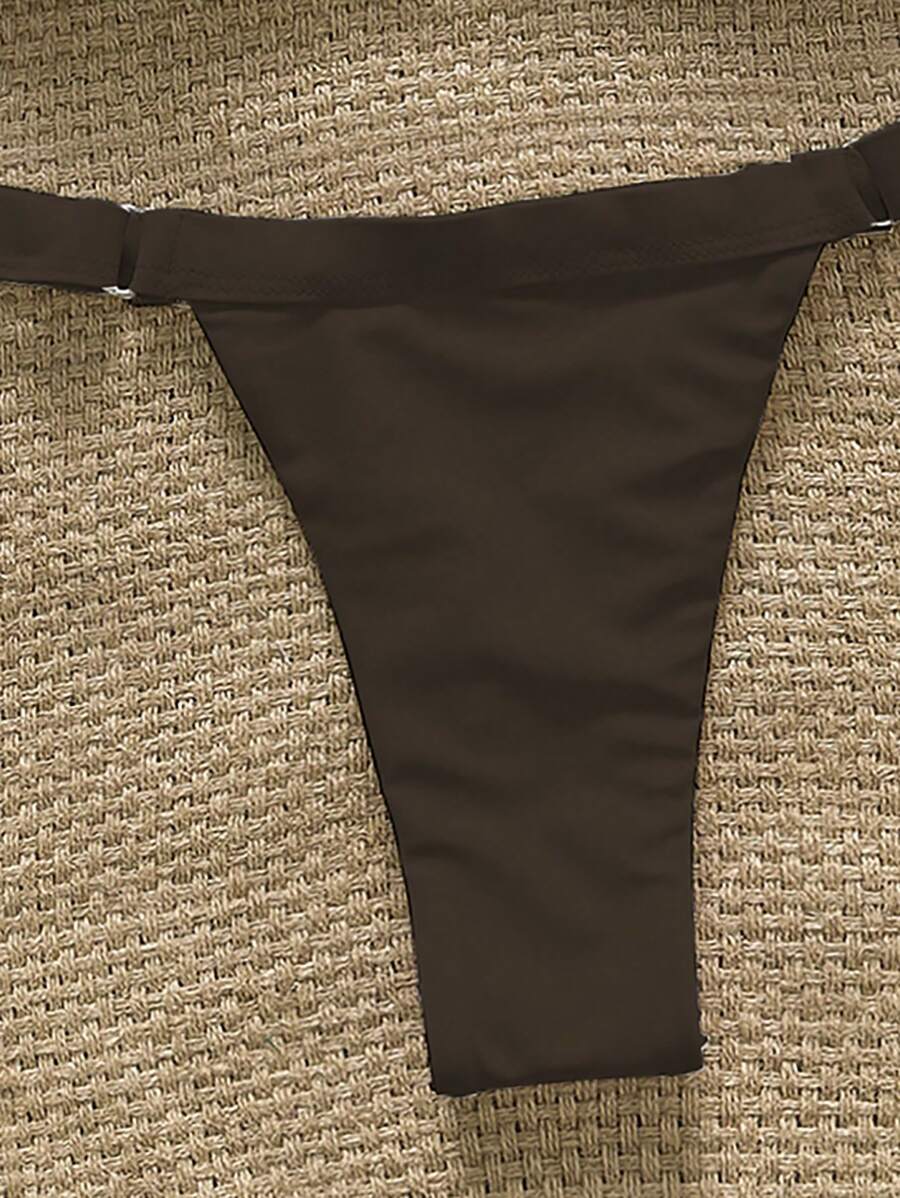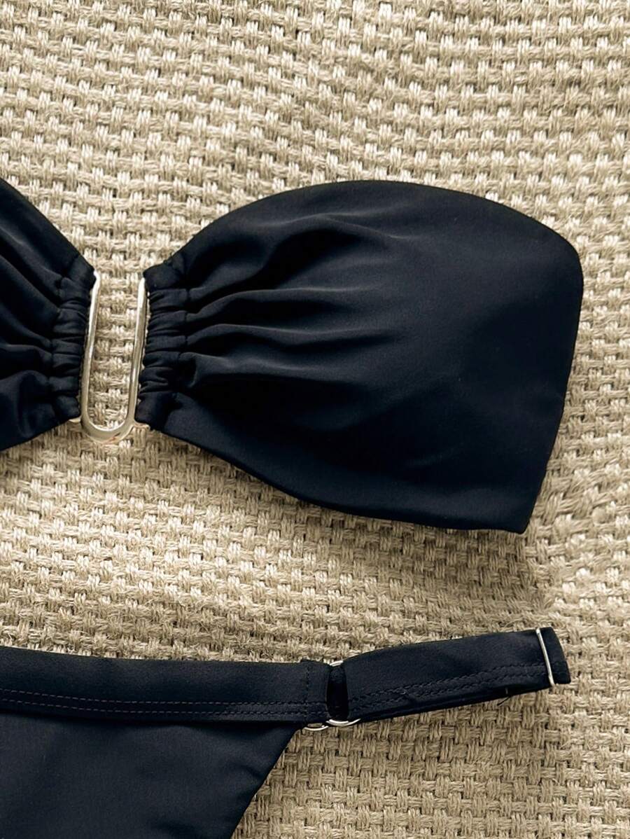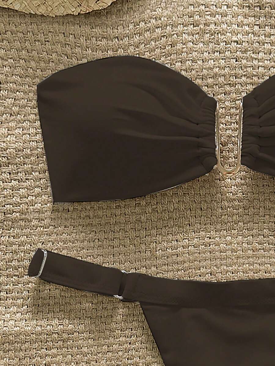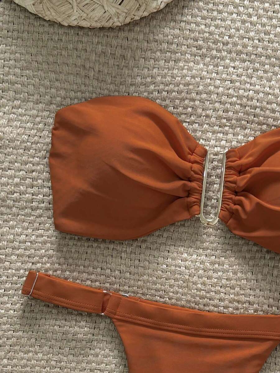 Conjunto de bikini sexy con estampado aleatorio y decoracion metalica – Muy Bonita