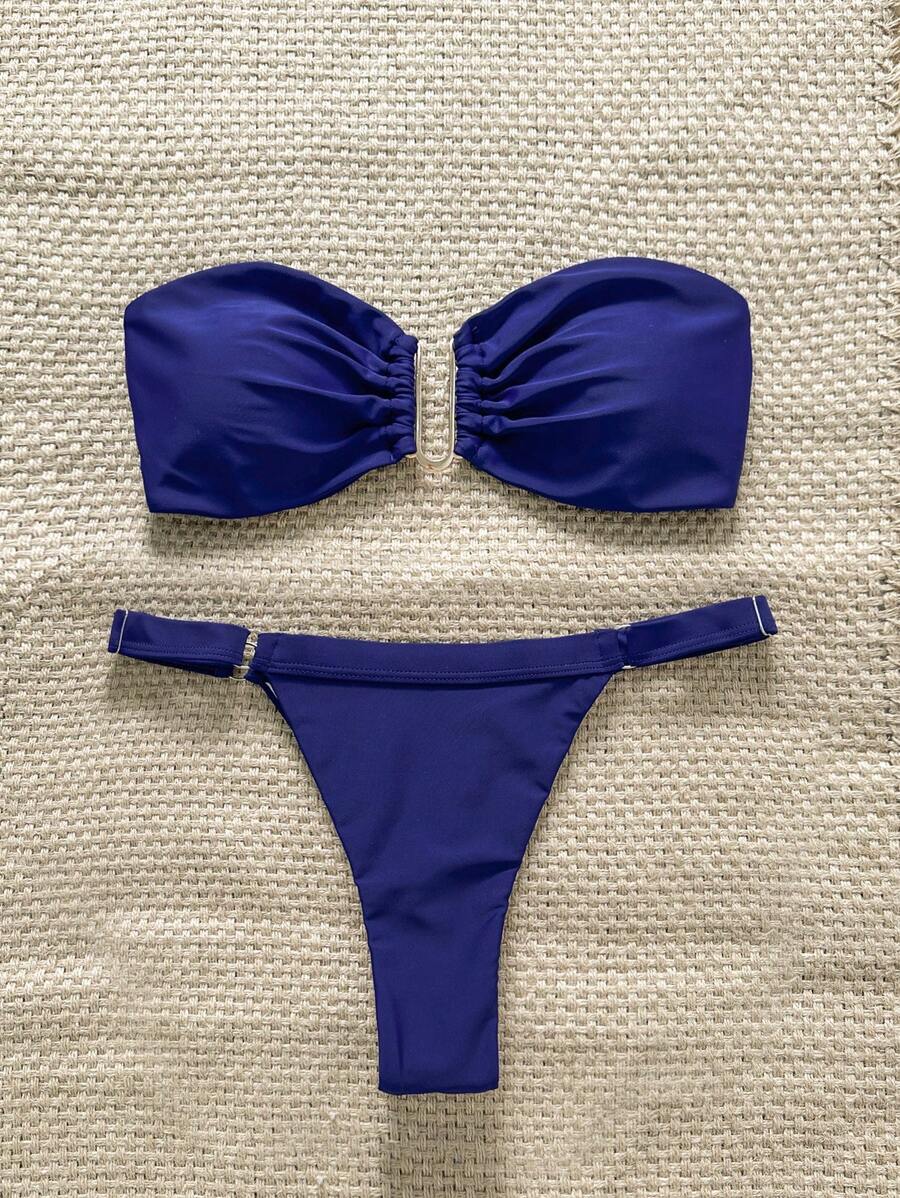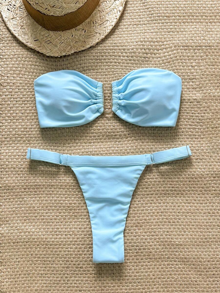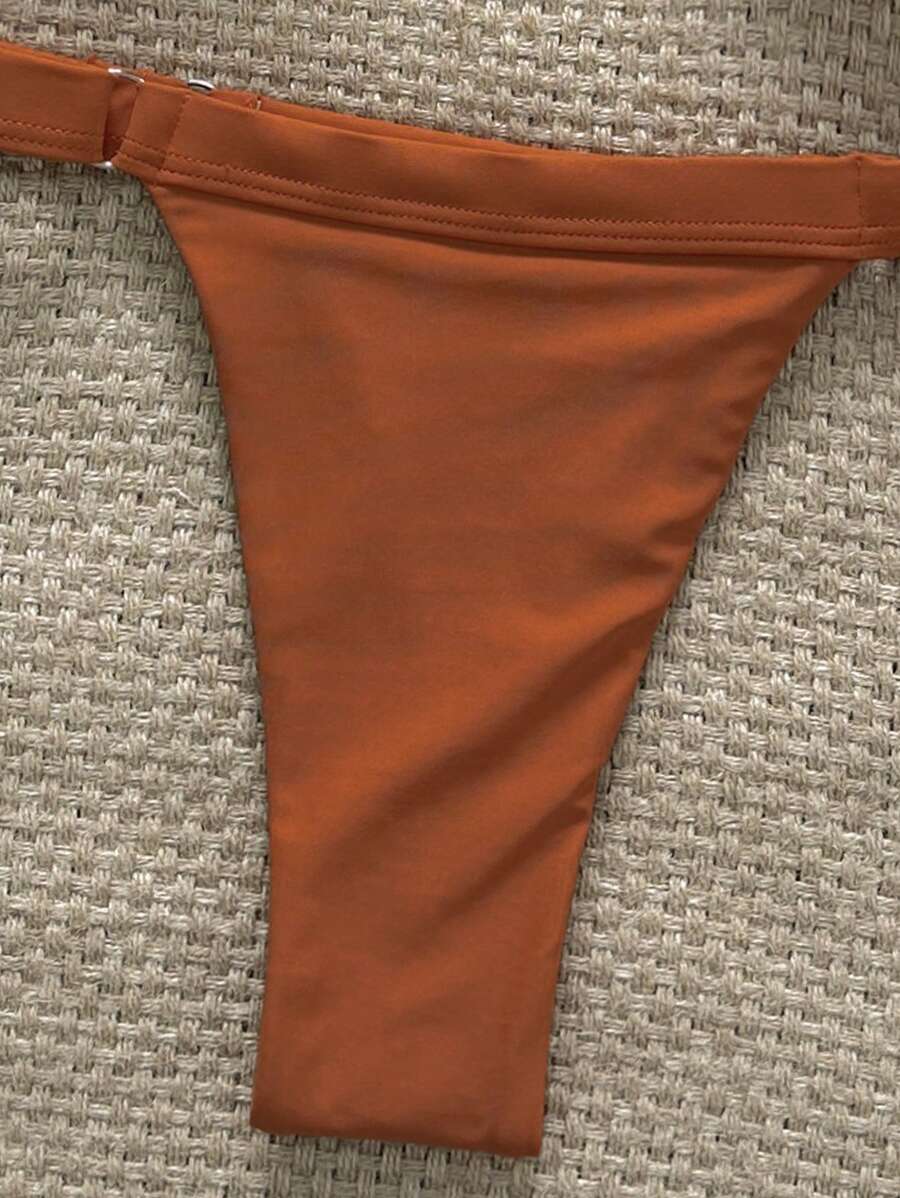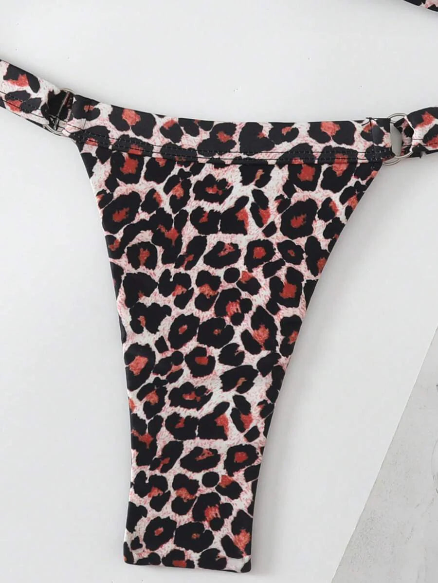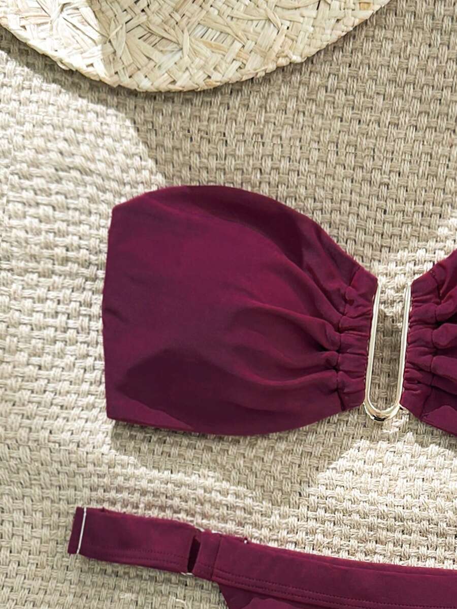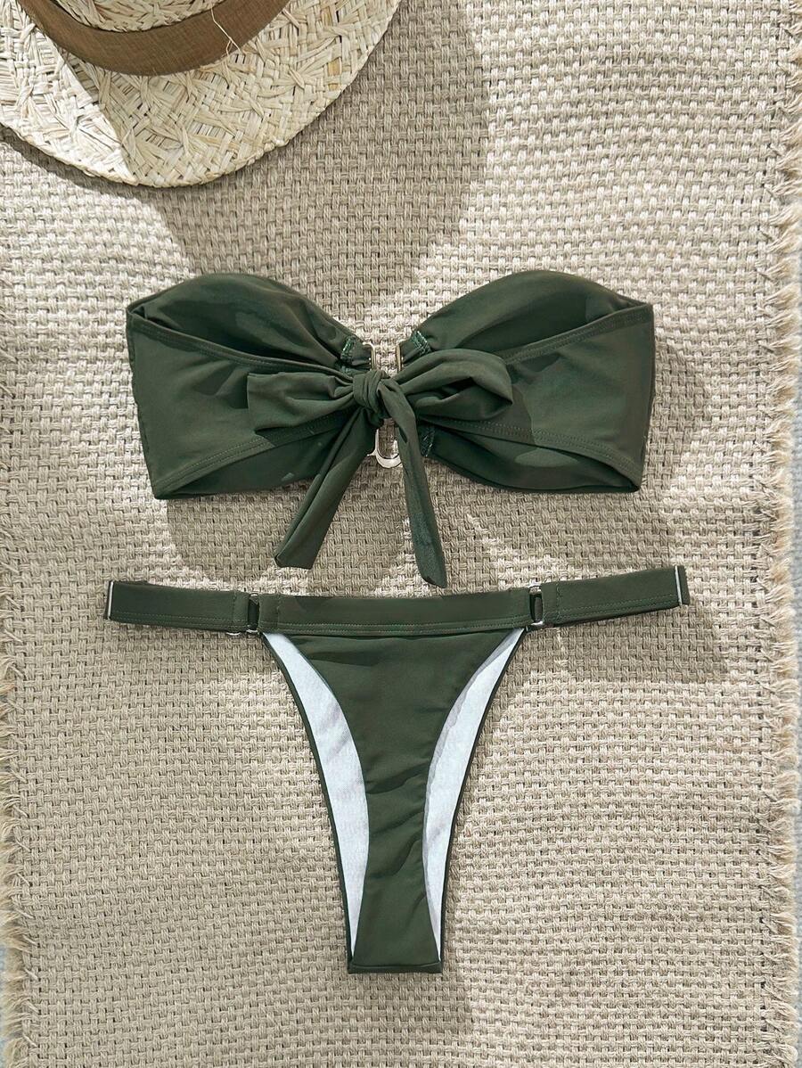 Conjunto de bikini sexy con estampado aleatorio y decoracion metalica – Muy Bonita