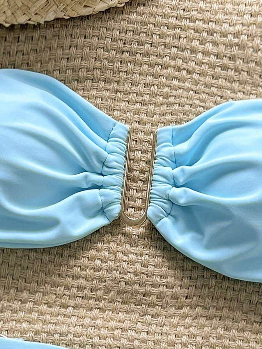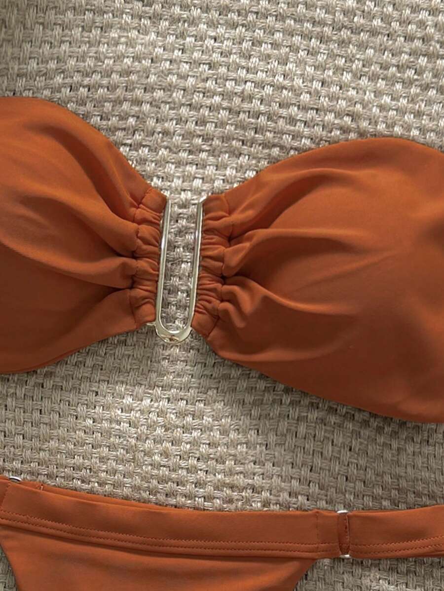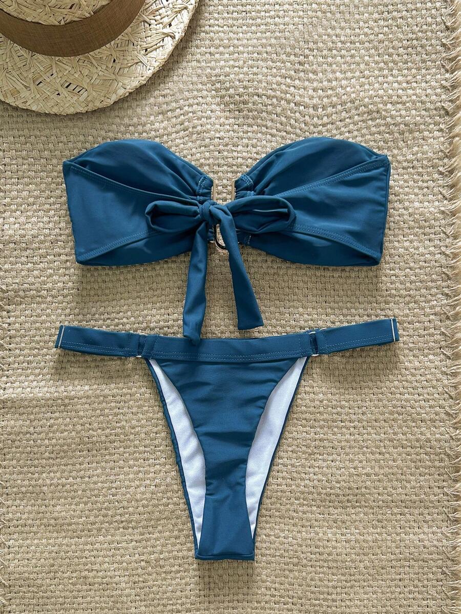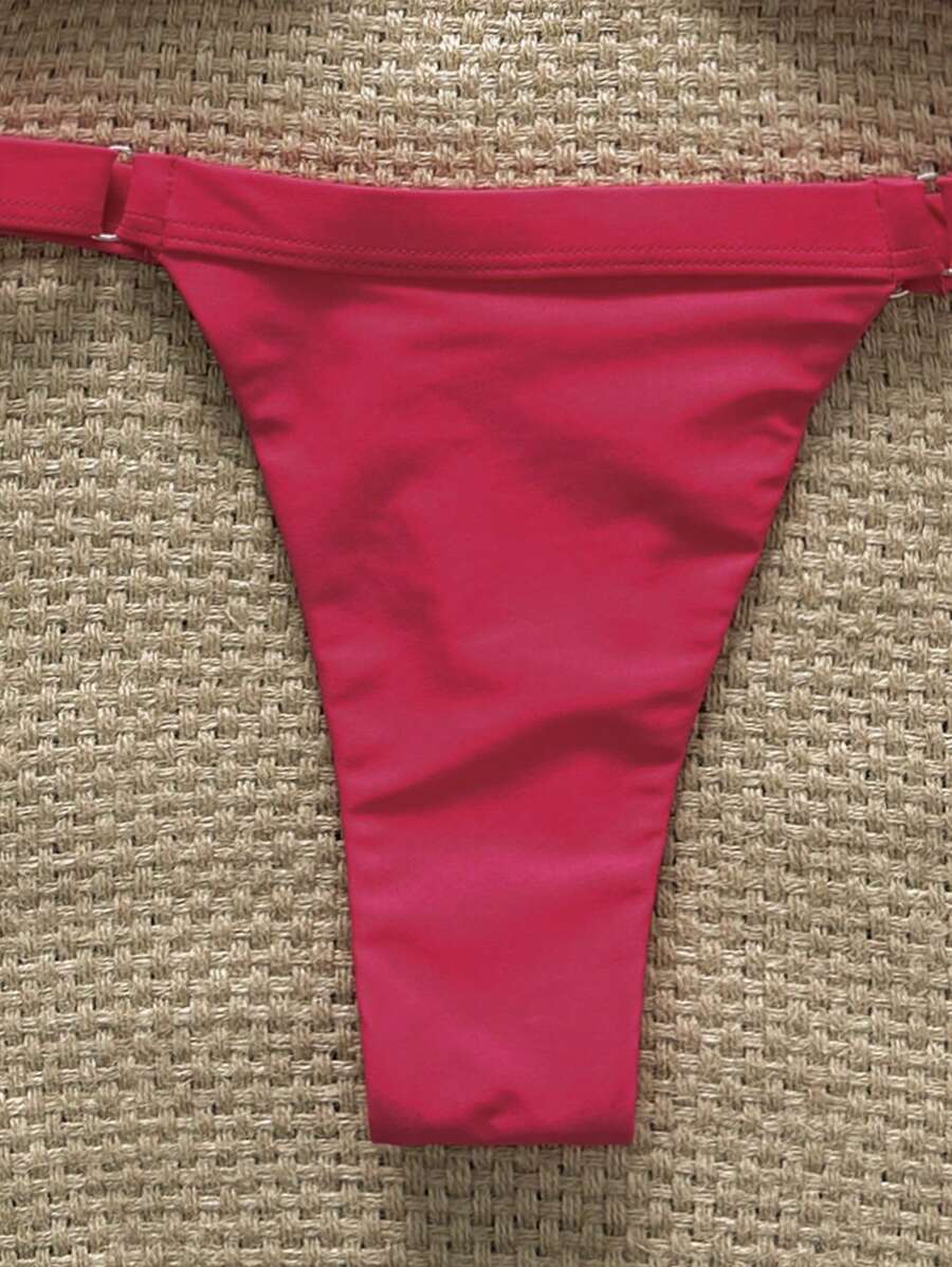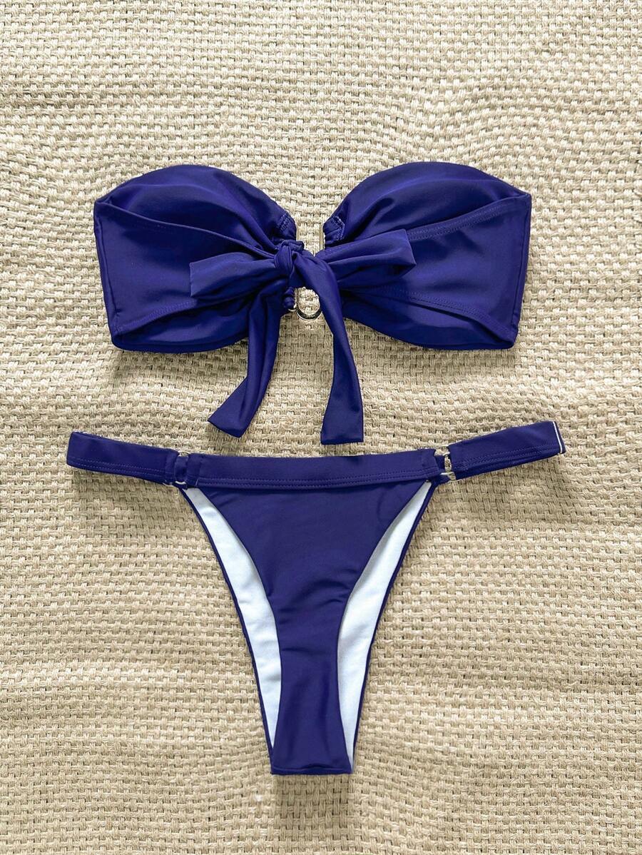 Conjunto de bikini sexy con estampado aleatorio y decoracion metalica – Muy Bonita