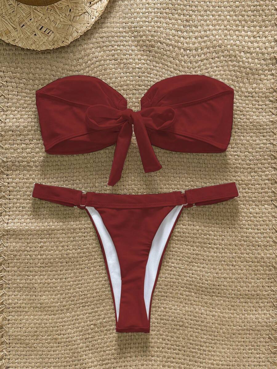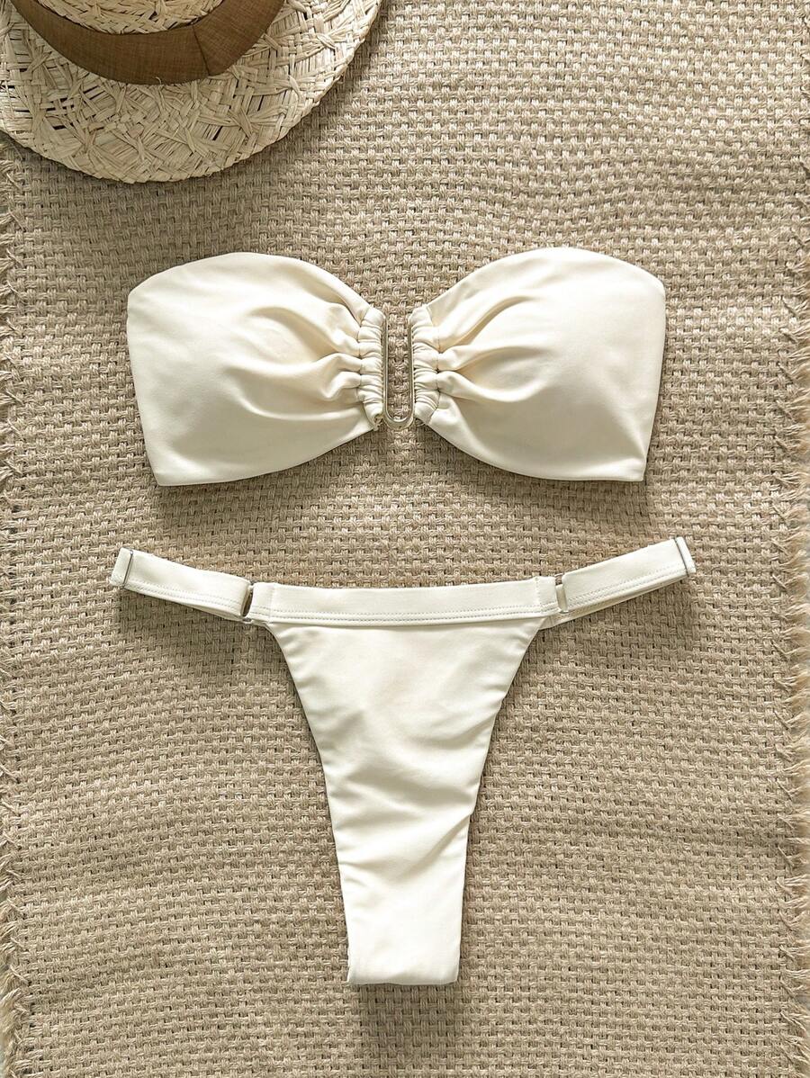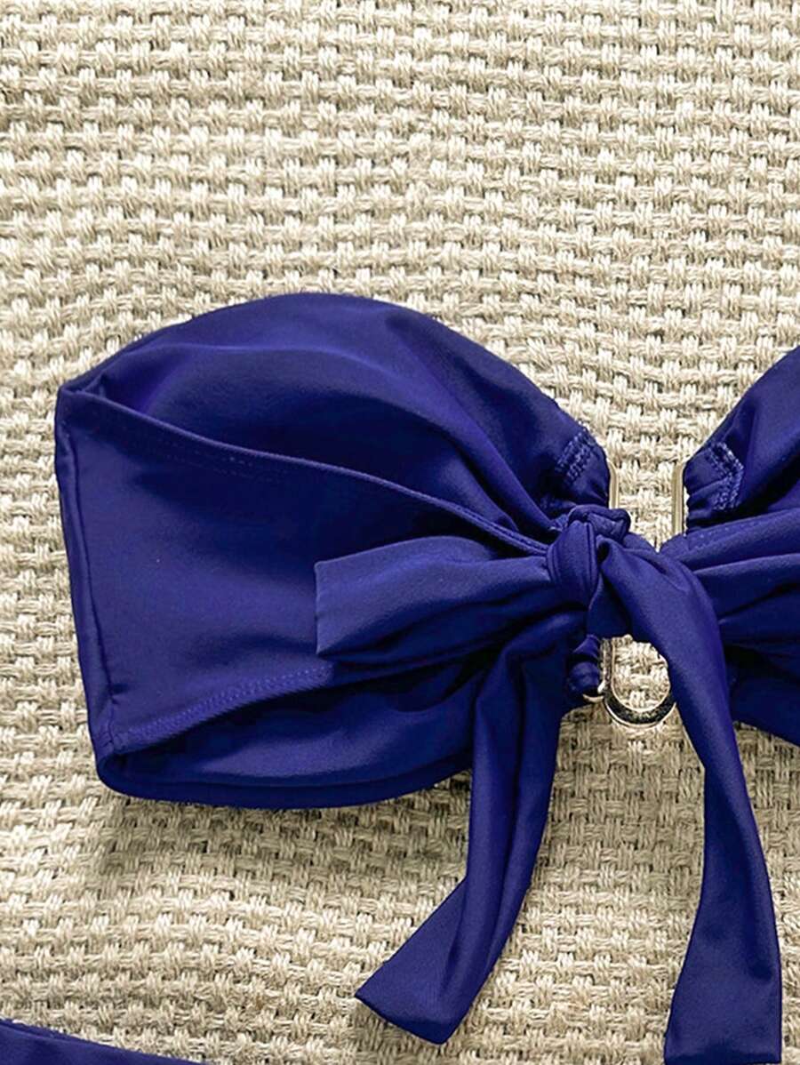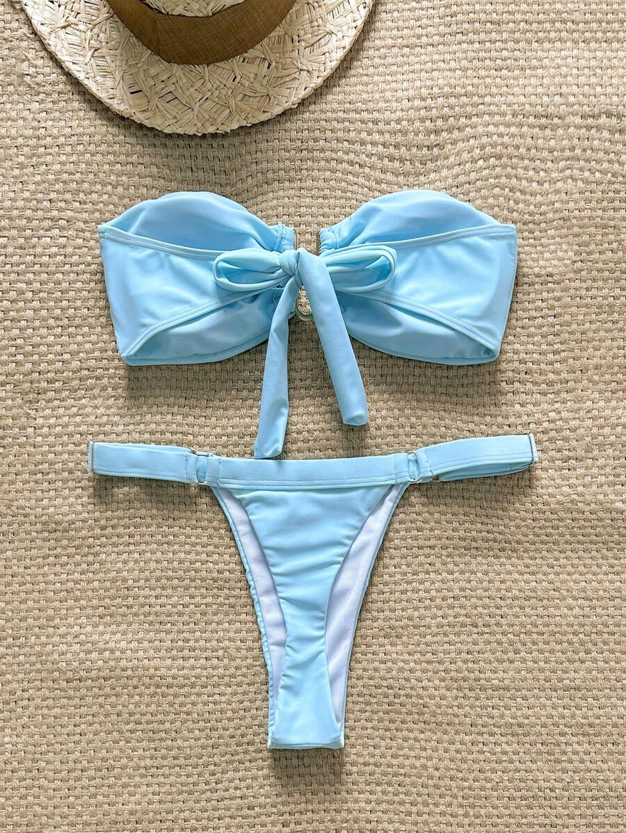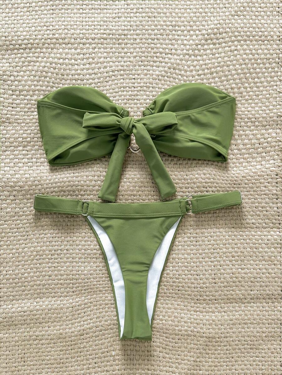 Conjunto de bikini sexy con estampado aleatorio y decoracion metalica – Muy Bonita