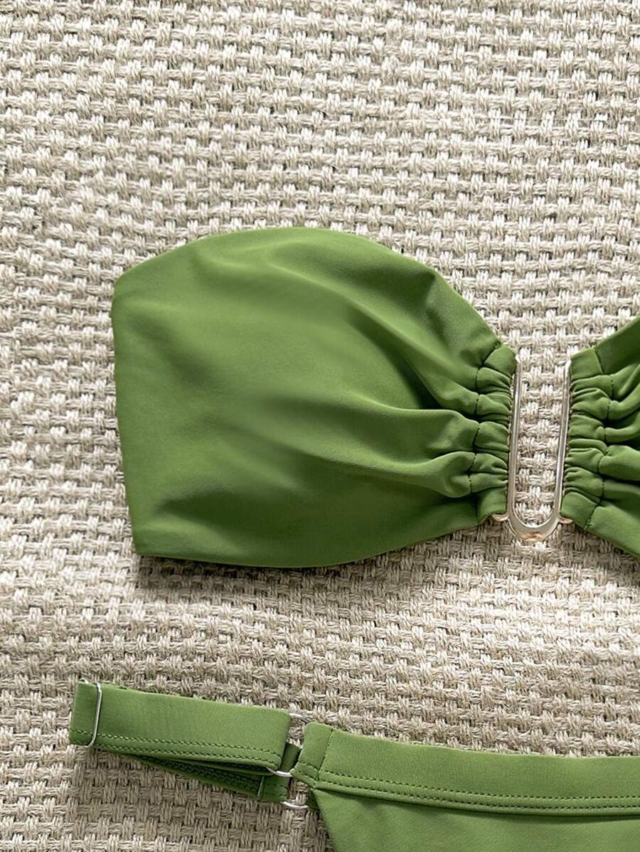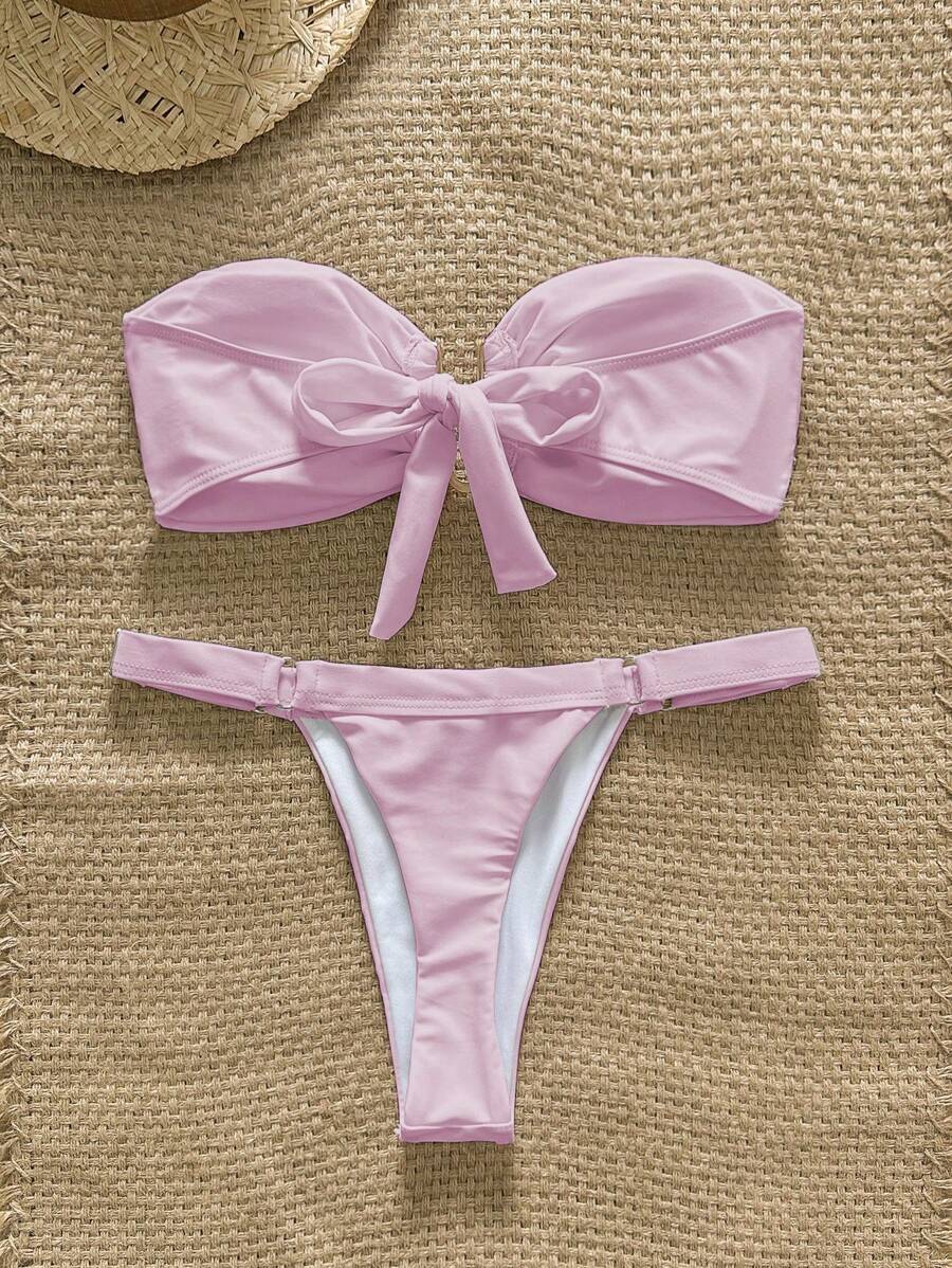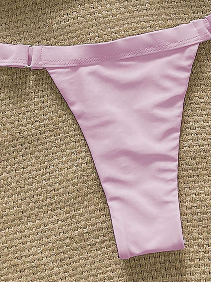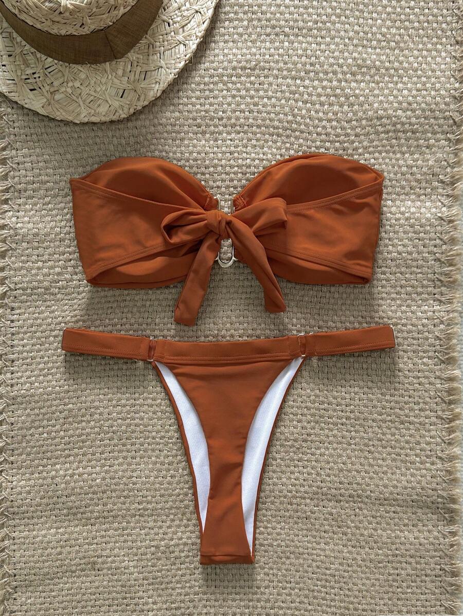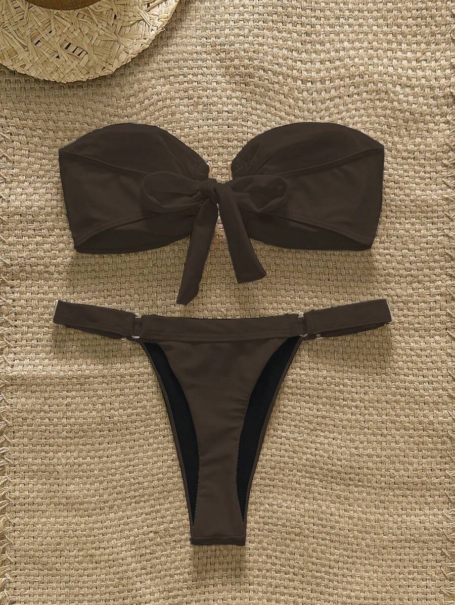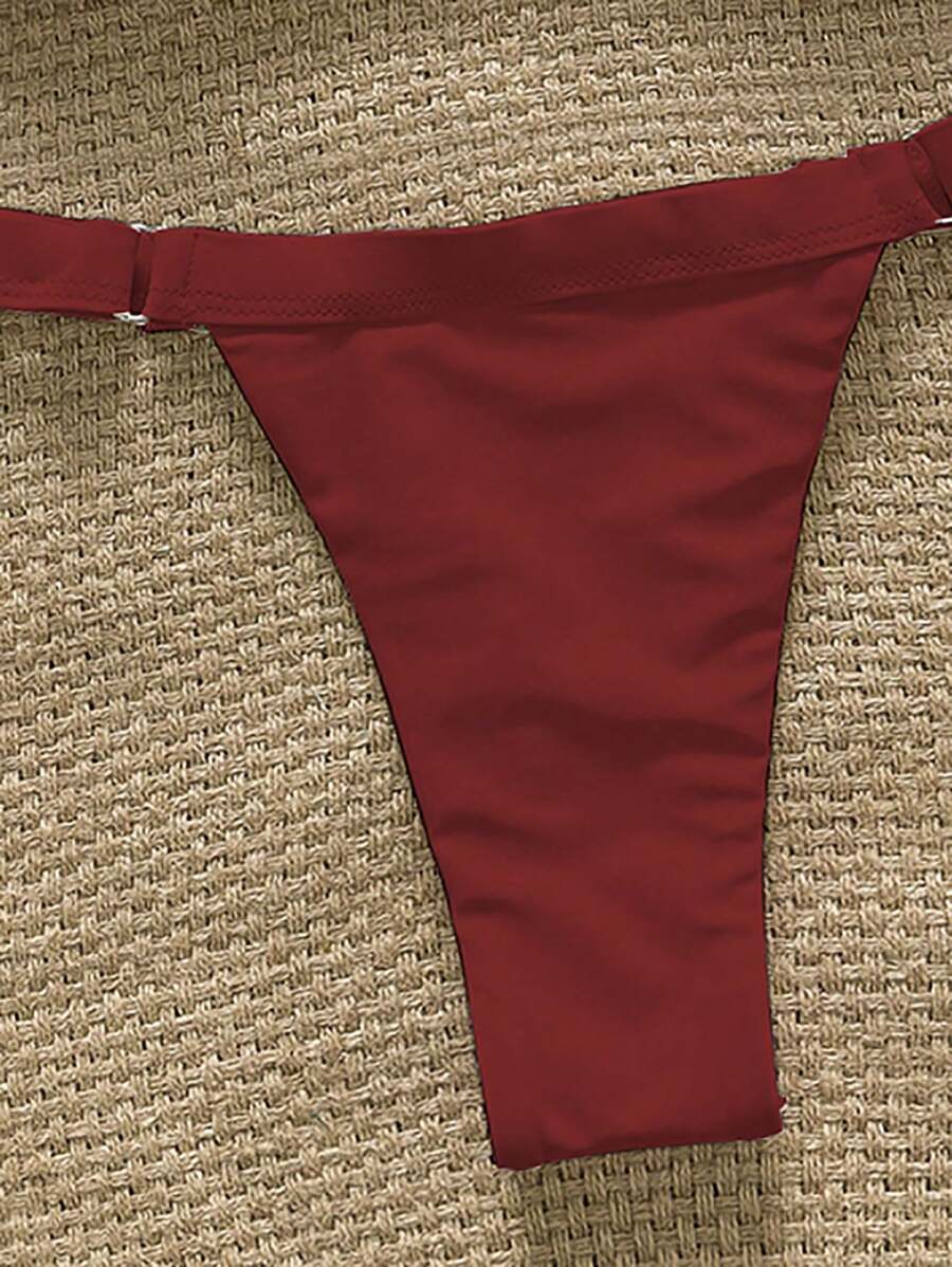 Conjunto de bikini sexy con estampado aleatorio y decoracion metalica – Muy Bonita