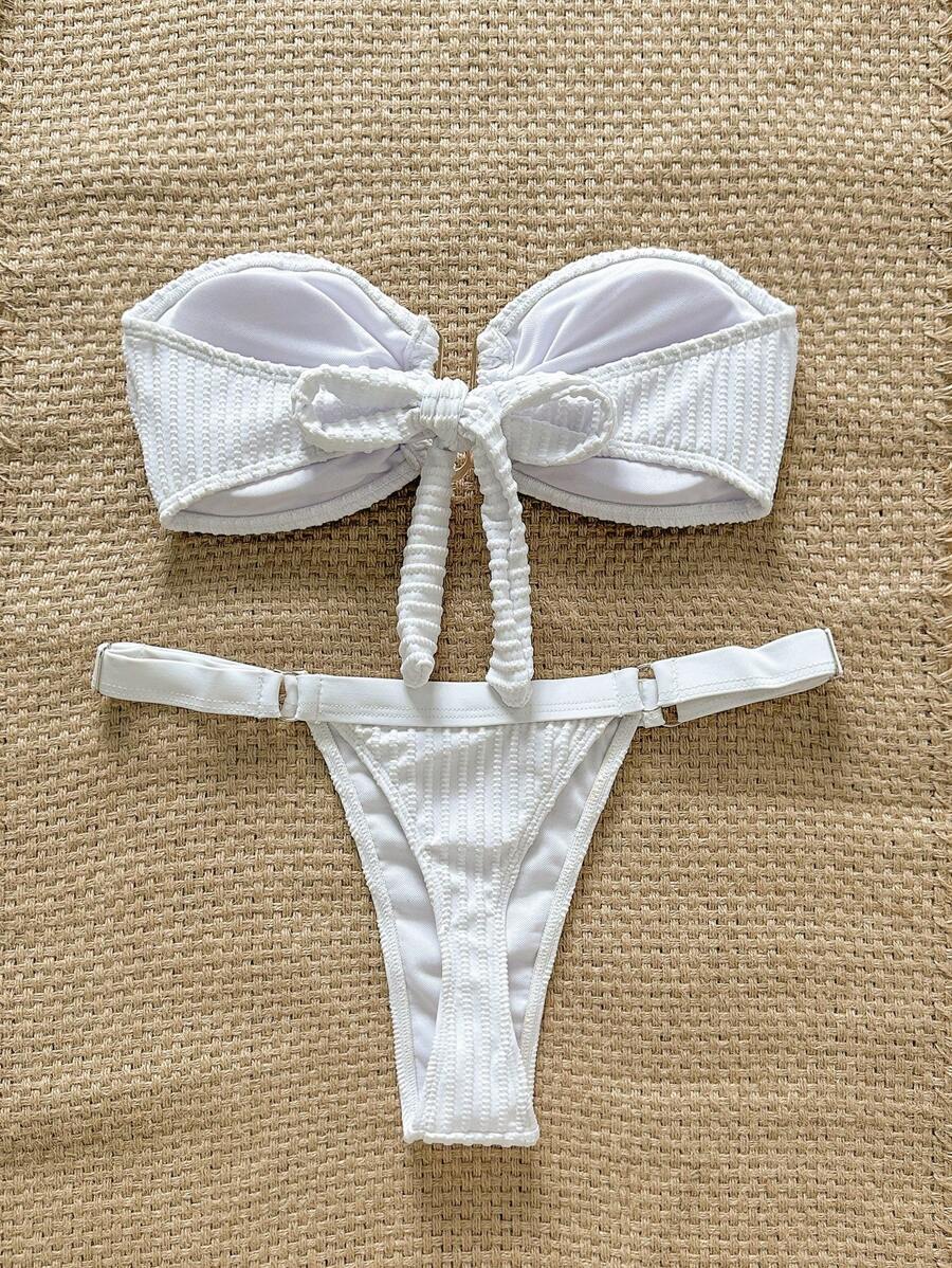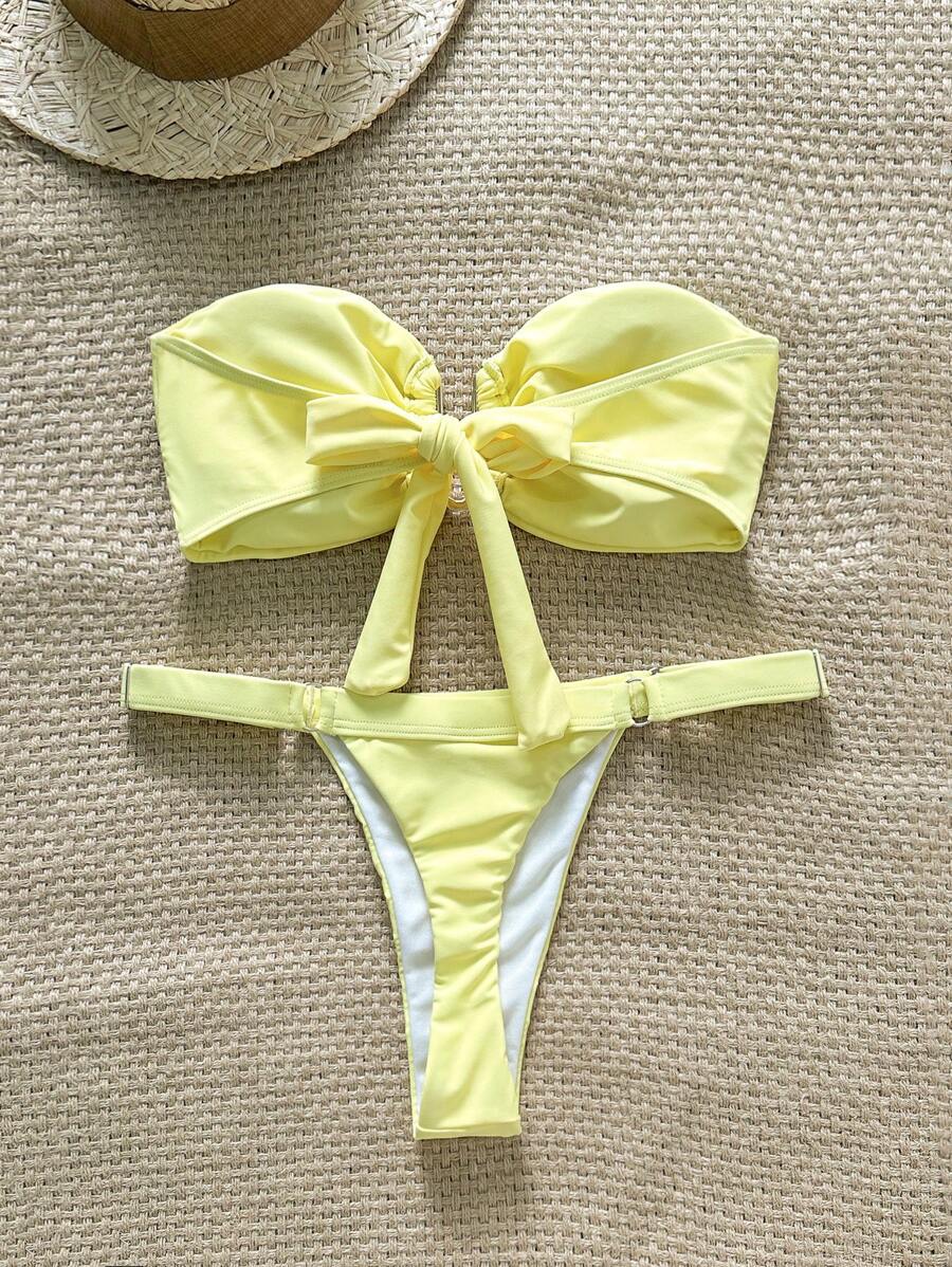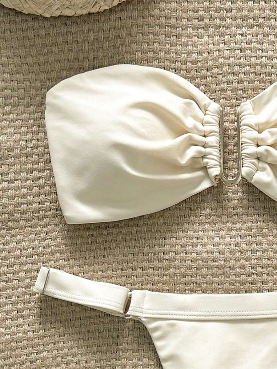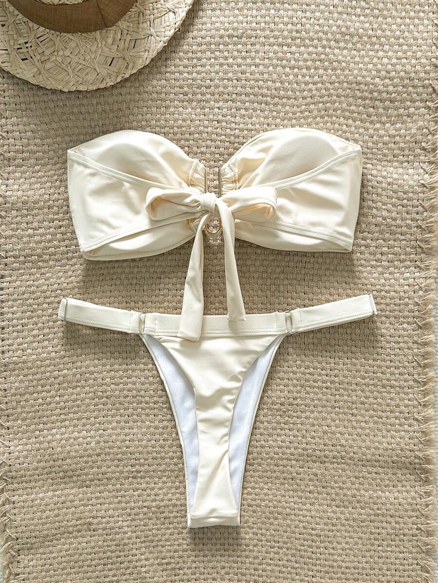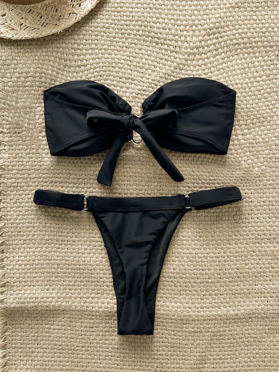 Conjunto de bikini sexy con estampado aleatorio y decoracion metalica – Muy Bonita