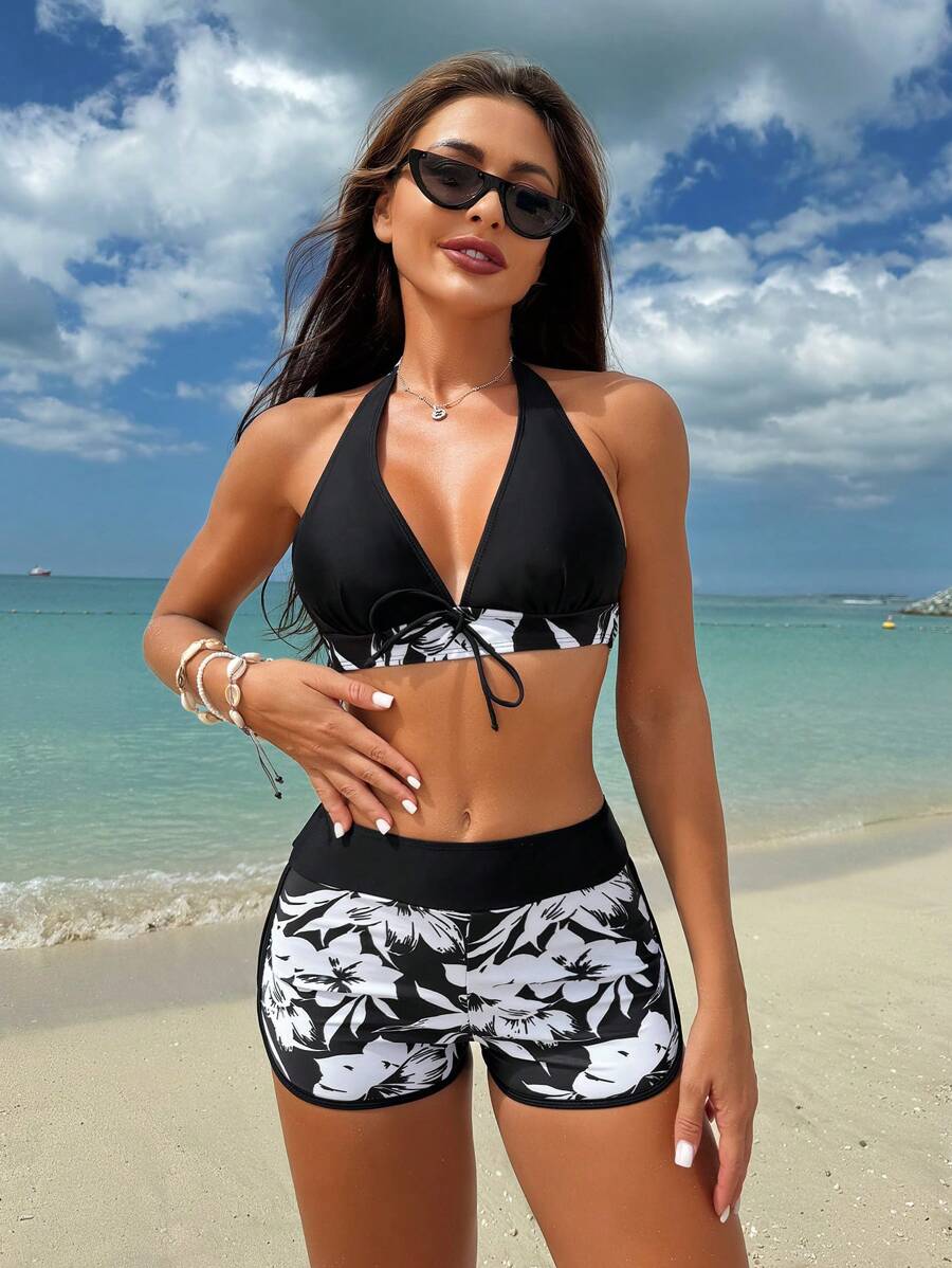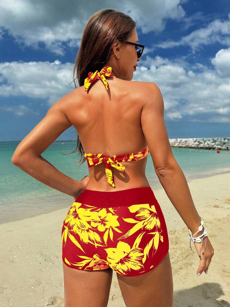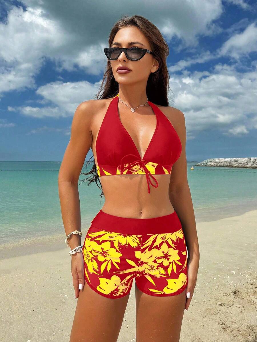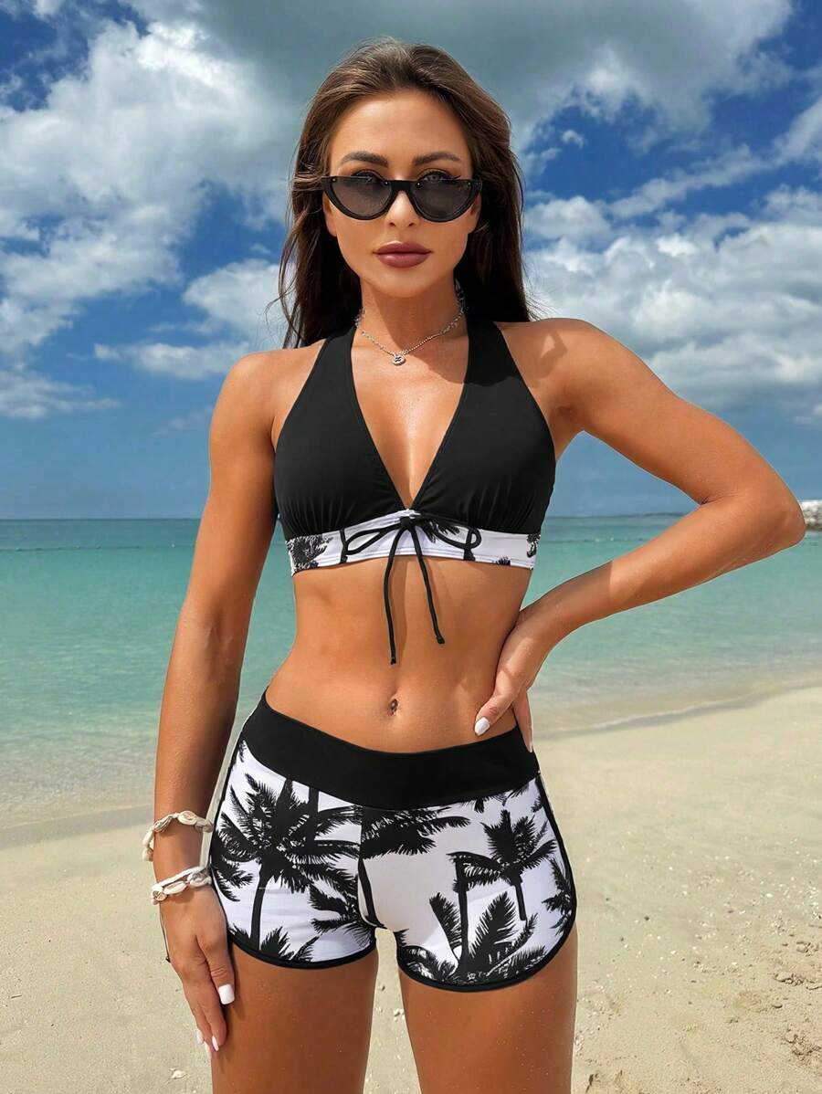 Lushoire conjunto de traje de bano para vacaciones en la playa de mujer, con estampado aleatorio (derechos de autor adquiridos)