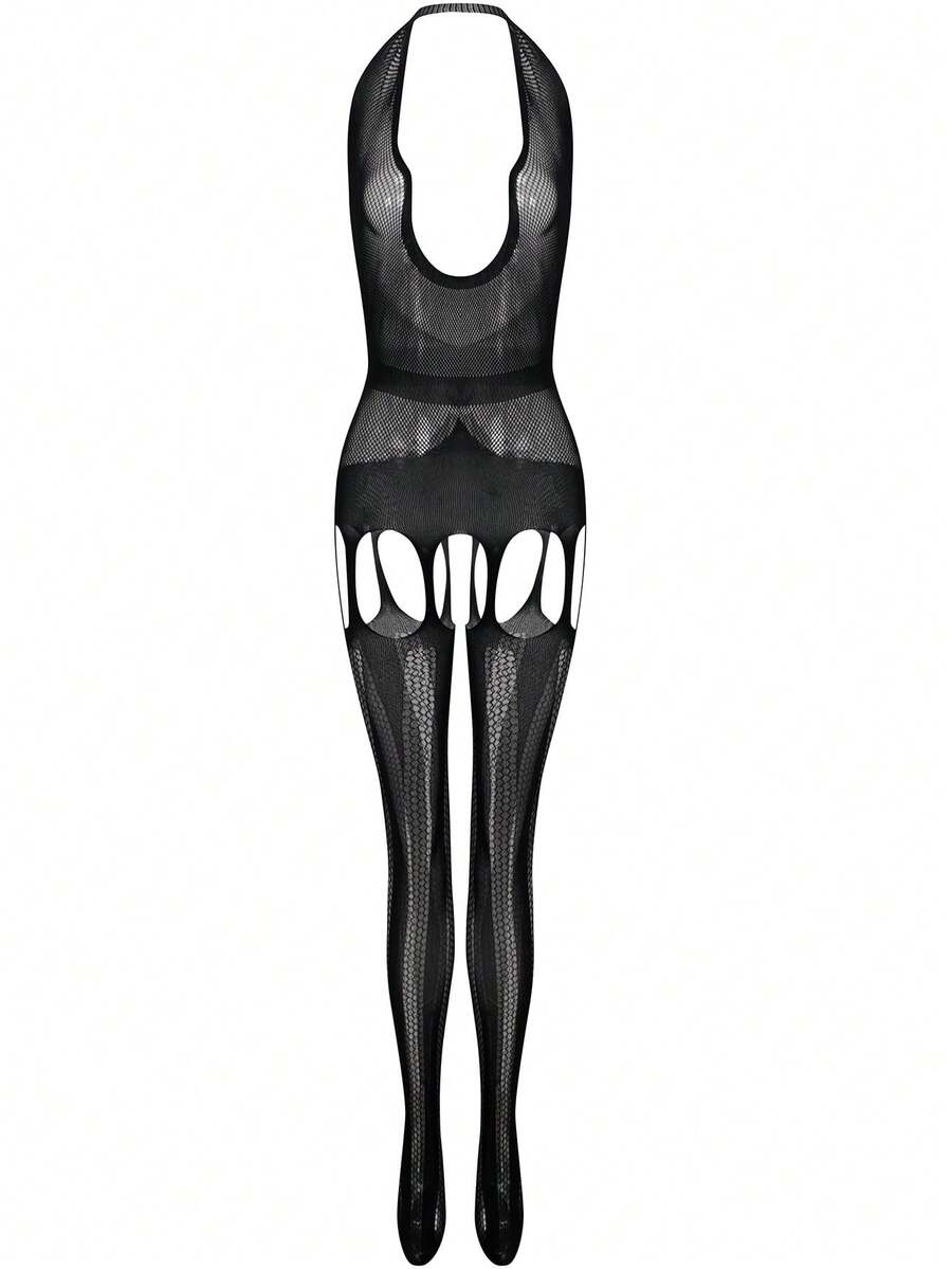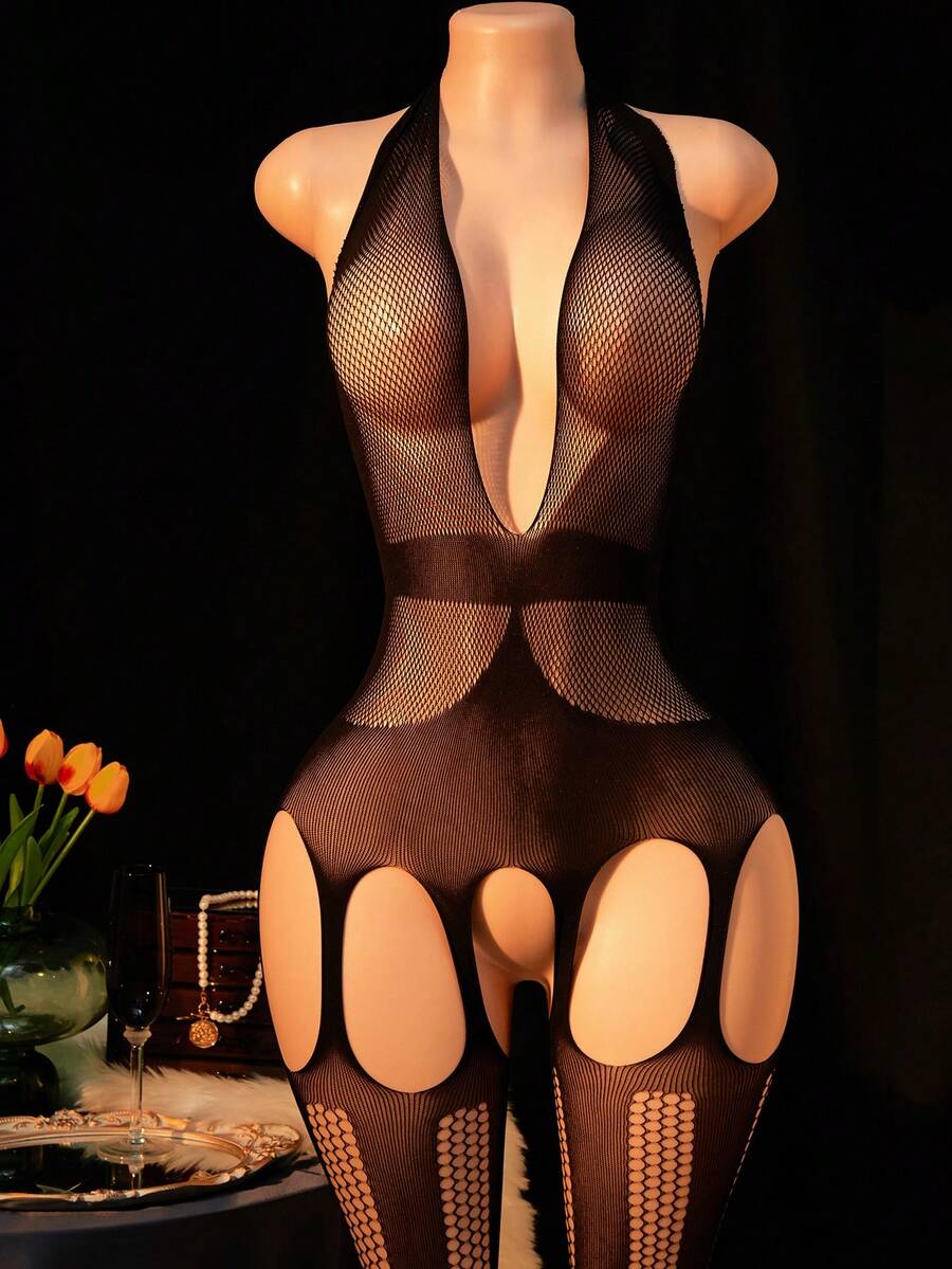 1 pieza lenceria sexy de talla grande para mujer bodystocking de red, halter sin espalda escote profundo, bodyduit de entrepierna abierta, transparente calado, bikini cubrir, adecuado para fiesta nocturna, dia de san valentin