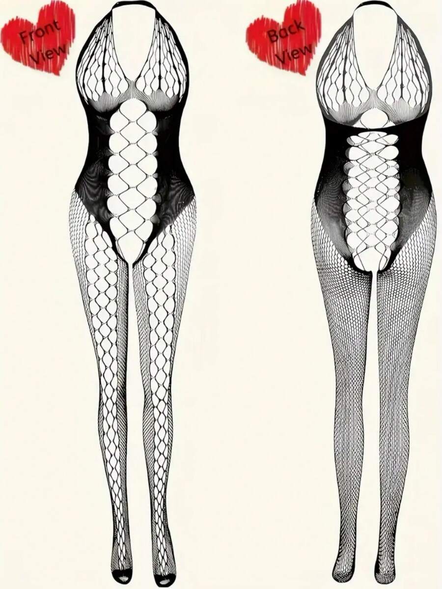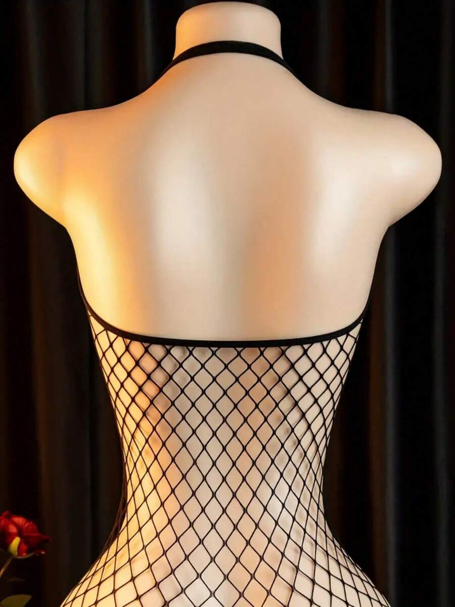 Body de red sexy con abertura en la entrepierna - diseno elegante calado, alta elasticidad, lavado a mano, lenceria de mujer tipo medias para noches intimas