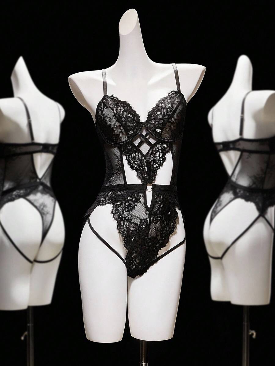 1 pieza body sexy con encaje y aros para mujer – Muy Bonita