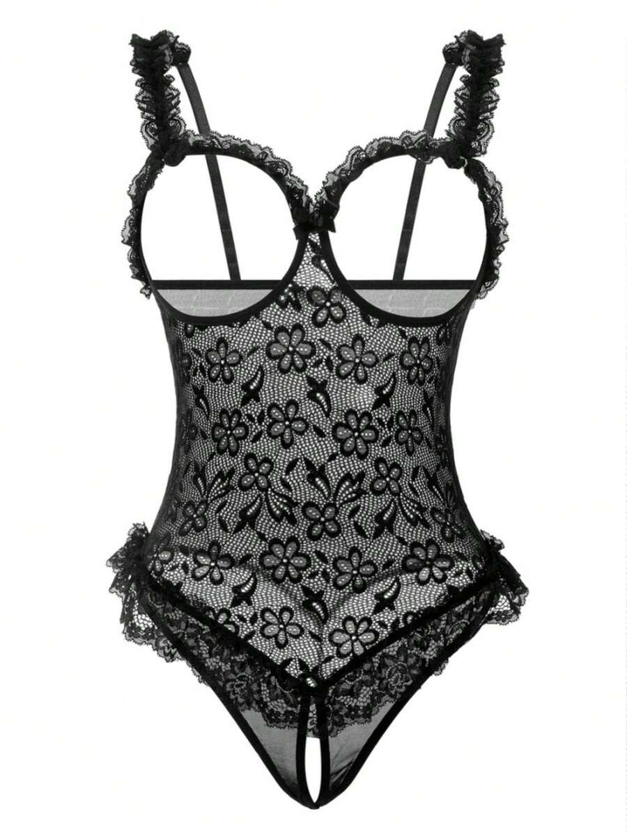 Lenceria de bodystocking transparente con encaje, sin entrepierna – Muy Bonita