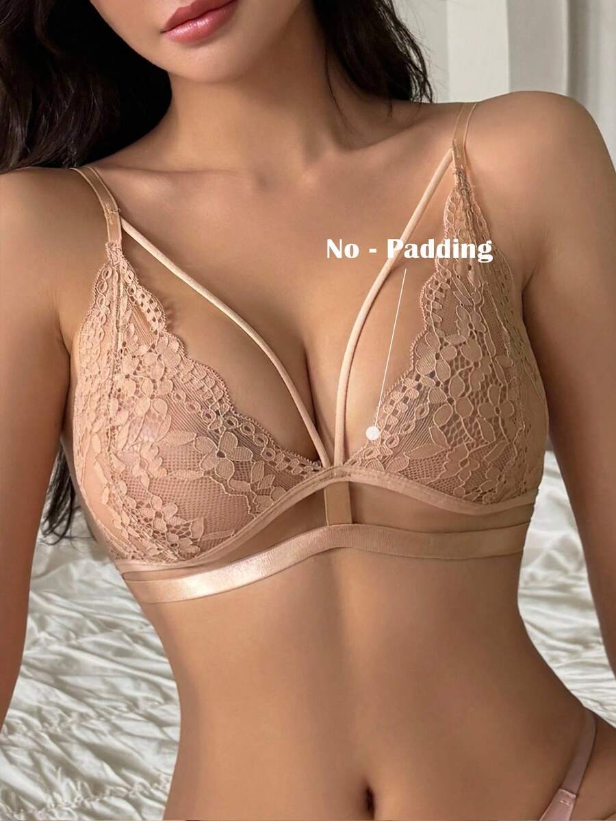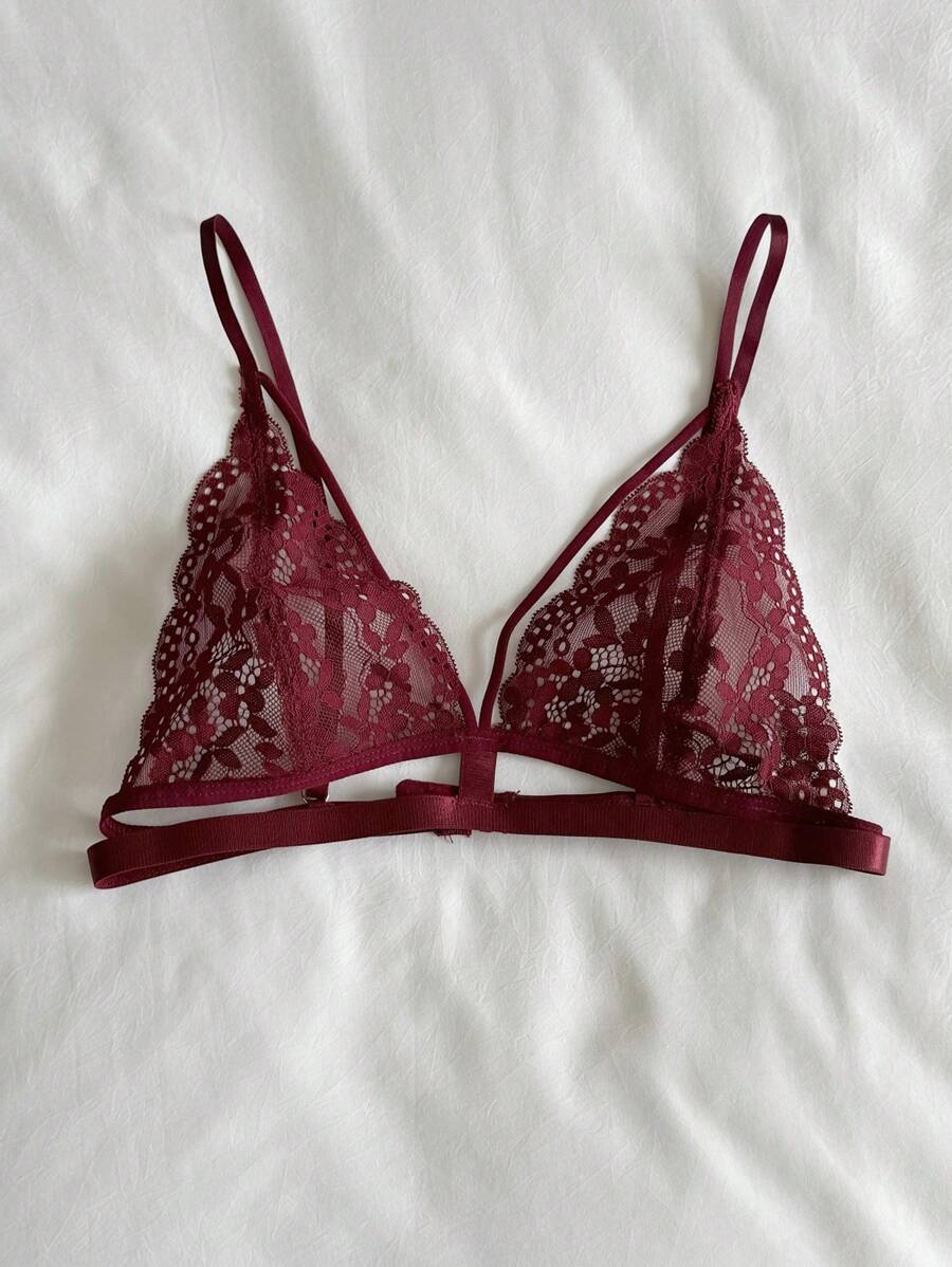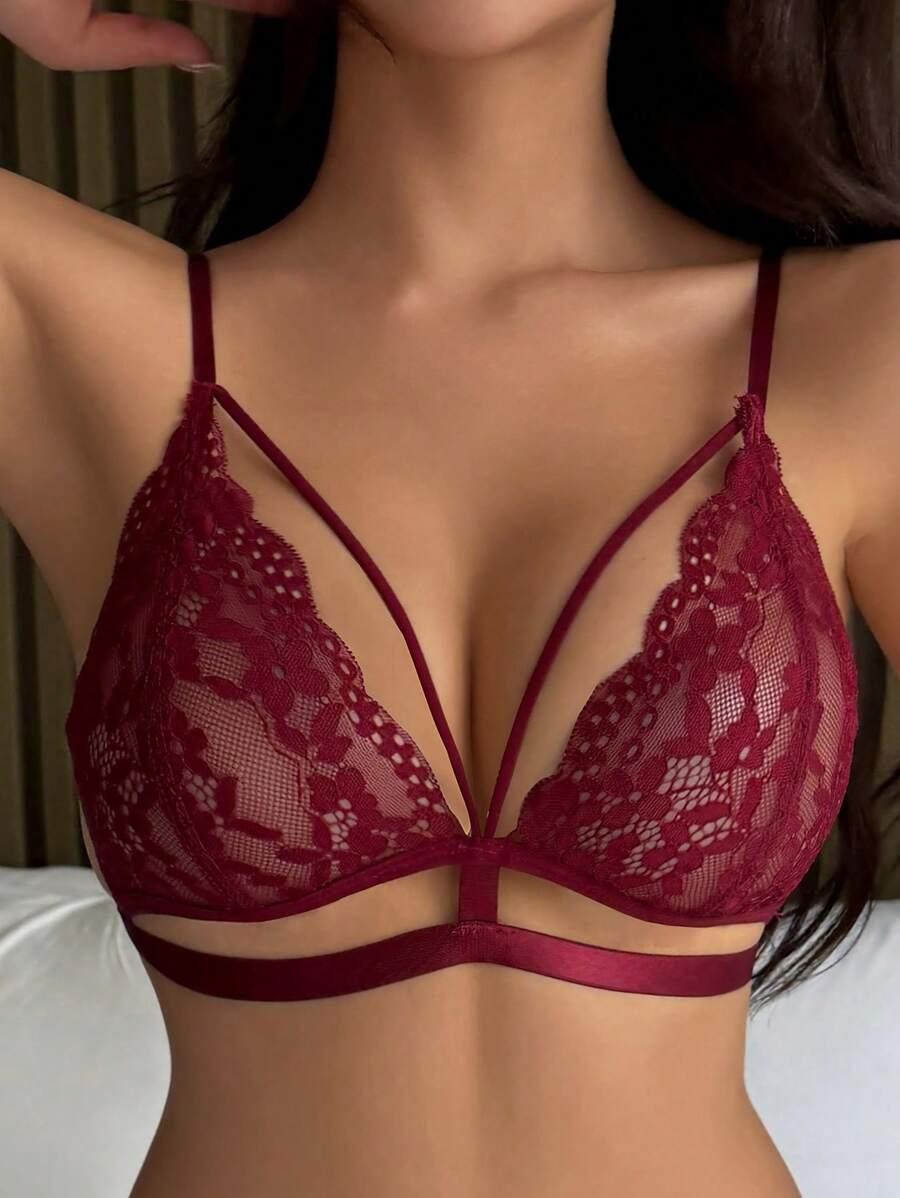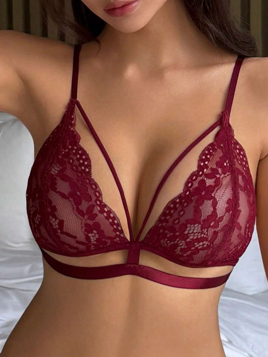Brasier sexy sin acolchado con diseno de triangulo, tirantes de espagueti y encaje transparente
