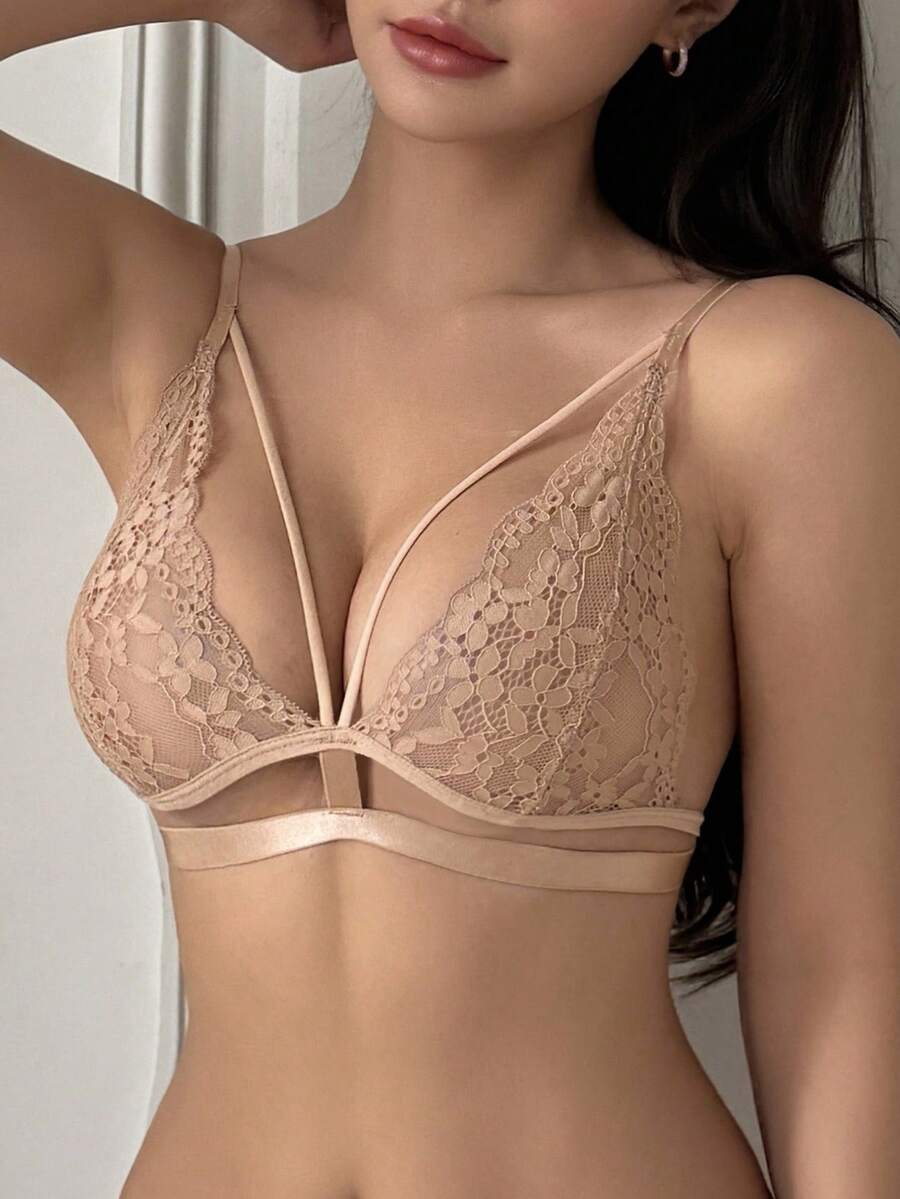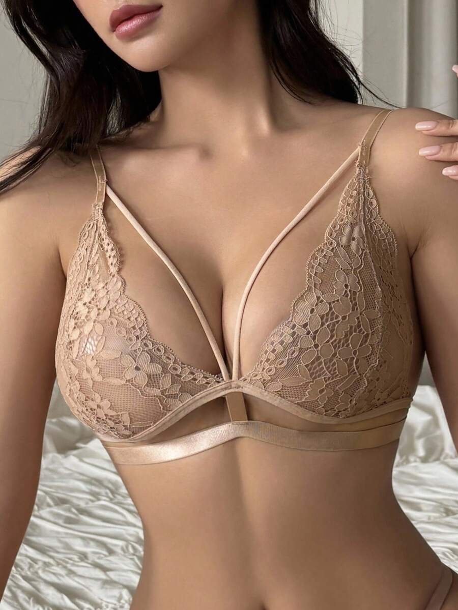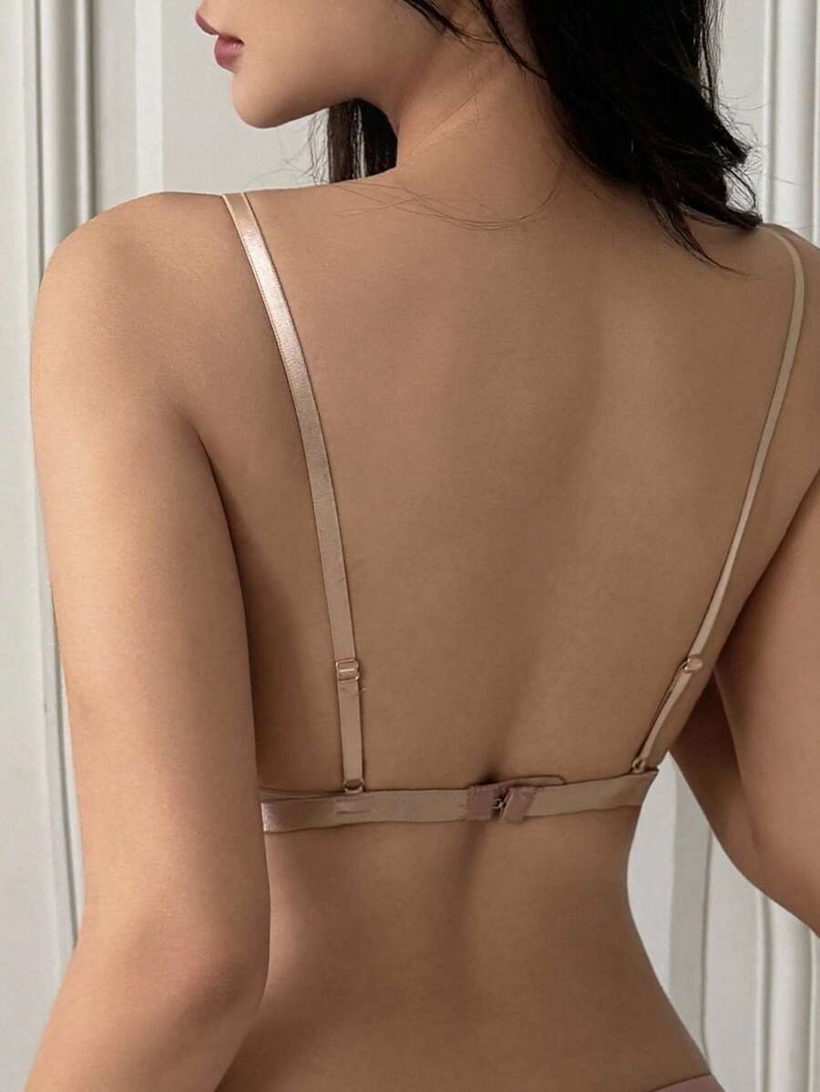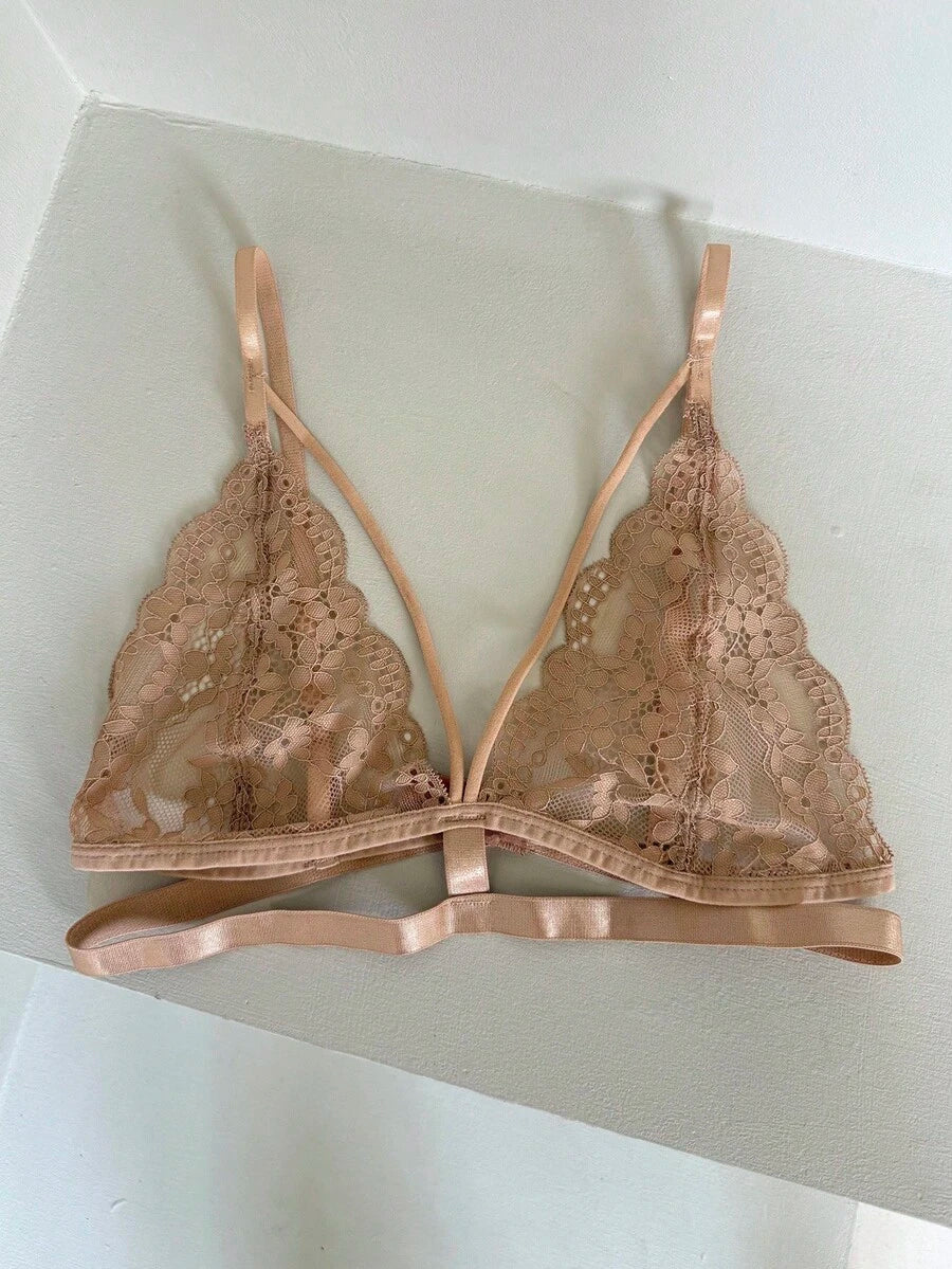 Brasier sexy sin acolchado con diseno de triangulo, tirantes de espagueti y encaje transparente