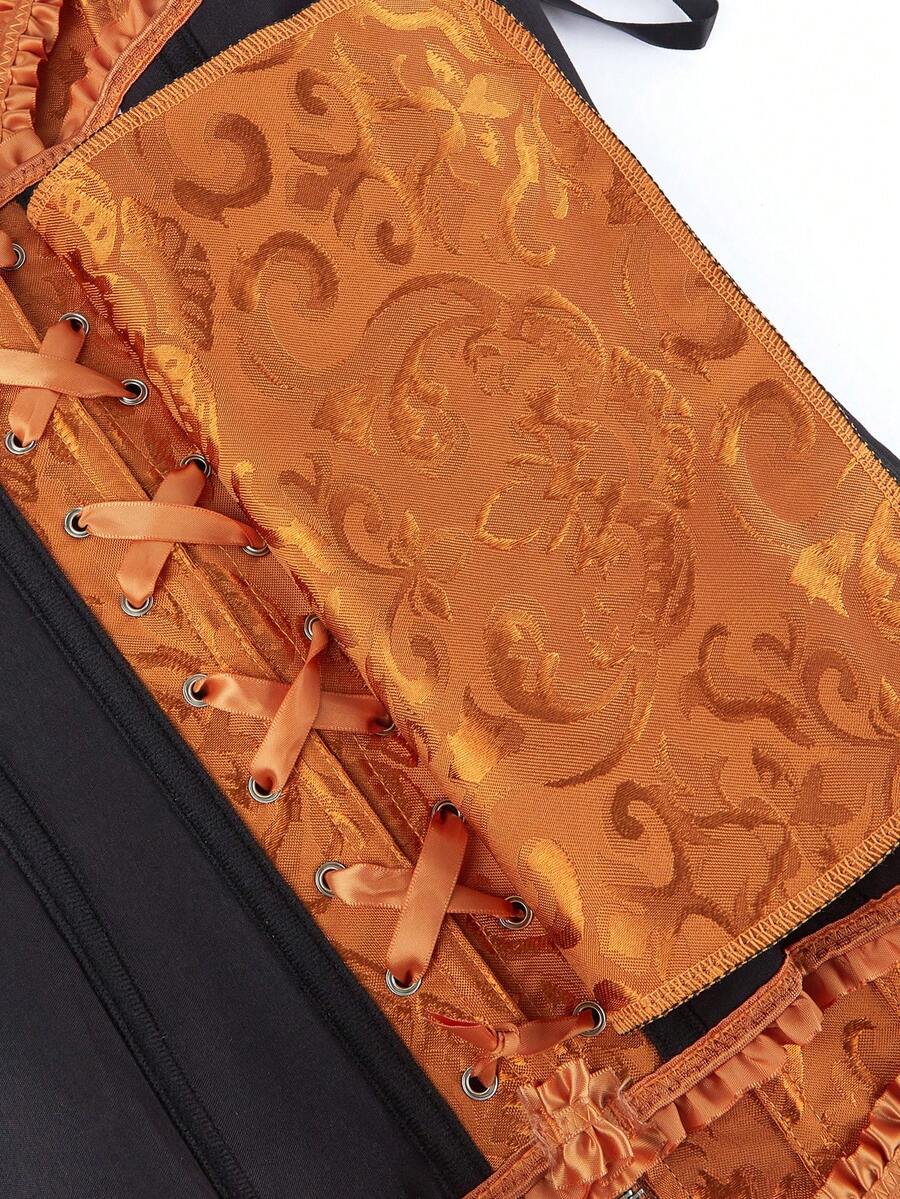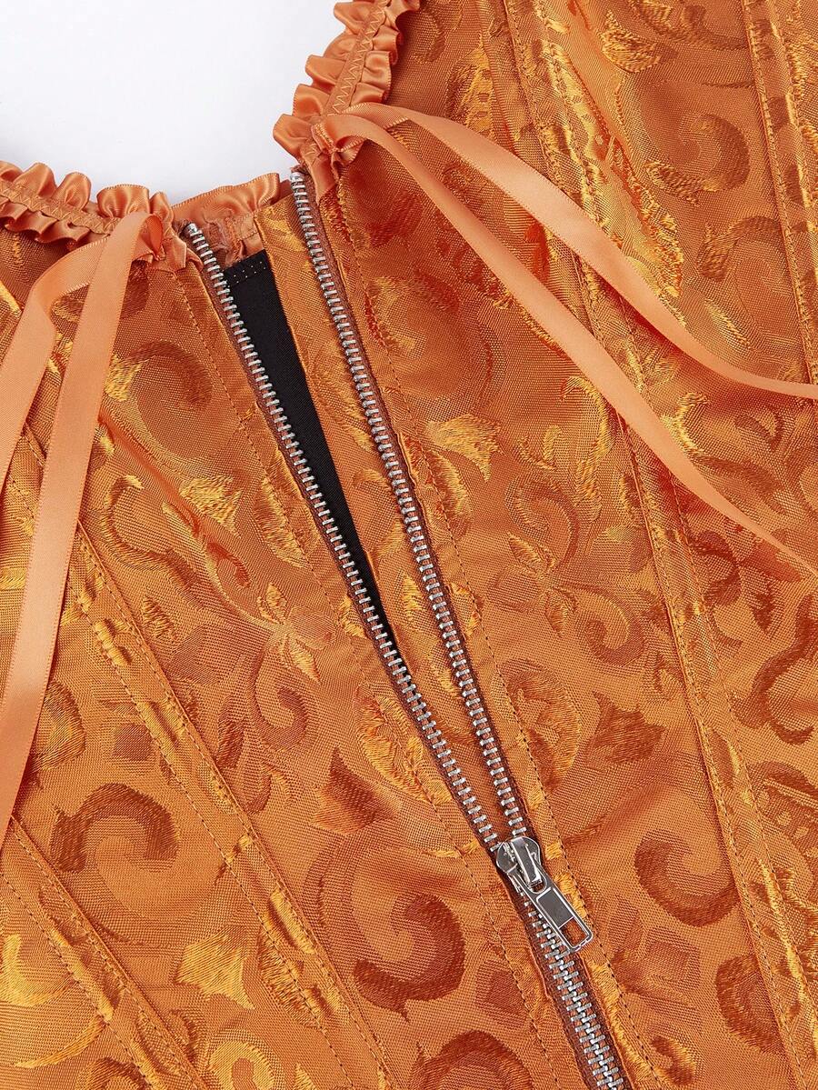 Detalles: Corse, Cordon de espalda, Cremallera, Ojales, Damasco, Con Varillas