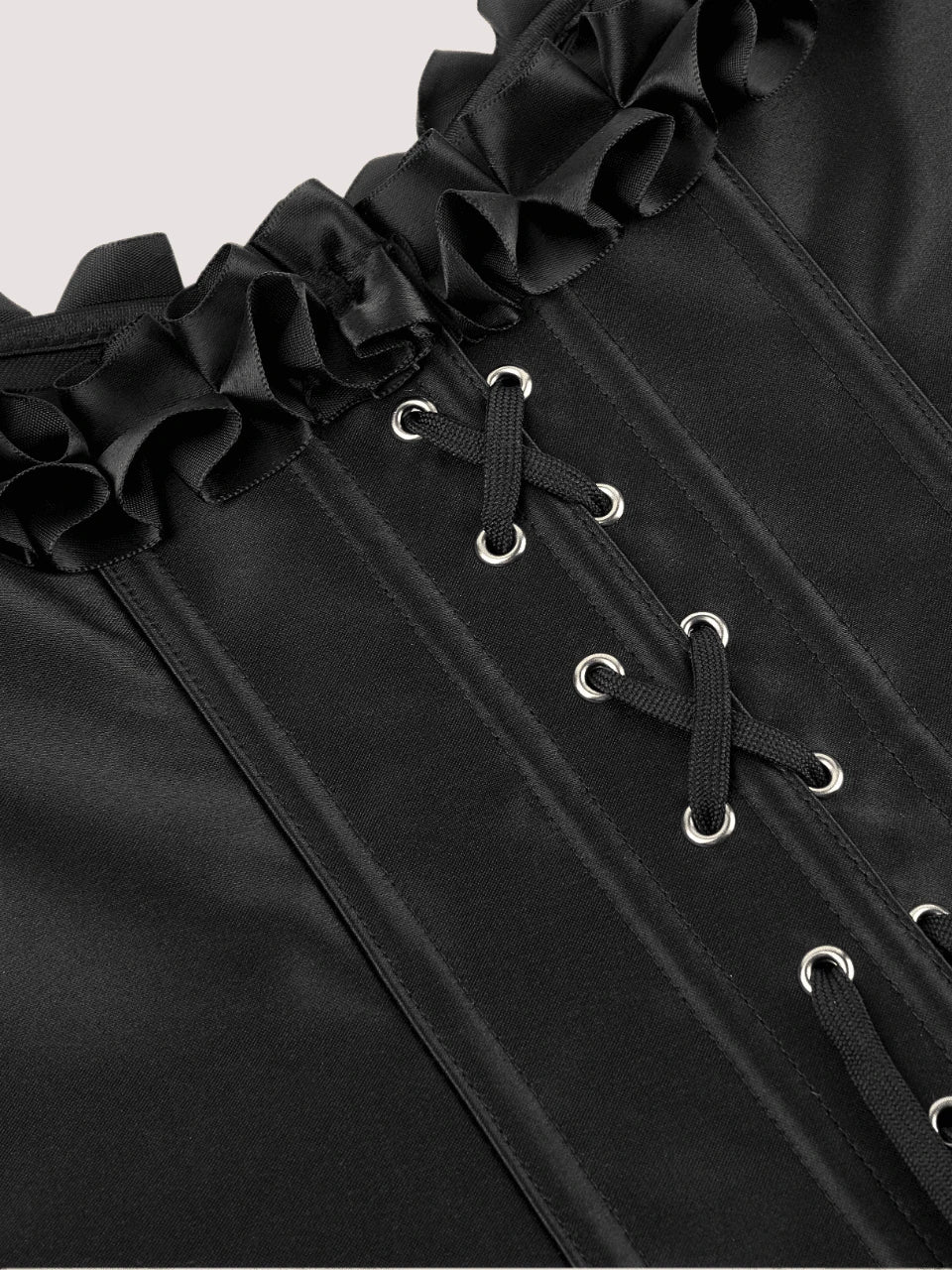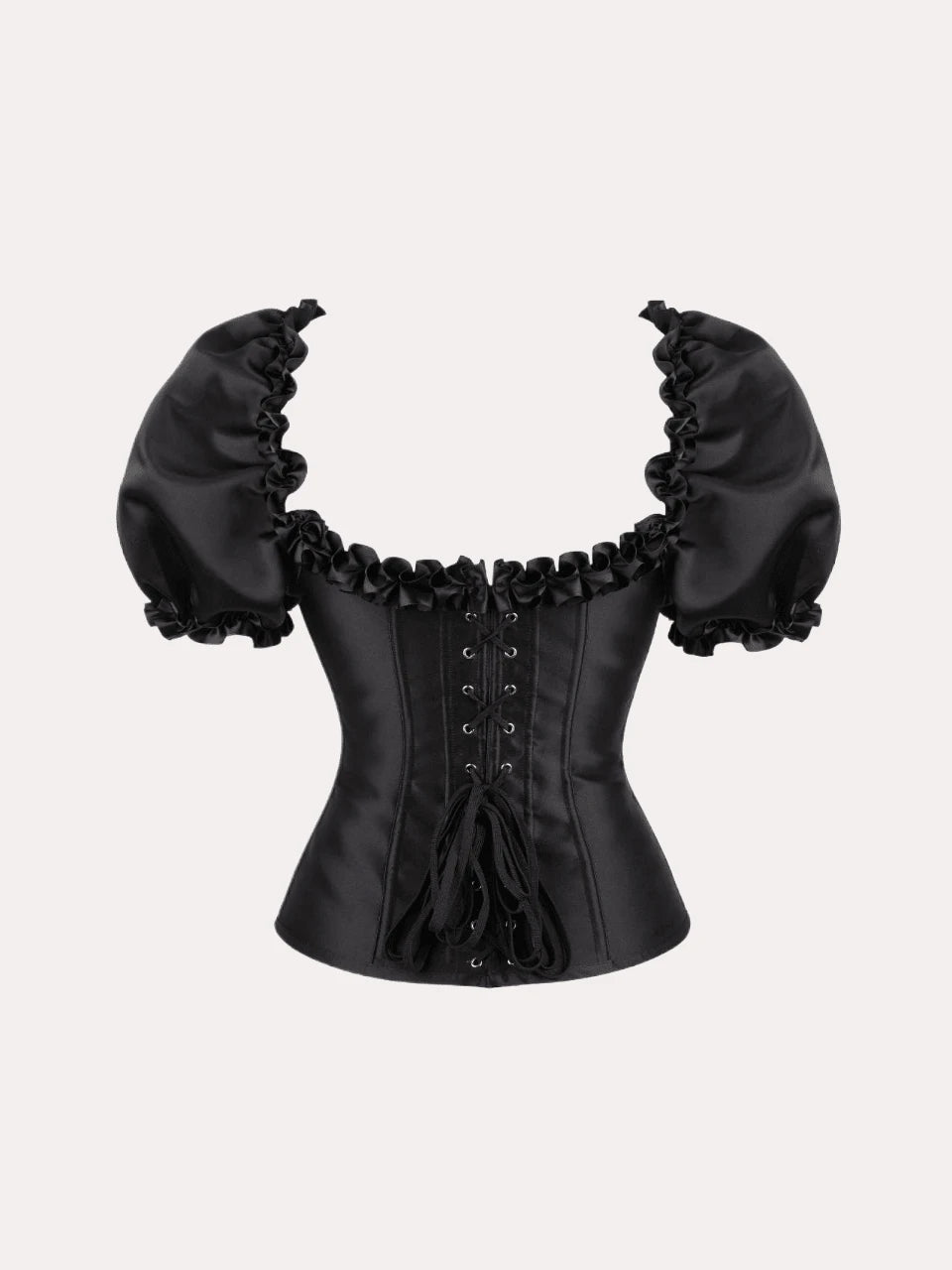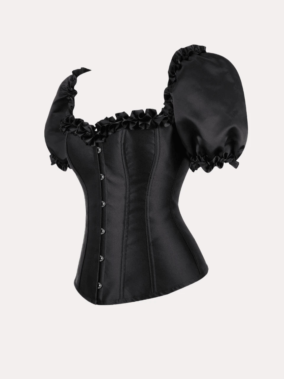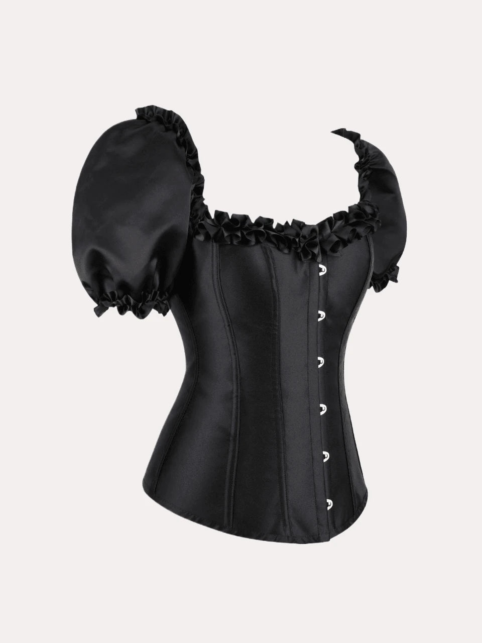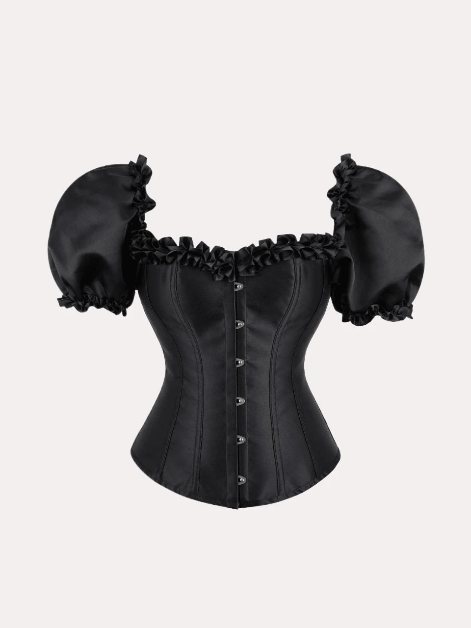 Corset aristocratico clasico con mangas abullonadas, tirantes, espalda descubierta y control de barriga con costillas, adecuado para fiestas, actuaciones en el escenario y festivales